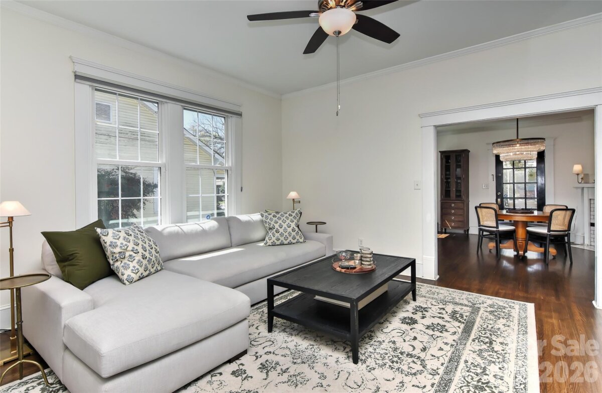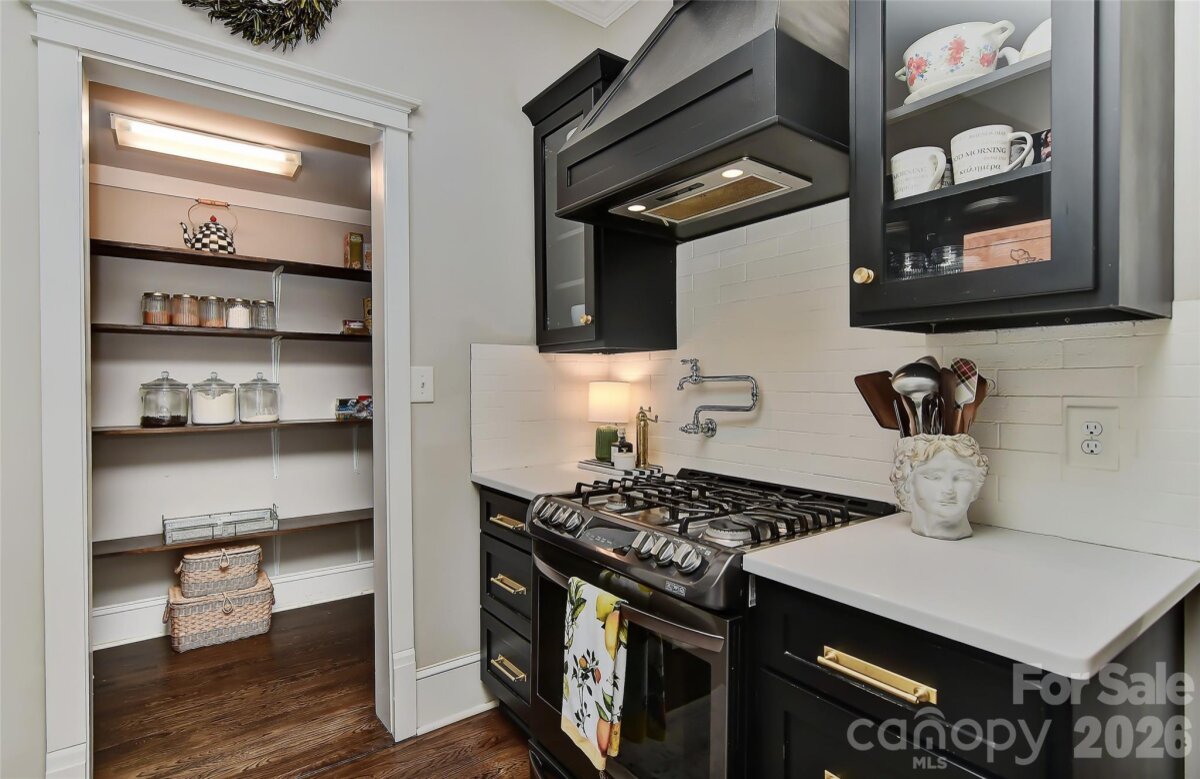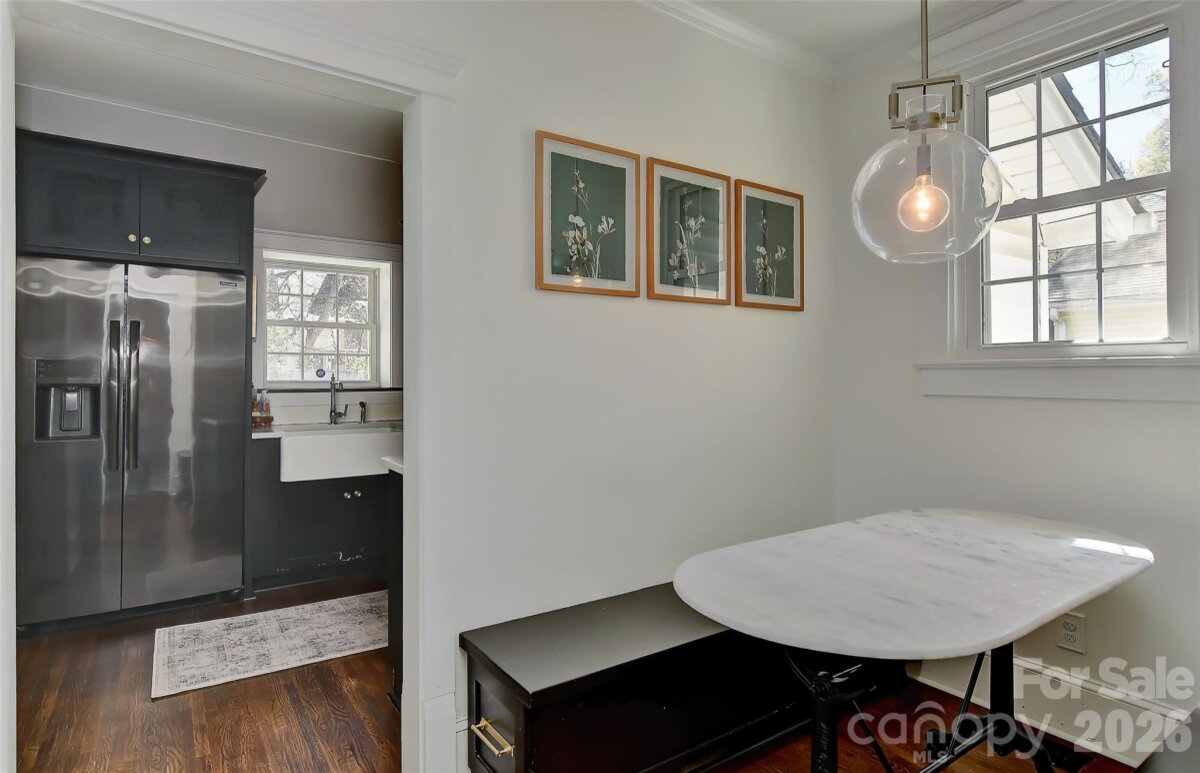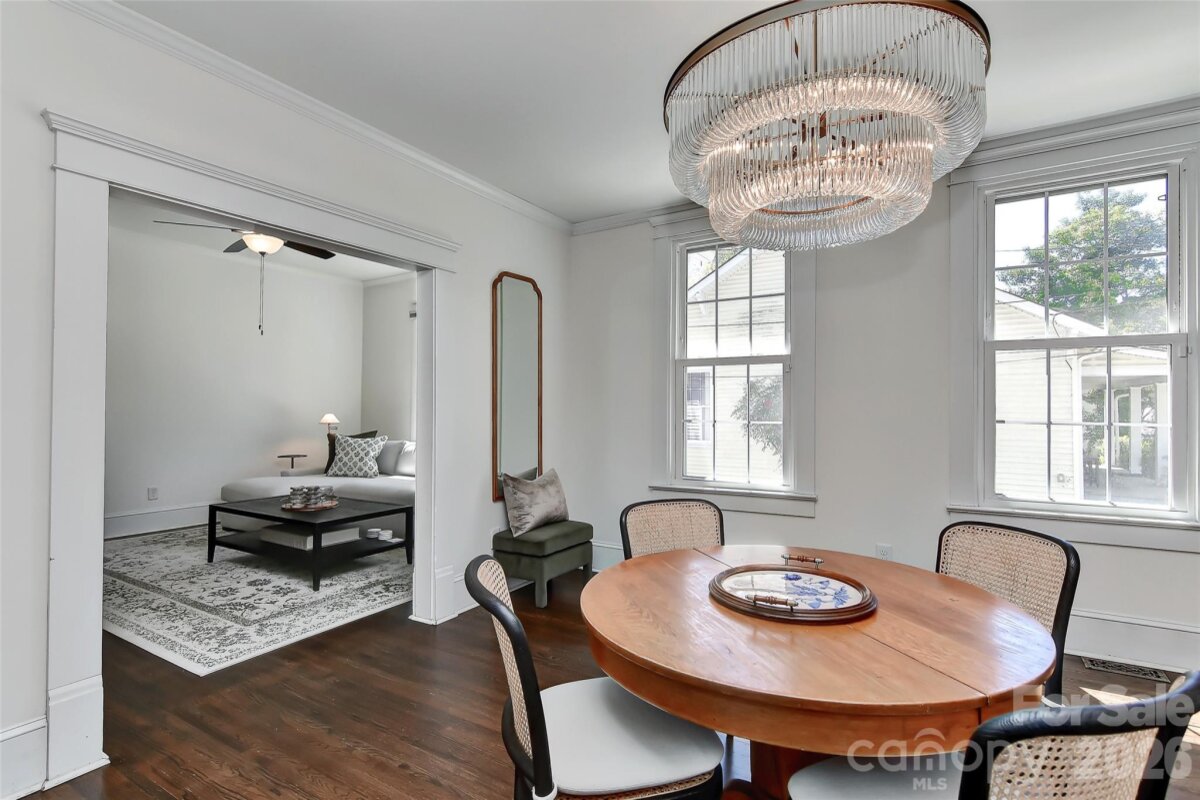 Located in Gastonia's York Chester historic district, this light filled 1930 cottage boasts all the charm of yesteryear with the modern conveniences you love! Original details include gleaming hardwood floors, high ceilings, crown moldings, decorative fireplaces and eye-catching built-ins. A relaxing screened porch overlooks the front lawn and welcomes guests into the home. Flexible floor plan features a front dining room with modern lighting open to an inviting living room with lighted ceiling fan, fireplace with marble surround and built-in display cabinets. A cozy breakfast room is tucked between the living room and kitchen. Chef's kitchen offers custom espresso cabinets with glass front doors, tile backsplash and farm house sink. Stainless steel appliances include dishwasher and gas top range with pot filler. Don't miss the large walk-in pantry! Just off the kitchen is the huge sunny utility room with office niche and access to the back yard. The primary bedroom features a decorative fireplace and walk-in closet. Luxury bath has custom cabinets with glass front, vanity area, designer mirror & lighting and soaking tub/shower with tile surround. The front bedroom offers wonderful natural light, lighted ceiling fan and decorative fireplace. The hall bath has tile flooring, pedestal sink, tub/shower with tile surround and built-in storage cubbies. Large patio offers plenty of room for outdoor entertaining and overlooks the nice level privacy fenced back yard. Take in a Gastonia Ghost Peppers baseball game or brunch at the historic Webb Custom Kitchen's restored theater or rafting at the Whitewater Center!