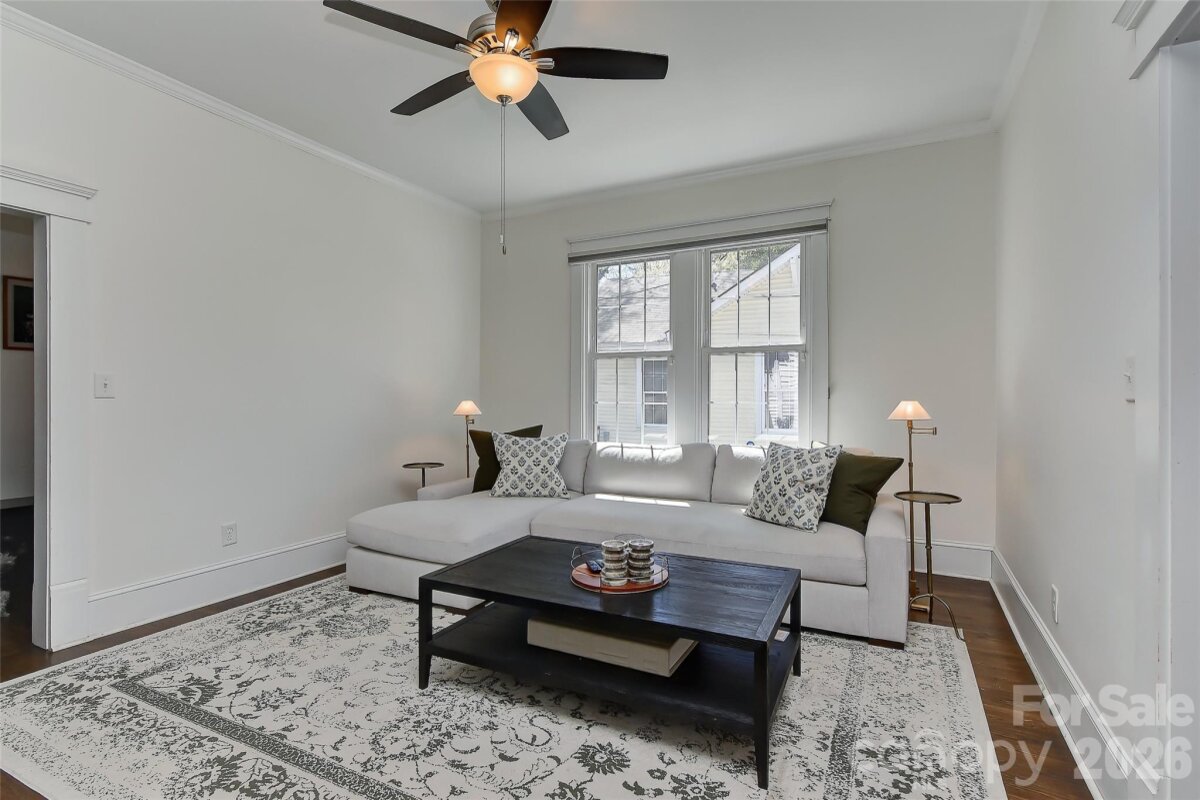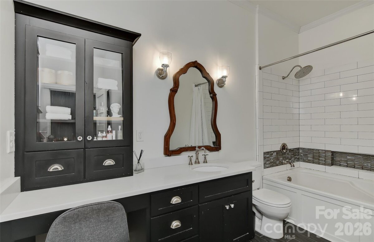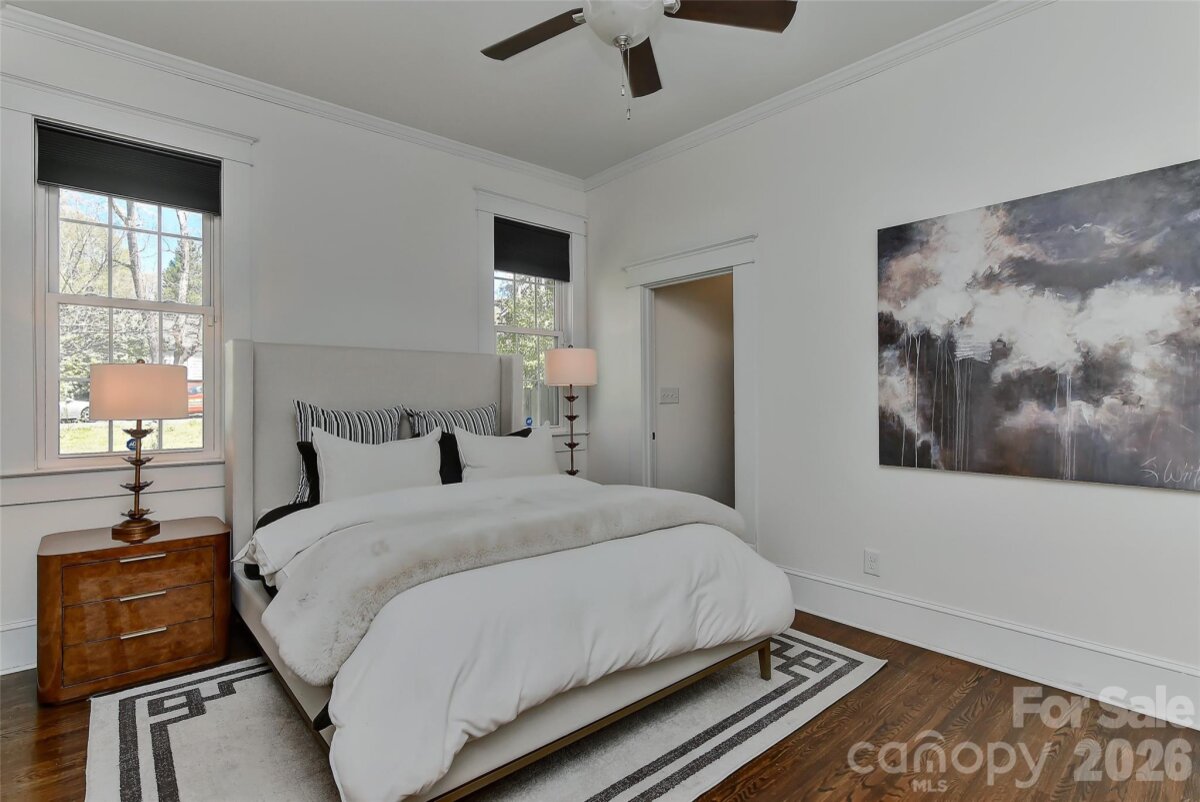 Located in Gastonia's York Chester historic district, this light filled 1930 cottage boasts all the charm of yesteryear with the modern conveniences you love! Original details include gleaming hardwood floors, high ceilings, crown moldings, decorative fireplaces and eye-catching built-ins. A relaxing screened porch overlooks the front lawn and welcomes guests into the home. Flexible floor plan features a front dining room with modern lighting open to an inviting living room with lighted ceiling fan, fireplace with marble surround and built-in display cabinets. A cozy breakfast room is tucked between the living room and kitchen. Chef's kitchen offers custom espresso cabinets with glass front doors, tile backsplash and farm house sink. Stainless steel appliances include dishwasher and gas top range with pot filler. Don't miss the large walk-in pantry! Just off the kitchen is the huge sunny utility room with office niche and access to the back yard. The primary bedroom features a decorative fireplace and walk-in closet. Luxury bath has custom cabinets with glass front, vanity area, designer mirror & lighting and soaking tub/shower with tile surround. The front bedroom offers wonderful natural light, lighted ceiling fan and decorative fireplace. The hall bath has tile flooring, pedestal sink, tub/shower with tile surround and built-in storage cubbies. Large patio offers plenty of room for outdoor entertaining and overlooks the nice level privacy fenced back yard. Take in a Gastonia Ghost Peppers baseball game or brunch at the historic Webb Custom Kitchen's restored theater or rafting at the Whitewater Center!