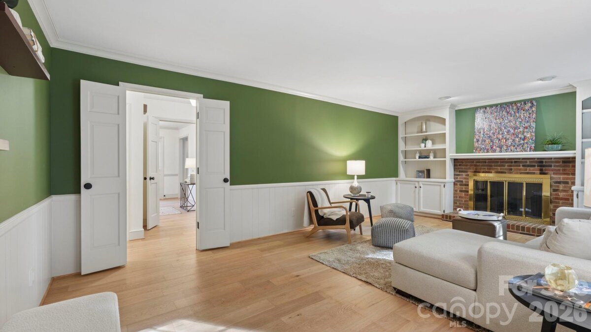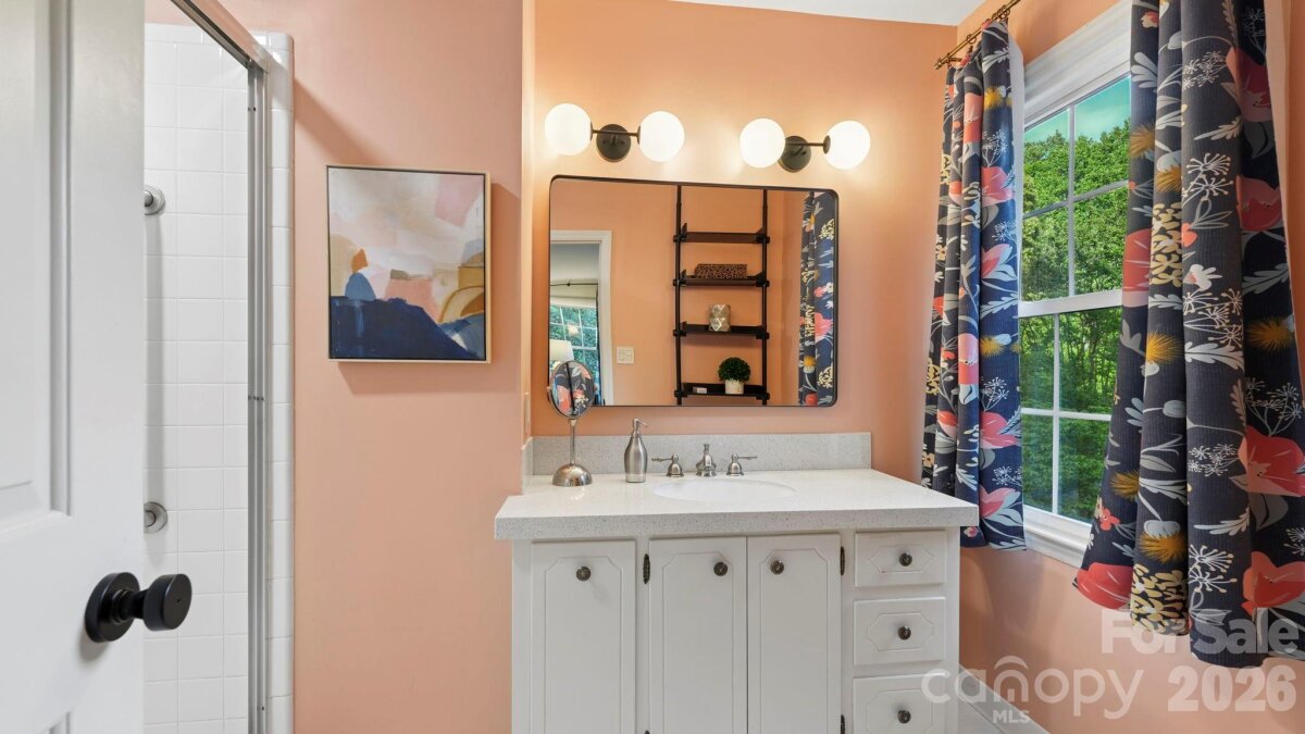 This storybook Colonial sits on a stunning half-acre lot in sought-after Medearis, offering fantastic curb appeal with fresh exterior paint and mature landscaping, including a gorgeous Japanese maple, azaleas, dogwood, and more. Inside, upgraded engineered white oak hardwoods span the main level, upper hall, and primary suite, complemented by new carpet in the secondary bedrooms and fresh paint throughout, including trim. The flexible layout features a formal living room (ideal as a home office), a cozy family room with fireplace and built-ins, and a formal dining room that connects seamlessly to the kitchen. The kitchen is well-appointed with painted cabinetry, hard-surface countertops, and brand-new stainless steel appliances. The breakfast area and family room both open to a screened porch overlooking the incredible backyard—perfect for relaxing or entertaining. The main level also includes a full laundry room and a beautifully remodeled powder room with designer wallpaper and vanity. Upstairs, you'll find four bedrooms and two full baths, including the spacious primary suite with dual closets and an updated bath featuring a remote-controlled, heated toilet. Additional highlights include updated lighting throughout and upgraded electrical service, enhancing the home’s move-in-ready appeal. A large two-car garage and extended driveway provide ample parking. Welcome home!