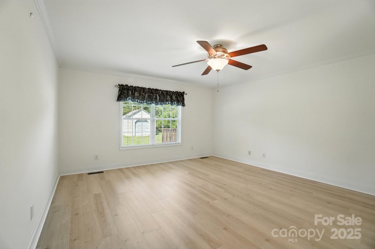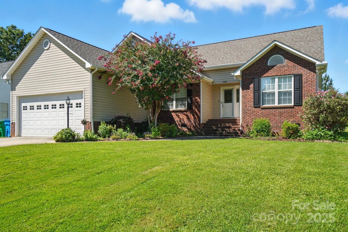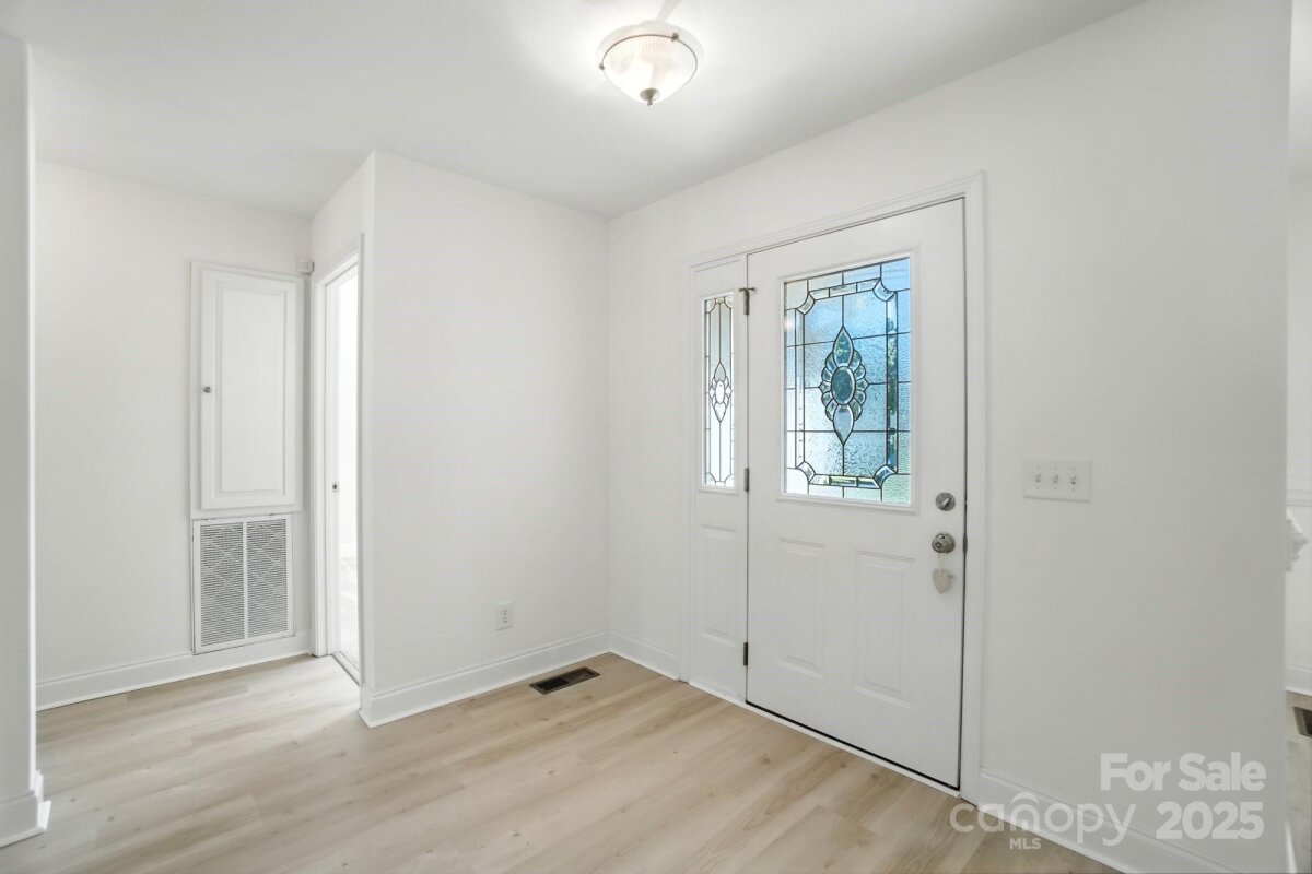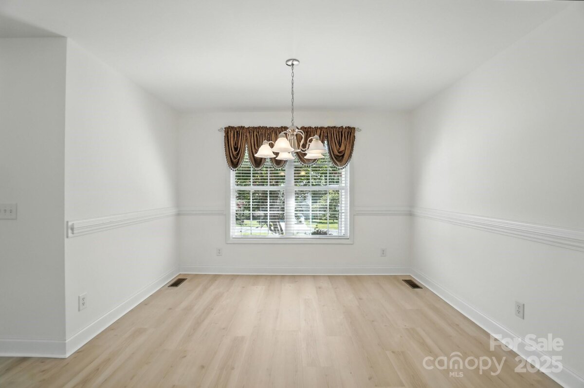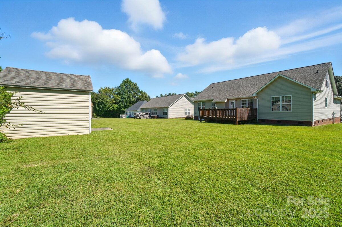 Charming 1.5 story home in Locust, NC. Four bedroom, two bath home with three bedrooms, including primary, on main floor. Fourth bedroom/bonus room on upper floor. Friendly community, Redah Acres, with no HOA. Home sits on 0.39 acre lot and includes large attached deck. Home has new vinyl plank flooring throughout most of main floor, including primary bedroom. The other three bedrooms are carpeted. Fresh paint in great room, foyer, dining room, kitchen, hallway and primary bedroom. Primary has en-suite bath with garden tub, walk-in shower and oversized walk-in closet. Vaulted ceiling in great room. Home is close to Locust Town Center, shopping and restaurants.