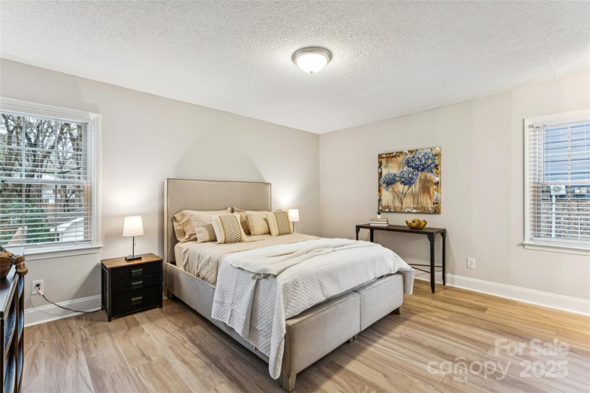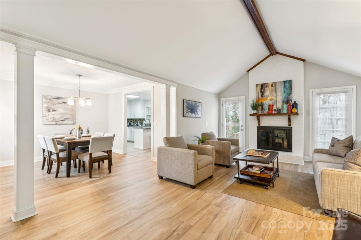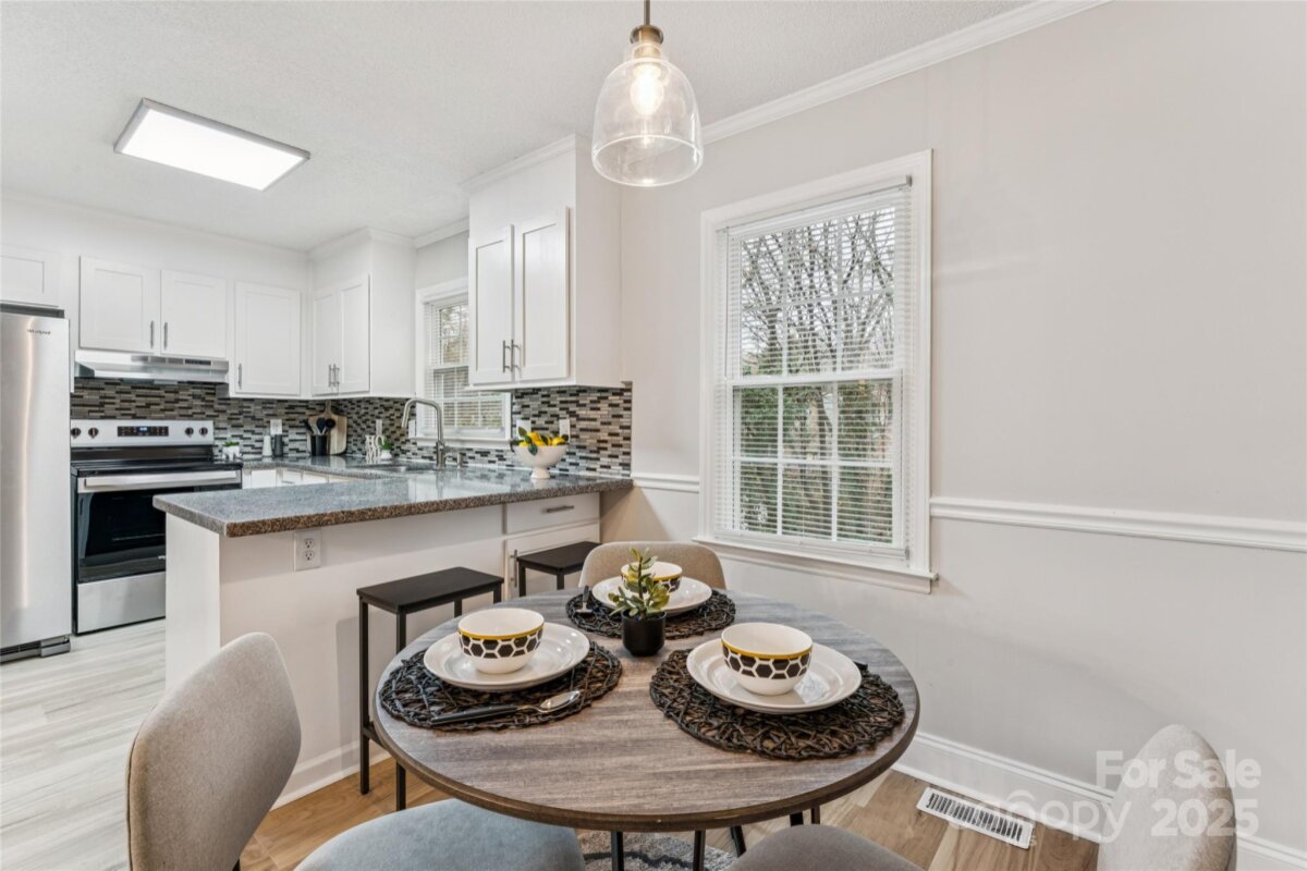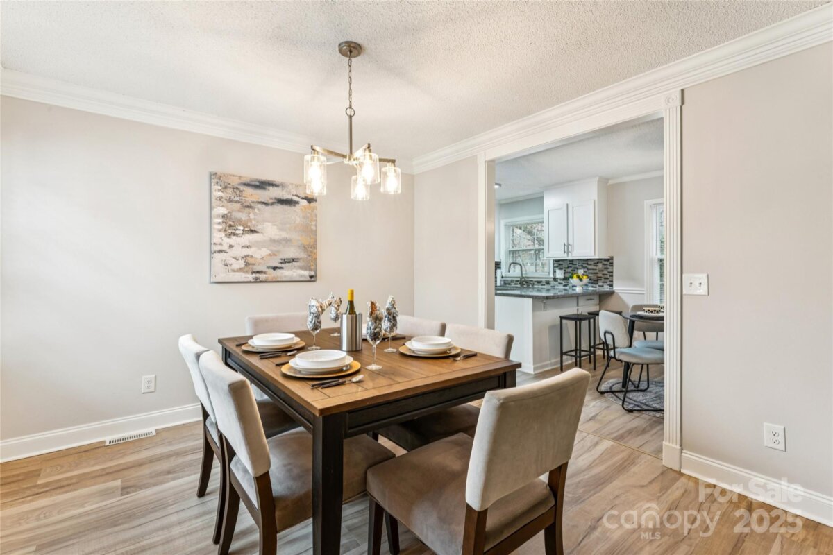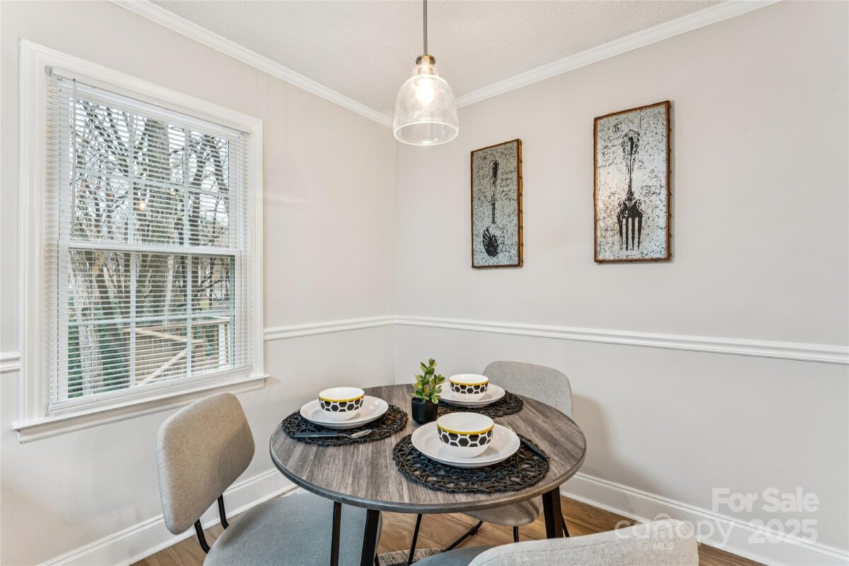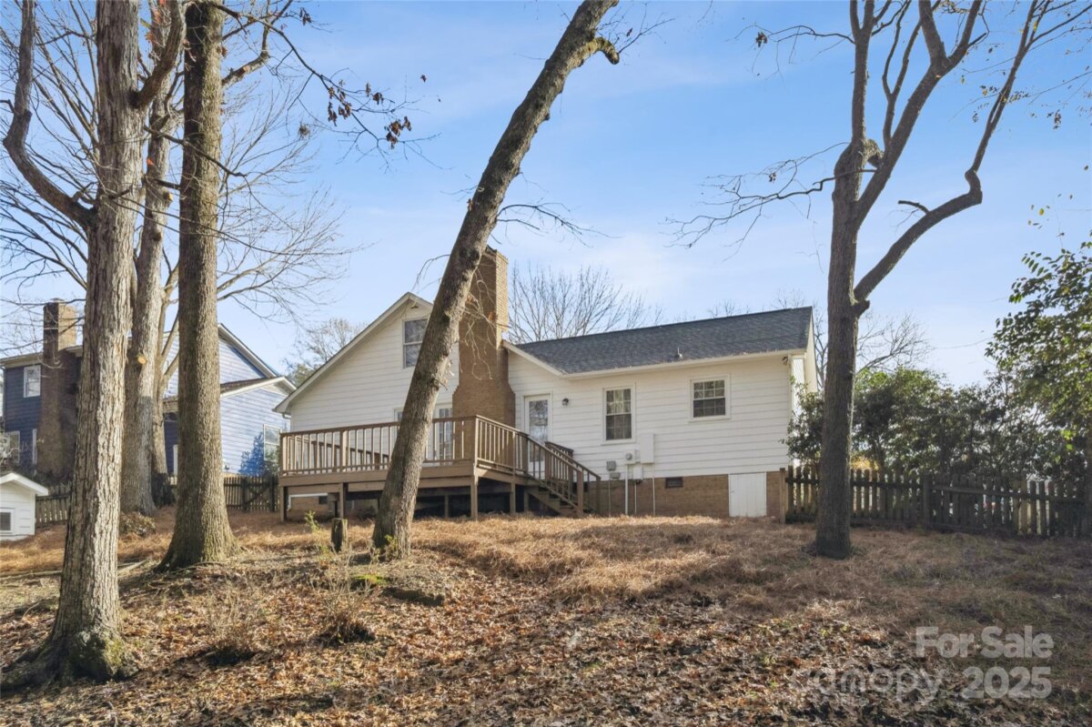 Stunning Home Offers a Fabulous Wooded View & Oversized Deck! New Paint & LVP wood floors and Renovated Baths! Kitchen has been updated with Custom European Cabinets with Quartz Counters and a mosaic tile backsplash. It features Stately Columns in Dining & Living Rooms, Custom Crown Molding, Laundry w/ Walk-in Pantry. Roof was installed in 2023 with Architectural Shingles & Energy Efficient Windows in 2015! Large Floored Attic for Extra Storage Space. Small Workshop has Electricity! Close to McAlpine Park, Restaurants, Shopping AND SouthPark!