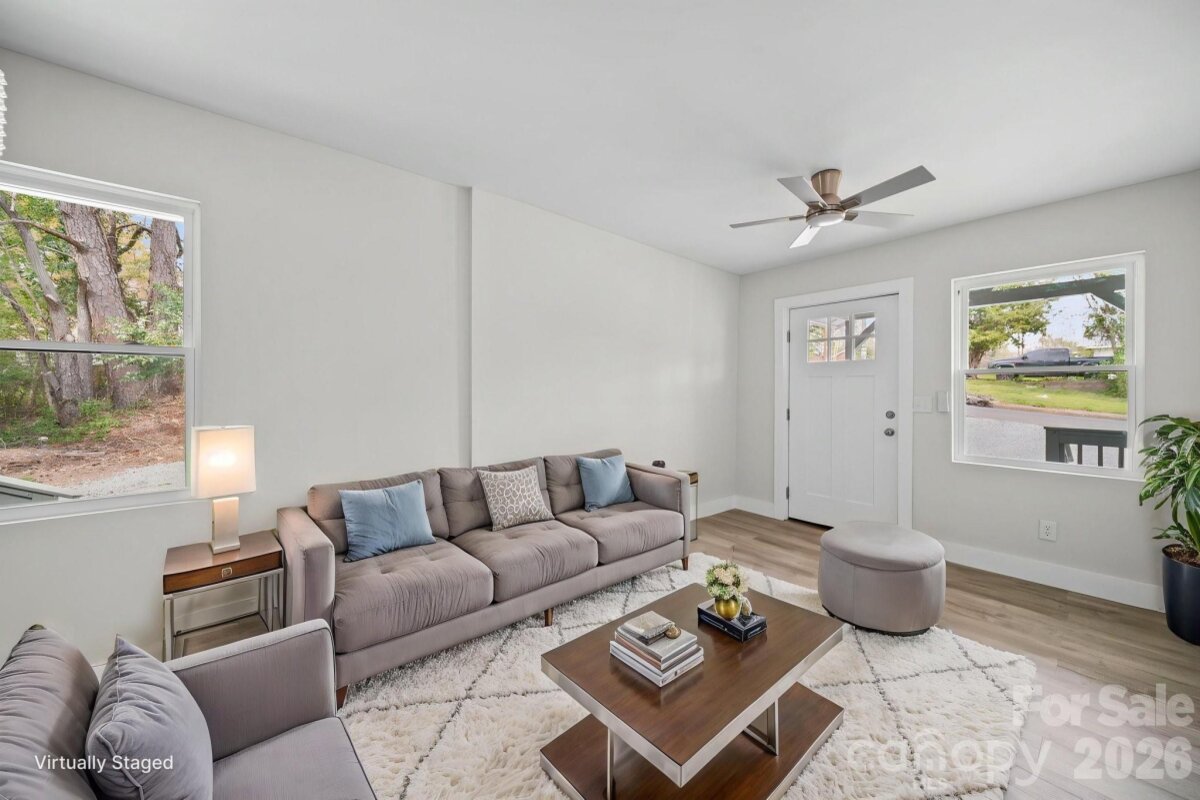 Welcome to 709 Sherman Street, a meticulously revitalized 2-bedroom home that defines turn-key modern living in the heart of Badin. Step inside to an bright, open-concept interior featuring vinyl plank flooring that flows seamlessly throughout. The Kitchen showcases crisp white Shaker cabinetry contrasted by sleek grey quartz countertops with dramatic white veining. It is equipped with stainless steel appliances, a minimalist undermount sink, and a contemporary grey subway tile backsplash. The bathroom mirrors this sophisticated, neutral palette with a modern white vanity and a subway-tiled shower surround featuring polished marble accents. This home provides absolute peace of mind with all-new fixtures, a new roof, and new energy-efficient windows. Outside, the large gravel driveway leads to the backyard and outbuilding, providing the flexible storage space that every homeowner desires. Living at 709 Sherman Street puts you at the front door of Badin’s vibrant future, with easy access to the exciting new Waterfront Park development, the surrounding Uwharrie National Forest, and Morrow Mountain. Lets make this Address your new HOME!
