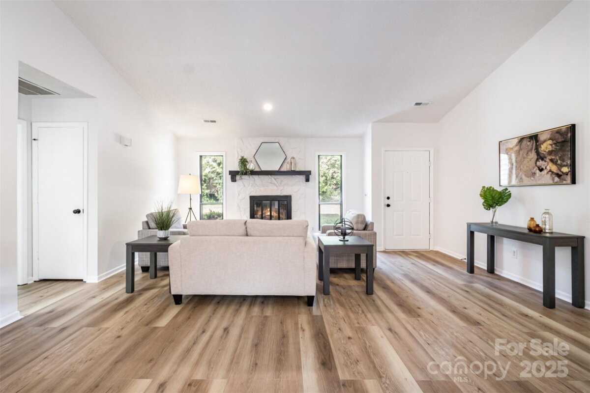 Welcome home to this beautifully updated ranch nestled on a quiet street with no HOA restrictions. Featuring fresh interior and exterior paint and brand-new flooring throughout, this home is truly move-in ready. Enjoy evenings by the wood-burning fireplace in the inviting great room or entertain guests on the expansive back deck. The enclosed backyard offers plenty of space for gardening, hanging out, or playtime with your furry friend. You'll love the added convenience of a garage and a large shed—perfect for extra storage or hobby space. All this just minutes from shops, schools, dining, and other amenities. Don't miss this one!