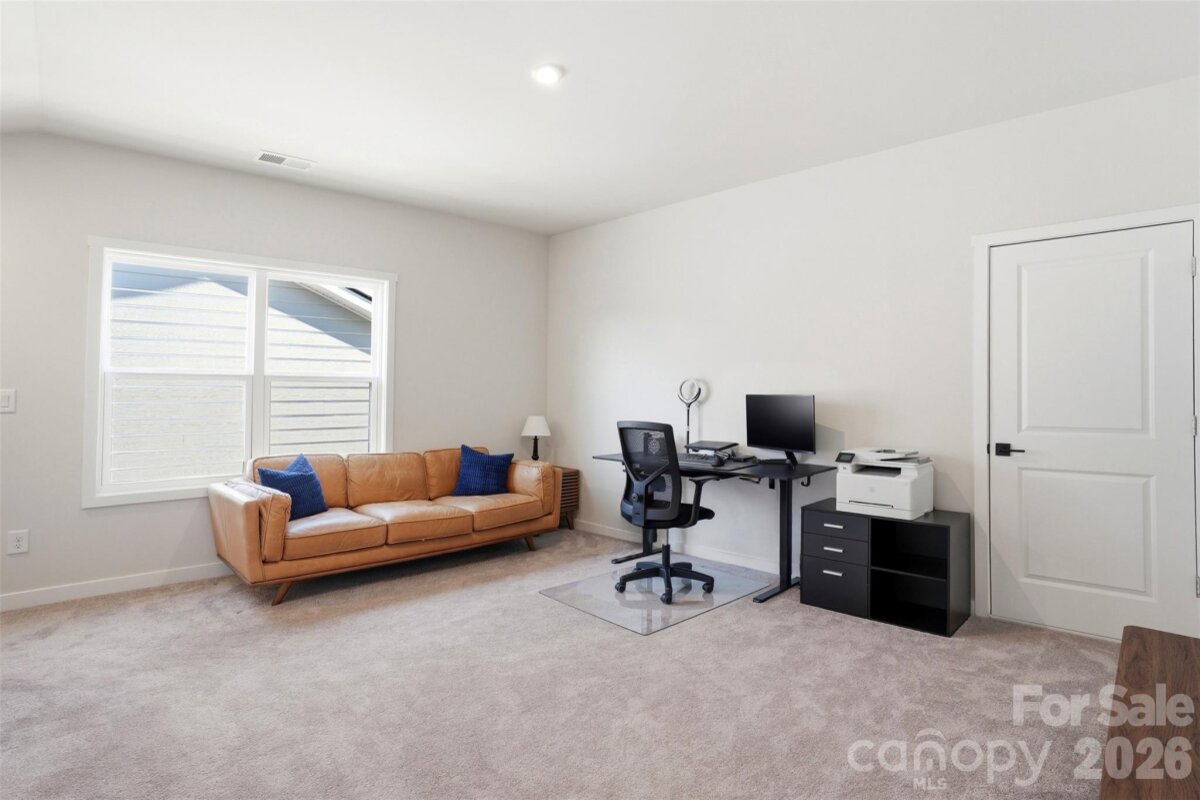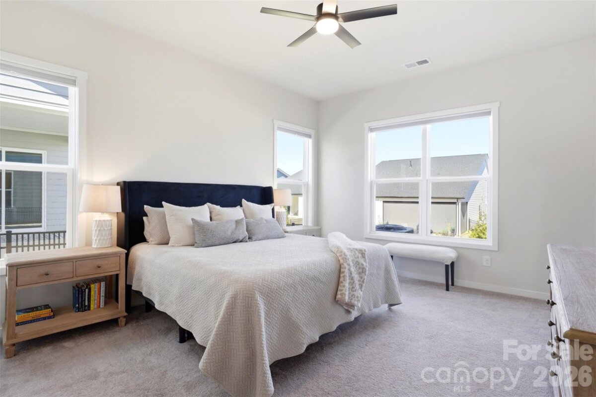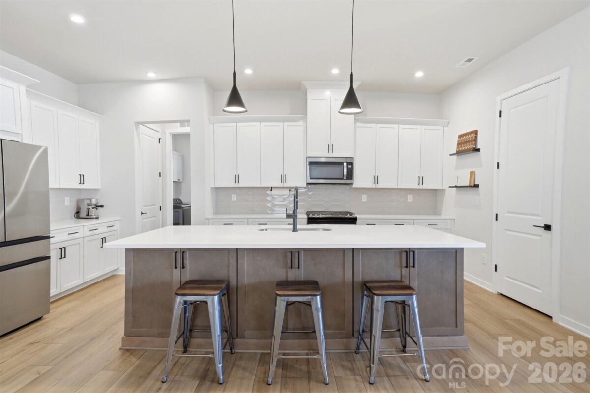Experience elevated, lakeside living just 15 minutes from Uptown Charlotte in this stunning 1.5-story Toll Brothers home in the Griffith Lakes community. Designed with both style and functionality in mind, this home features an open floor plan with LVP flooring throughout the main living areas, neutral paint, and modern finishes. The kitchen shines with quartz countertops, tile backsplash, stainless steel appliances, a spacious island with sink and seating, and a walk-in pantry. The main-level primary suite offers a private retreat with a large walk-in closet and an updated bath featuring an expansive walk-in shower with a frameless glass door and quartz double vanities. Upstairs, a versatile loft provides flexible space for a home office, media room, or guest area. A large unfinished attic space offers excellent storage or the opportunity for a buyer to finish for additional living space. Enjoy low-maintenance living with lawn care included, along with access to resort-style amenities including a pool, fitness center, pickleball and tennis courts, dog park, walking trails, sidewalks, and more. Griffith Lakes is a master-planned, lake-centered community featuring three private lakes, a kayak launch, fishing pier, and over 150 acres of preserved green space, offering a lifestyle that truly stands out. Don't miss this one - schedule your showing today!