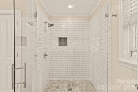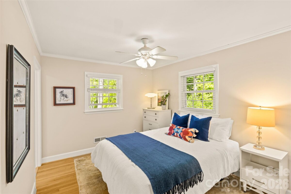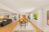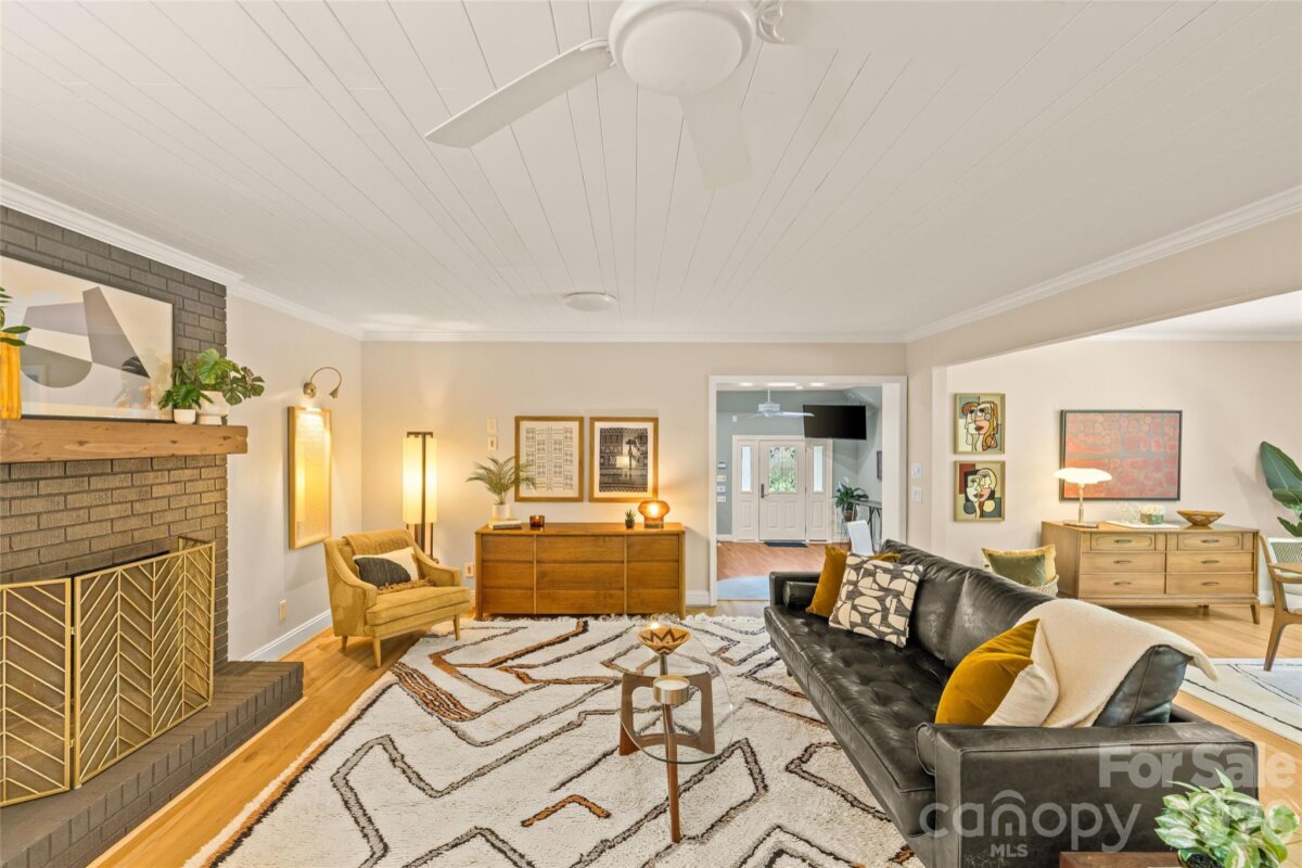 Solid Mid-Century Character with Unmatched Privacy in Grove Park! If you appreciate the "built-to-last" era of 1959, this unique, custom-built brick ranch is a Must- See! Tastefully remodeled, this home offers the perfect blend of original Mid-Century charm and modern functionality. The sprawling, open living area is filled with natural light and is anchored by a statement wood-burning brick fireplace.  Stunning original white oak flooring, combined with a crisp color palette, sets the modern ambience. A wide hallway leads to three bedrooms and two full baths; one recently renovated with a walk-in shower, while the other one retains its original, classic charm. The oversized eat-in kitchen with a center island and vaulted ceilings is an entertainer’s dream.  Just off the kitchen is a separate laundry and storage room. The detached garage includes 240V/50-amp connectivity for a shop or EV charging and has been pre-approved by the city for conversion to an Accessory Dwelling Unit. Grove Park is one of Charlotte’s best-kept secret neighborhoods with Mid-Century era homes on large lots and mature tree canopies, surrounding a series of pocket lakes--a rarity within the Charlotte city limits! The home is tucked away on a quiet cul-de-sac, steps from Williams Lake. The thoughtfully landscaped oversized lot offers the perfect blend of privacy and convenience, making the home feel like a retreat of its own. Easy commute to Uptown Charlotte, the NoDa Arts District, Plaza Midwood, and the University City area. This is a rare opportunity to secure a high-utility property with a Mid-Century soul in a prime location. You're going to love it here!