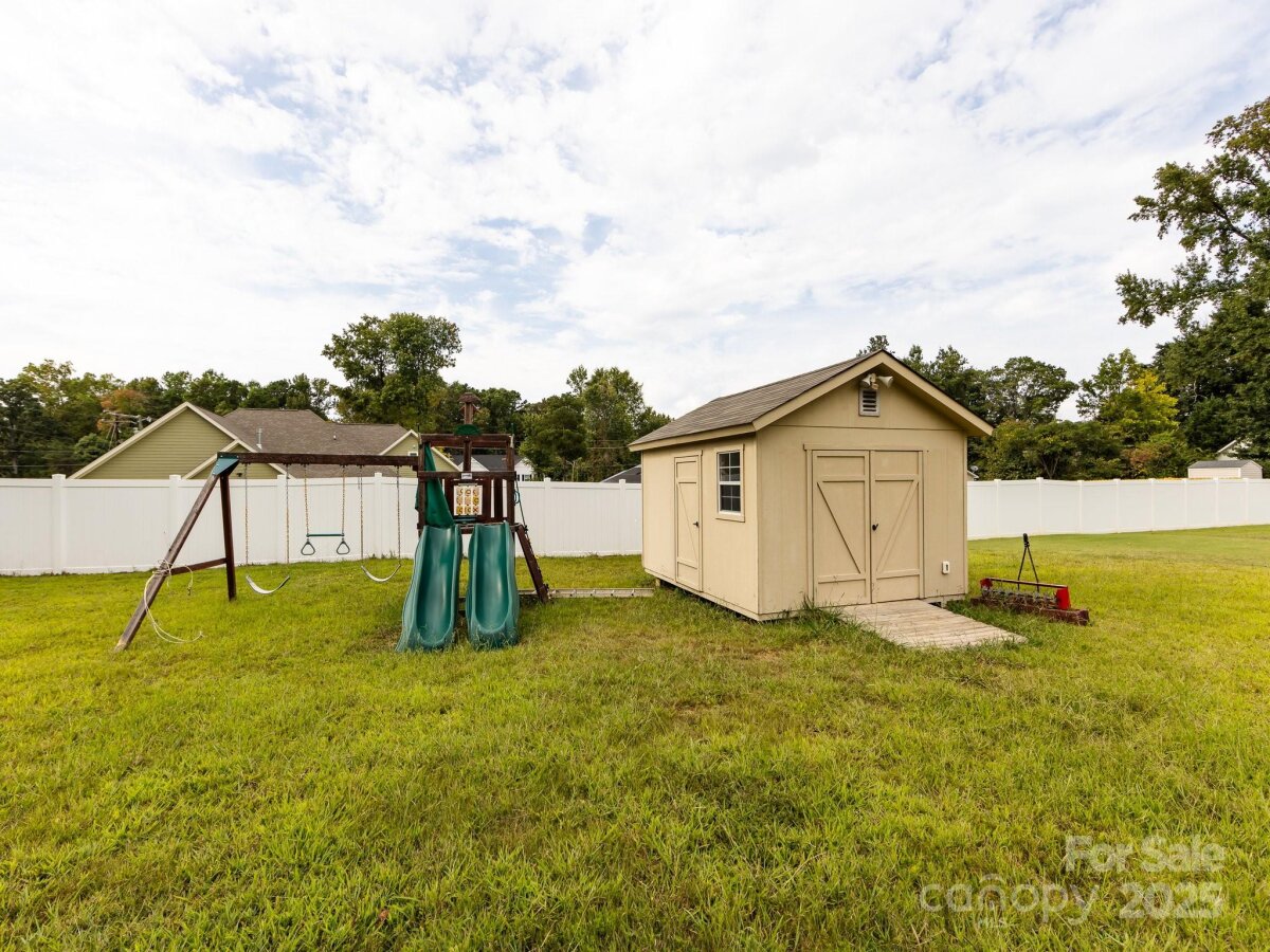 Back on the market, no fault of the seller. Looking for a no HOA community w/ a BIG level backyard w/ a 2 tier deck measuring 24 x14 ft. on the upper/main deck & approx. 9 x 7.5 on the lower deck for great entertaining. There is a 12 x 10 ft. storage building that is wired w/ electrical. Inside the home has a great room(approx. 19 x15 ft.) & dining area(16 x 11ft.) w/ laminate wood flooring. Updated kitchen has large tile floor, island w/ built-in wine cooler, large subway tile back splash, and pass through opening to the dining area w/ a ledge to add barstools if desired. Kitchen includes refrigerator but also has space for a freezer or 2nd refrigerator. The primary suite(16.5 x 13.5 ft.) has laminate wood floors, walk-in closet, w/ tile floor in primary bathroom. The other 3 bedrooms and hall had laminate flooring as well. Guest bathroom has linen closet, tile surround in the shower & tile flooring. Community is about 7.5 miles from downtown, about 3.8 miles from UNC-Charlotte, & conveniently located minutes away from shopping, dining, & highway access. Even though the current home schools are favorable seller said that there is also an option to enroll your child in governors village stem academy(which is what they did).