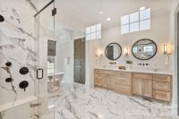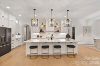 Experience luxury living on a rare 1-acre homesite in an exclusive enclave of just five custom homes. This over 4500 sq ft residence blends modern design with exceptional functionality, offering 5 bedrooms, 5.5 bathrooms, and multiple ensuite retreats ideal for multi-generational living or hosting guests in comfort. The main level features a stunning open-concept layout with vaulted ceilings, exposed beams, and a dramatic chandelier anchoring the great room. Oversized windows and sliding glass doors fill the space with natural light and create a seamless connection to the outdoor living areas. The primary suite is conveniently located on the main floor, providing privacy and ease of access. Upstairs, a spacious loft and a large bonus room offer flexible spaces for work, play, or media. Every bedroom is generously sized, with several featuring private ensuite baths. Step outside to your own private resort. The fully fenced backyard includes a sparkling pool, a half-court basketball court, and a screened-in porch perfect for year-round entertaining. Thoughtful landscaping, a manicured lawn, and custom hardscaping complete the outdoor experience. With its rare acreage, custom construction, and unmatched amenities, this Huntersville home delivers the space, privacy, and lifestyle today’s buyers are seeking.