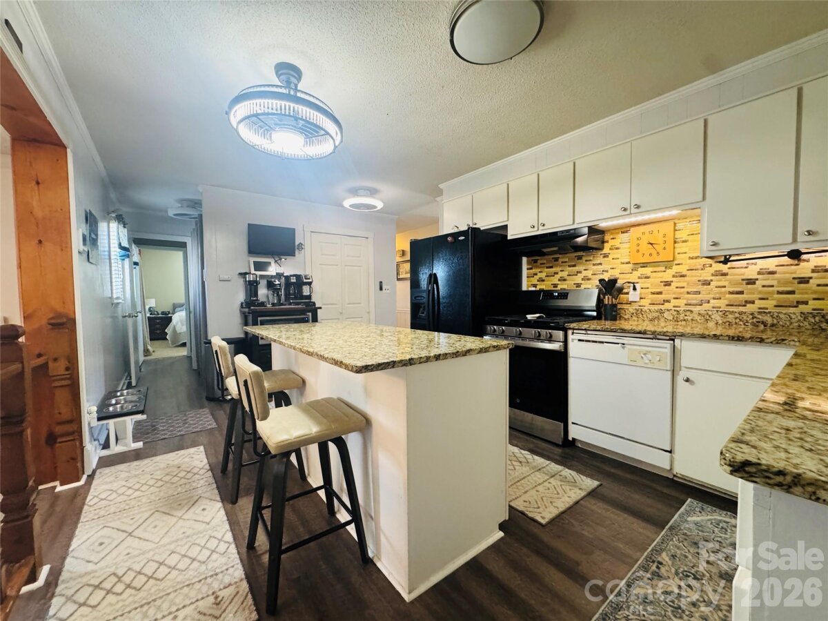 Welcome to 711 Simerson Road in Lexington, NC!! Relax and unwind with charming country views, complete with cows grazing nearby—perfect for those seeking a slower pace and peaceful surroundings. Situated on nearly an acre, this spacious 3-bedroom, 1.5-bath brick ranch home offers spacious and comfortable living space, giving you plenty of room to relax, entertain, and spread out. The inviting kitchen features bright white cabinetry, granite countertops, a tile backsplash, a center island, pantry closet, refrigerator and a gas range—perfect for both everyday living and hosting. Enjoy meals and gatherings in the dining room just steps down from the kitchen, or unwind in the separate living room and versatile family/flex room that adapts to your needs. Step outside to a covered front porch complete with a swing—ideal for soaking in peaceful rural surroundings. The back deck is partially covered and includes two retractable awnings, creating the perfect setup for enjoying sunny afternoons or shaded relaxation. The home also features a 2 car attached spacious garage. Rounding out the property is a detached one bay garage with an attached workshop that provides plenty of space no matter what your needs. It is perfect for hobbyists, car enthusiasts, or extra storage needs. Even better, the refrigerator, washer, and dryer convey with the home, making your move-in seamless.