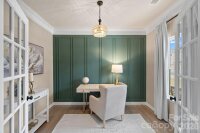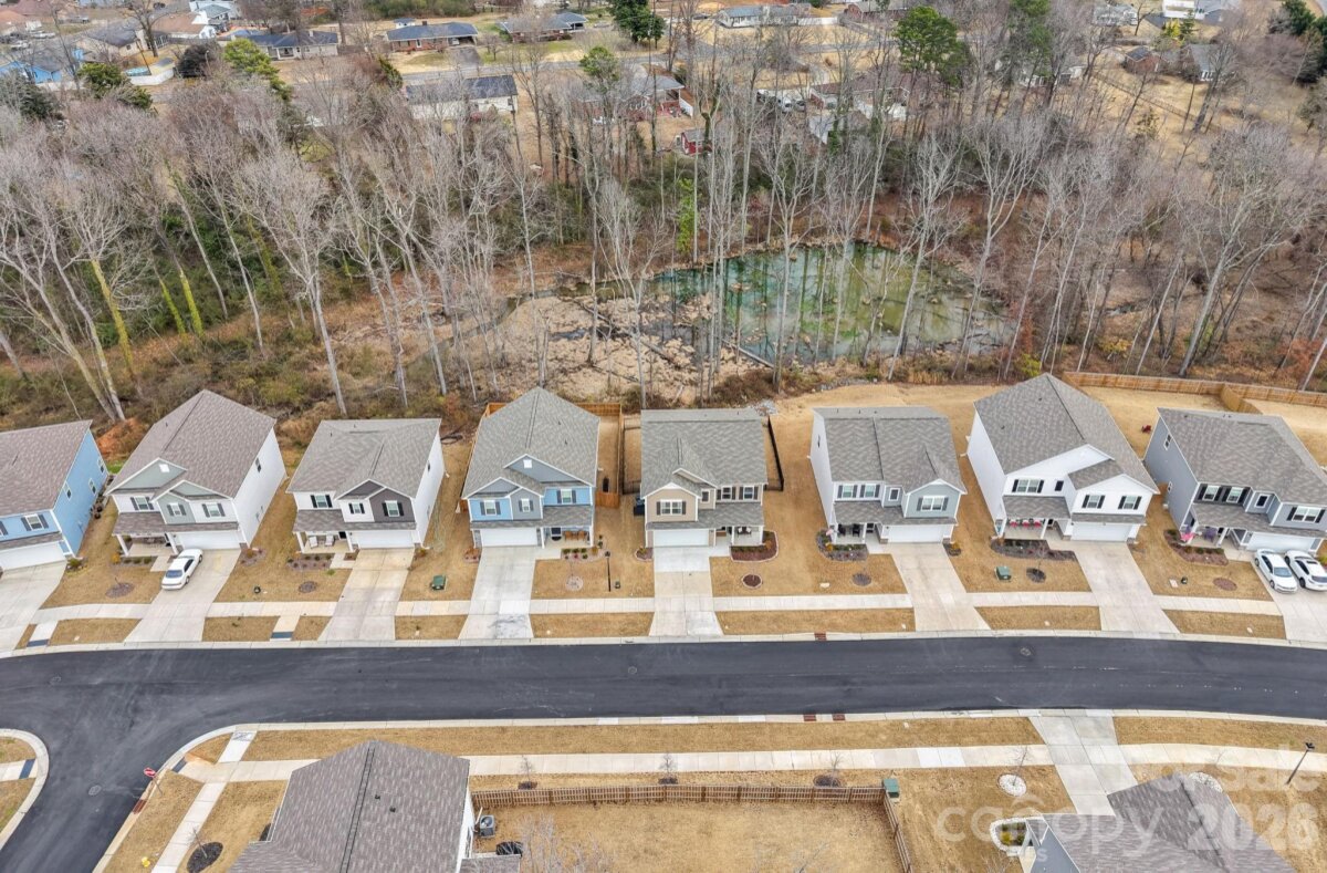 Welcome to this beautifully upgraded, nearly new home offering 4 bedrooms, 2.5 bathrooms, and over 2100 square feet of thoughtfully designed living space. Less than two years old, this home blends modern construction with custom finishes throughout. Step inside to discover extensive molding throughout including wainscoting, board and batten accent walls, crown molding, upgraded designer lighting, and custom paint that adds character and warmth. A dedicated home office with french doors provides the perfect work-from-home setup, while the open concept living area flows seamlessly into a stunning kitchen featuring quartz countertops and elevated finishes. Upstairs, the spacious primary suite is complemented by custom shelving in the walk-in closet, creating both style and function. The fenced backyard is a true highlight, complete with a back patio ideal for entertaining or unwinding, all overlooking a peaceful pond view that creates a serene and private setting. Located just minutes from Uptown Charlotte and Plaza Midwood, this home delivers the perfect balance of convenience, comfort, and modern upgrades.