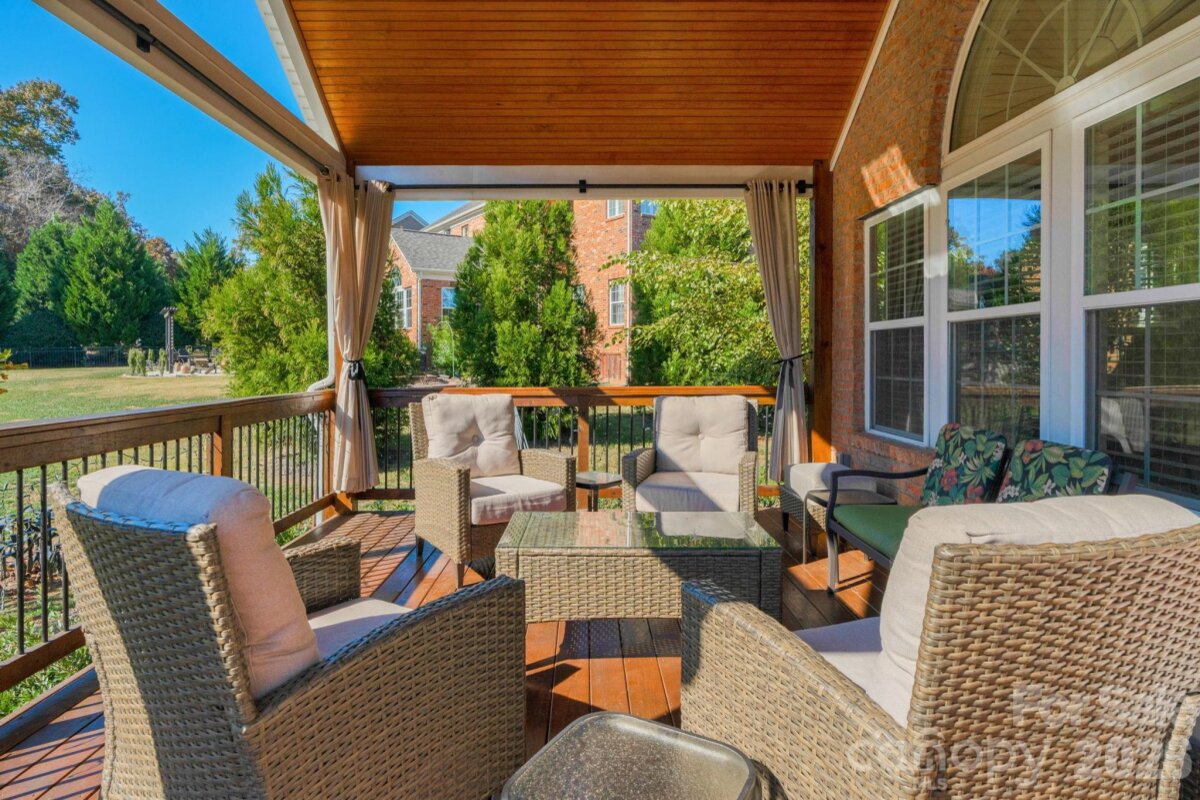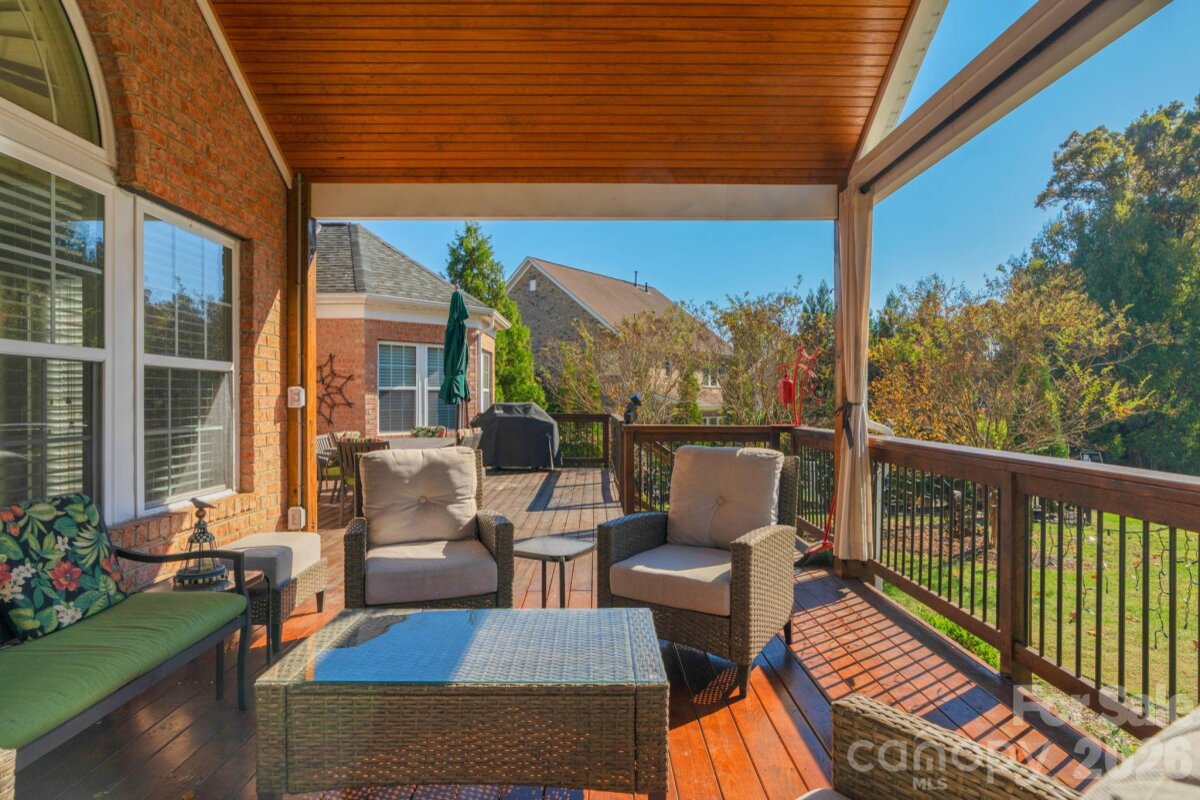Nestled in the sought-after Weddington Trace Estates, this stunning full-brick home sits on a lush & wooded .51 acre lot. Timeless Elegance throughout this open concept home with everyday comforts & modern touches. Boasting over 4,000+ sq. ft. w 4 bedrooms, 3.5 baths, a bonus/media room/5th bedroom & exceptional outdoor living space perfect for entertaining or unwinding in serene privacy. Step through the grand 2-story foyer, where elegance flows effortlessly into the formal dining room, a versatile sitting room/office, and a soaring 2-story great room. This inviting space features custom built-ins, coffered ceiling, gas fireplace, and a breathtaking wall of windows adorned with plantation shutters that bathe the room in natural light. The gourmet kitchen is a chef's dream, showcasing professionally painted linen-colored cabinetry, an oversized black granite island, a butler's pantry, and a custom walk-in pantry. The adjoining morning room is drenched in sunlight, offers a peaceful spot to enjoy your morning coffee while overlooking your private backyard—perfectly suited for a future pool, should you desire. The main-level primary suite is a retreat in itself, with a tray ceiling, a cozy sitting w vaulted ceiling and a luxurious ensuite bath featuring dual custom closets. Upstairs, you'll find three spacious secondary bedrooms, each with private bath access, and a generous bonus room or 5th bedroom ready to adapt to your lifestyle. Retreat outside and discover a vaulted covered porch and expansive deck, perfect for hosting summer gatherings or relaxing with a book while surrounded by nature. This amenity-rich community offers something for everyone, including a Clubhouse, Jr. Olympic pool w splash pool, Stocked pond w dock, Pickle ball Court, Tennis courts, Game courts, and scenic walking trails. Don’t miss the chance to call this exceptional home your own—schedule your private showing today! New roof in 2026, Plantation shutters throughout most of main level, 3 car garage & meticulously maintained.