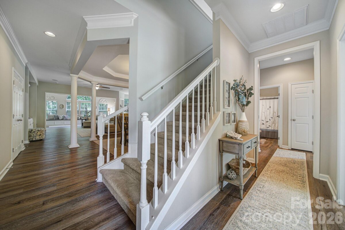 Welcome to Balmoral in beautiful Fort Mill, SC! This dreamy 1.5-story home is filled with natural light and showcases tasteful updates throughout, featuring granite countertops, luxury vinyl plank flooring, plush carpet, custom built-ins, and professional landscaping. Lovingly maintained, the main level offers an open floor plan with a sunroom, eat-in breakfast area, dining room, kitchen with gas range, living room, office with French doors, and three bedrooms including the owner’s suite. Upstairs you'll find a spacious bedroom/bonus with a full bath and walk-in closet. Located in the award-winning Fort Mill School District with low York County taxes, and just minutes to shopping, dining, and entertainment in Indian Land and Ballantyne, plus easy access to I-77. Community amenities include pools, a clubhouse, and playground.