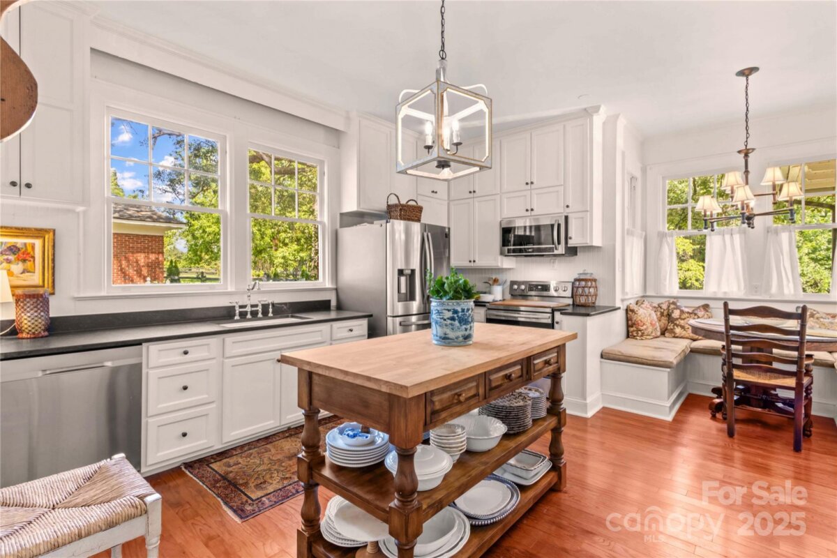 Farmhouse living within walking minutes to downtown Statesville. A true treasure full of charm and character from the moment you step into the brick floored entryway, following through the original French door opening up to the large foyer. Stunning and spacious dining and formal living areas flank off the foyer. The bright and airy kitchen features a cozy built in breakfast nook, floor to ceiling cabinets, honed and leathered granite counter tops, walk-in butler's pantry and large windows overlooking the courtyard and patio. The main level also offers a family room with French doors leading out to the patio making it a perfect flow when entertaining guest. Second level of the home features 4 bedrooms, 2 full bathrooms and an office. (Jack and Jill bathroom newly remodeled) Upstairs foyer leads to stairway to the unfinished attic offering ample amounts of storage space. This corner lot providing over an acre full of mature trees, fenced in yard and beautiful landscaping creates the perfect space to unwind and relax.