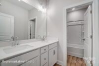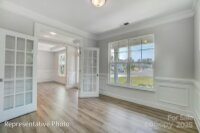 This Colfax floorplan is one you won't want to miss in the all-new Harmony community in Harrisburg. The home features five bedrooms, four full baths, and more than 3,500 square feet of living space. The main floor includes a guest suite with a full bathroom, large kitchen with white cabinets and matte black hardware, farmhouse sink, an oversized island, quartz countertops, tile backsplash, and walk-in pantry. The main level also features an office, dining room, powder bath, breakfast area and large open family room. The upper level boasts 9-foot ceilings and includes the primary bedroom and bath. The primary suite features a tray ceiling, luxury shower with semi-frameless door, dual vanities and linen closet. The upper level also offers 3 additional bedrooms, 2 bathrooms, laundry room with tiled flooring and a large bonus room with closet space. Tray ceilings are also featured in the foyer and dining room. Family room features a gas Cosmo fireplace accented by a shiplap wall and slate surround. Outdoor living is made easy with a screened porch. Neighborhood amenities to include a cabana with outdoor pool, perfect for relaxing and entertaining.