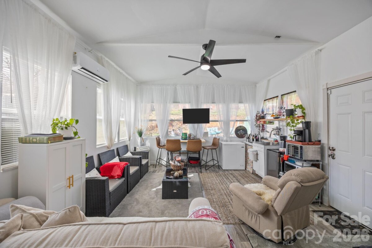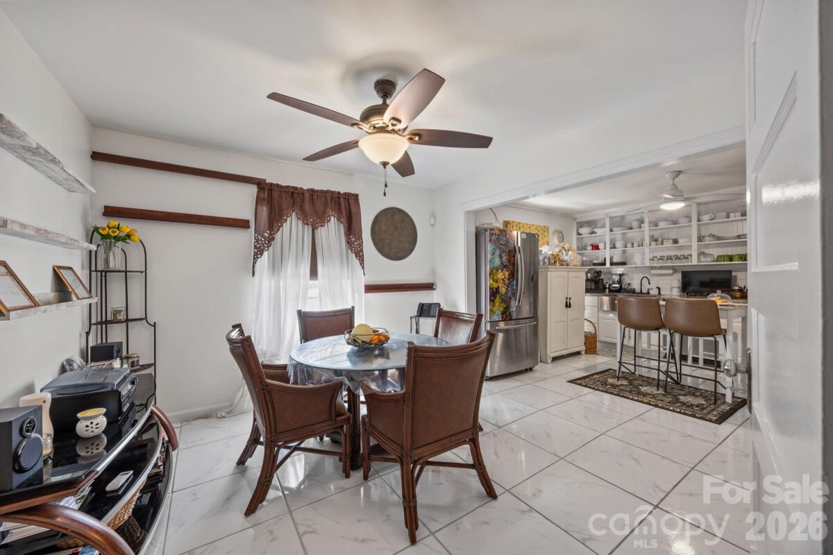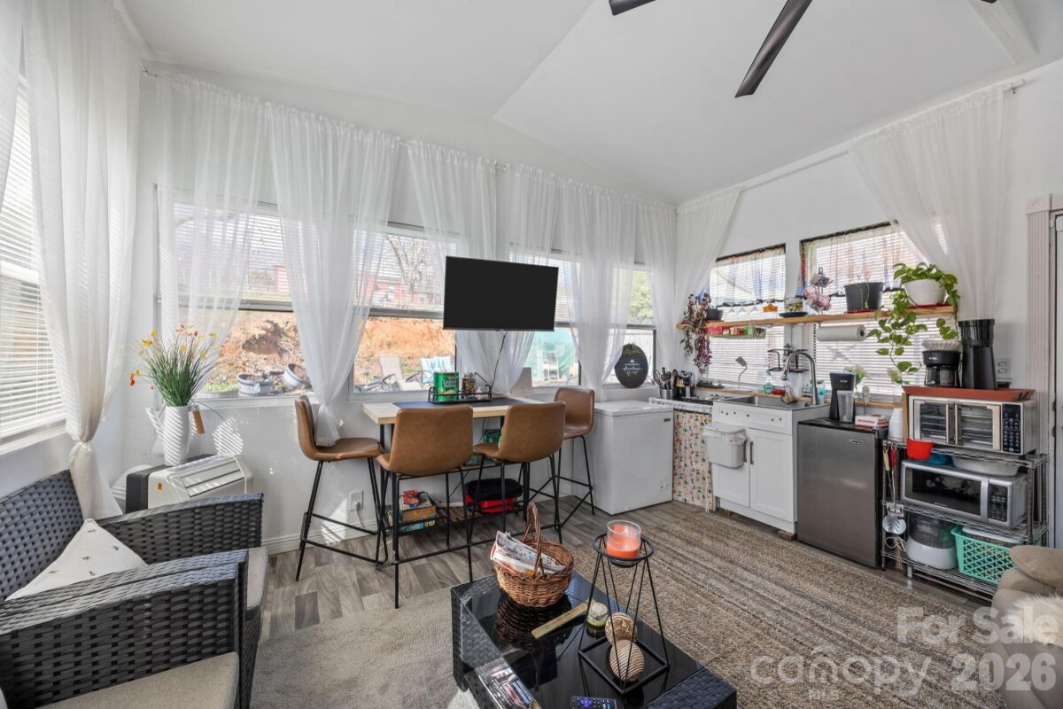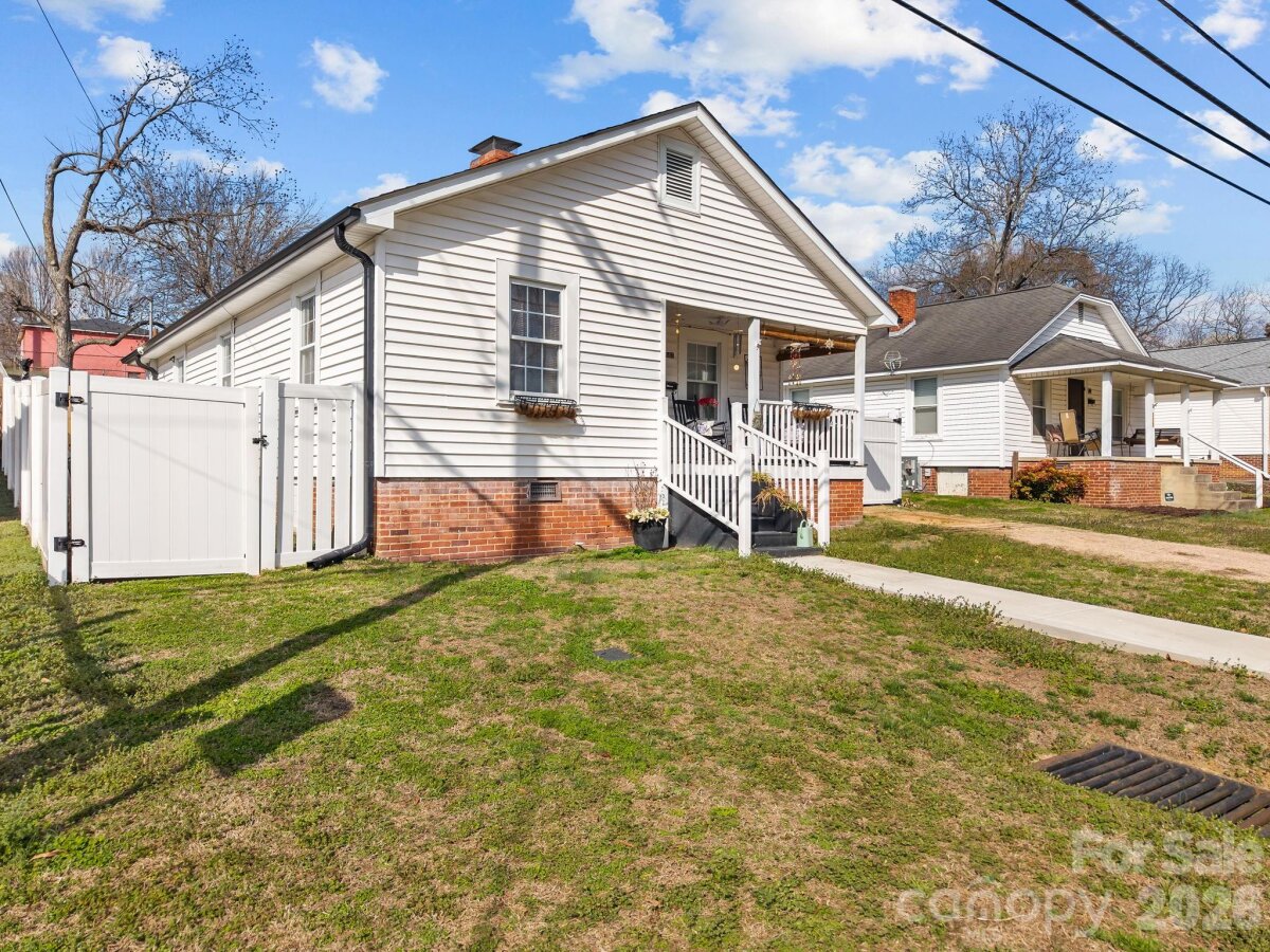 Welcome to this lovely charming and thoughtfully updated 2-bedroom, 2-bath home. Formerly a duplex, it offers comfort, flexibility, and great potential. Inside, you’ll find an updated kitchen that flows seamlessly into an open dining area—perfect for everyday living and entertaining. While previously configured as a duplex, the flex room that is currently being used as a third bedroom and was originally the kitchen for one side of the duplex; plumbing and gas lines remain in place but have been capped in the crawlspace below to leave options for the next owner to potentially set back up as a kitchen. Alternatively, enjoy the flexibility of this room as a home office, hobby space, or private retreat. Both bathrooms have been tastefully updated, and the home features a bright, inviting sunroom filled with natural light, complete with a ceiling fan and its own mini split unit for heating and cooling. It’s sure to become one of your favorite places to relax. Step outside to enjoy a fully fenced backyard featuring a cozy fire pit—an ideal setting for gatherings or quiet evenings outdoors. Looking for additional parking, simply open the double gate on the side of the home and you will have room to park 3-4 cars in the driveway. Conveniently located on a dead end street and near the revitalized downtown area of Kannapolis, you’ll be close to local dining, shops, parks, trails, community events, public library, schools and Atrium Health Ballpark—home of the Kannapolis Cannon Ballers. Five minutes or less has you enjoying all this vibrant and growing community has to offer. Please note: 1353 total square feet of which 260 sq ft is the unpermitted sunroom addition