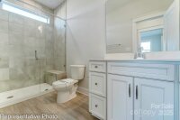 This gorgeous Charleston plan has it all with 5 bedrooms, including a guest suite on the main, 3 baths and over 3,700 square feet of living space! The first floor of this home features the guest suite, along with a large, beautiful kitchen, family room with a fireplace, dining room, and office with French doors. The beautiful designer kitchen features white cabinets with a large island, soft-close cabinets, quartz counters and stainless steel appliances including gas cooktop, designer range hood and wall-oven. Four additional bedrooms are upstairs, including the primary bedroom which features two walk-in closets, and the primary bath, which features a garden tub, separate tile shower with bench seat, dual sink vanity and water closet. The upper floor also includes a bonus room and laundry room as well as jack-and-jill bath. Enjoy the outdoors on the rear screened porch!