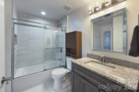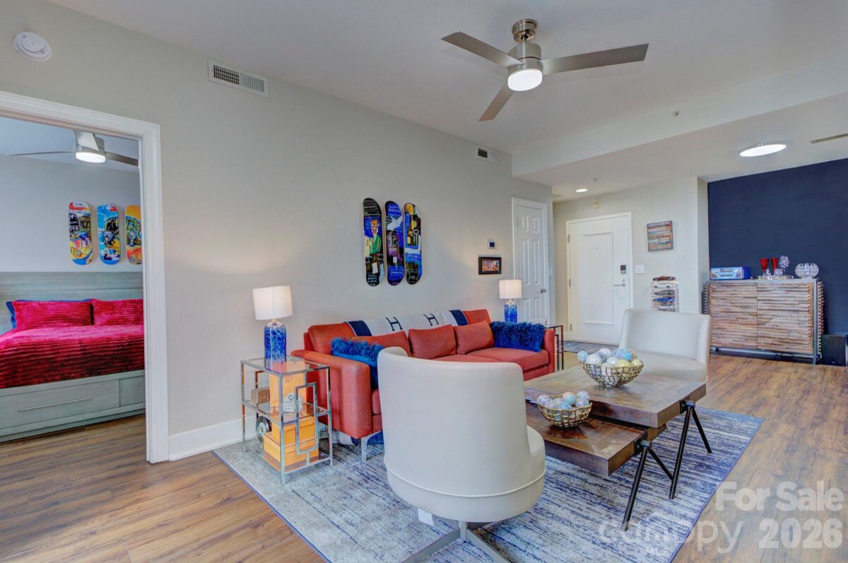 Welcome to this beautifully updated condo in the heart of Uptown Charlotte, where location, lifestyle, and modern upgrades come together in perfect harmony. Situated in a secure building with assigned covered parking in a gated parking deck, this condo offers both peace of mind and convenience. The unbeatable Uptown location puts you within walking distance to everything the city has to offer—dining, nightlife, Panthers Stadium, Hornets Arena, Knights Baseball, Blumenthal Theater, parks, greenways, and more. Plus, with easy access to I-77 and the Gold Line streetcar stop right out front, commuting and exploring the city has never been easier. Recently fully updated, this move-in-ready home features new luxury vinyl plank flooring and modern lighting throughout, paired with a brand-new HVAC system installed in 2024 for year-round comfort. The open floor plan offers a seamless flow from the kitchen to the living area, perfect for entertaining or relaxing. The kitchen is fully updated with granite countertops, an undermount sink, a breakfast bar, sleek subway tile backsplash, and stainless steel appliances including the refrigerator. The bathroom has also been completely renovated, featuring a new vanity, tile flooring, a beautifully tiled tub surround with niche, and glass shower doors for a clean, modern look. Step outside to your own private covered balcony overlooking the courtyard and community pool, offering a peaceful outdoor retreat in the middle of the city. The spacious primary bedroom boasts both a walk-in closet and a second closet, providing ample storage. Washer and dryer convey, and 2†blinds are installed throughout, adding both style and privacy. This well-maintained community offers resort-style amenities including a community pool, clubhouse room, and an incredible rooftop terrace with TV, gas grills, a firepit, and stunning views of Uptown Charlotte—ideal for relaxing or entertaining guests. Whether you’re a first-time homebuyer, urban professional, or investor, this condo is the perfect opportunity to enjoy a vibrant city lifestyle with modern comforts. With all the major upgrades already completed and a location that’s second to none, this home is truly move-in ready. Don’t miss your chance to own a stylish, updated condo in one of Charlotte’s most desirable locations!
