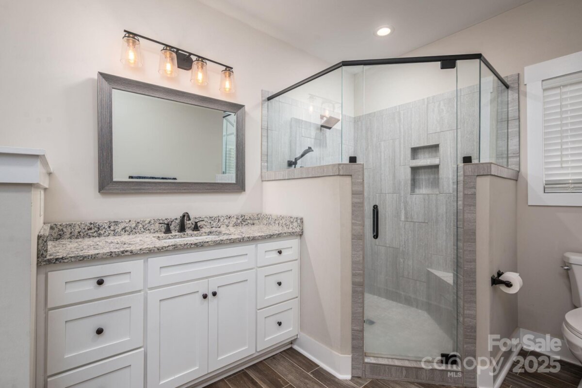 Discover this like-new picture picture-perfect ranch home in the Brytewood community! Built in 2021, this home offers a natural light-filled open floor plan, hardwoods, and designer touches throughout. The stunning kitchen features a generous pantry, granite countertops, custom cabinetry, and a large island, making entertaining effortless. The primary suite provides ultimate comfort with a soaking tub, glass shower, dual vanities, and a customized walk-in closet. A charming screened porch is perfect for those Carolina evenings, and extends the living space outdoors. Notice the quality craftsmanship and thoughtful layout, creating the best blend of classic style and functionality. Conveniently located, you will find a peaceful reprieve, yet be within minutes of Lincolnton or Hickory for shopping, dining, and unlimited amenities.