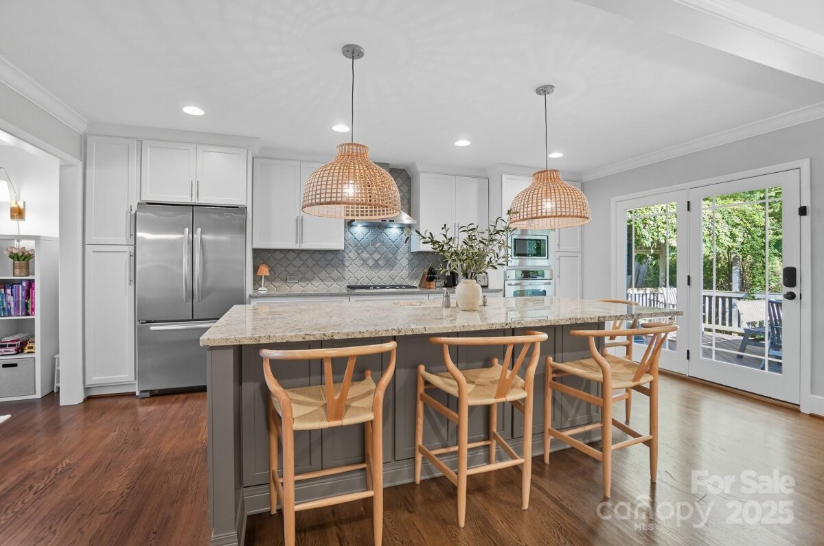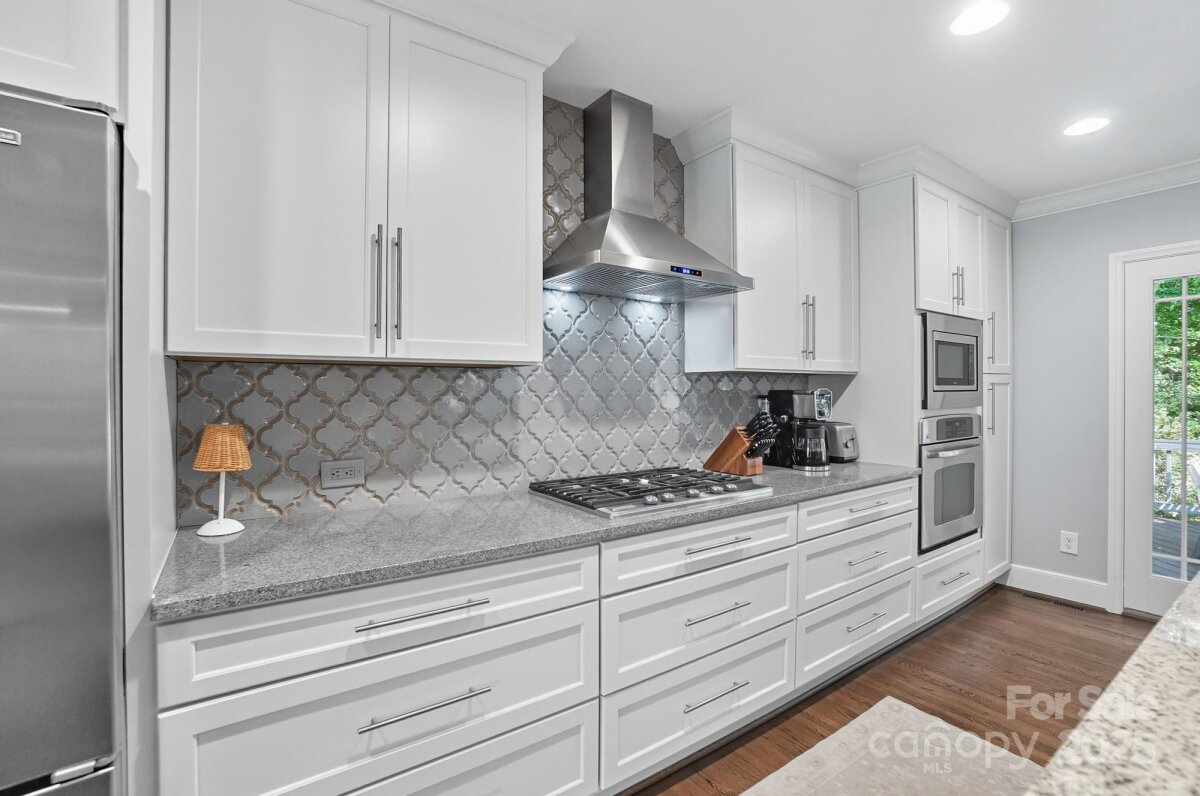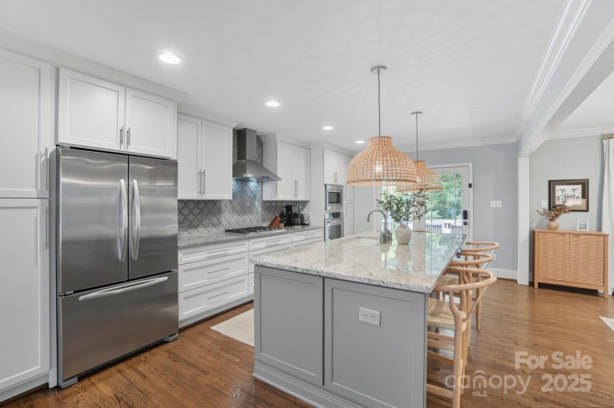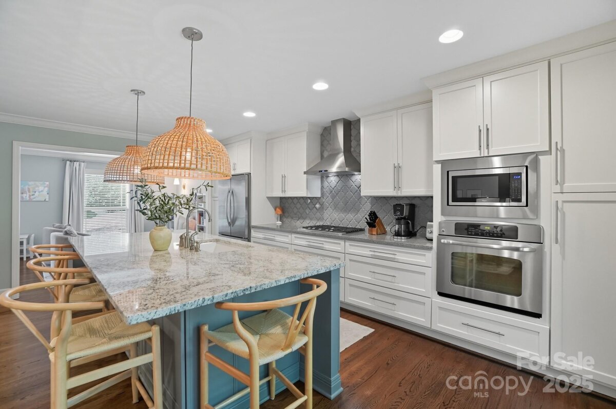 Beautifully renovated Stonehaven home with new roof, Sept,'25! This exquisite home offers 3,622 square feet of refined living space featuring 4 bedrooms 3.5 baths. Upgrades include opening the floor plan, adding hardwood flooring, newer windows, exterior doors. Designer kitchen features custom cabinets, large island, granite, stainless appliances, and blue arabesque tile backsplash. Primary suite offers a walk-in closet and updated bath with spacious frameless shower. Private upstairs guest suite with full bath and living or office area. Finished, walk-out basement with new carpet and fresh paint. Prime location near Sardis Swim & Racquet, McAlpine Greenway, Cotswold, SouthPark, and Uptown. A large laundry room is in the basement; there are also laundry hookups in a main-level bedroom closet. Some community features require a paid club membership.