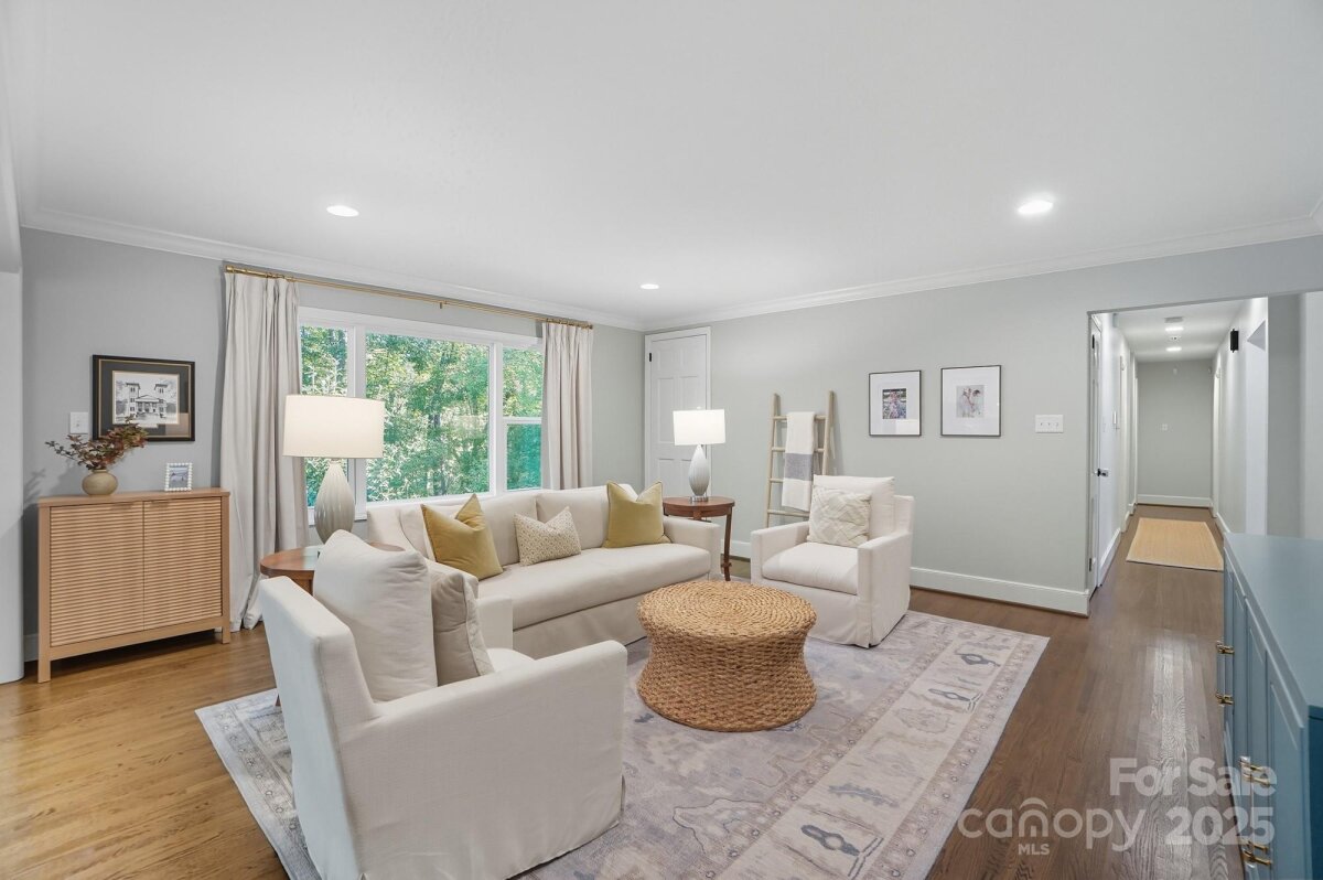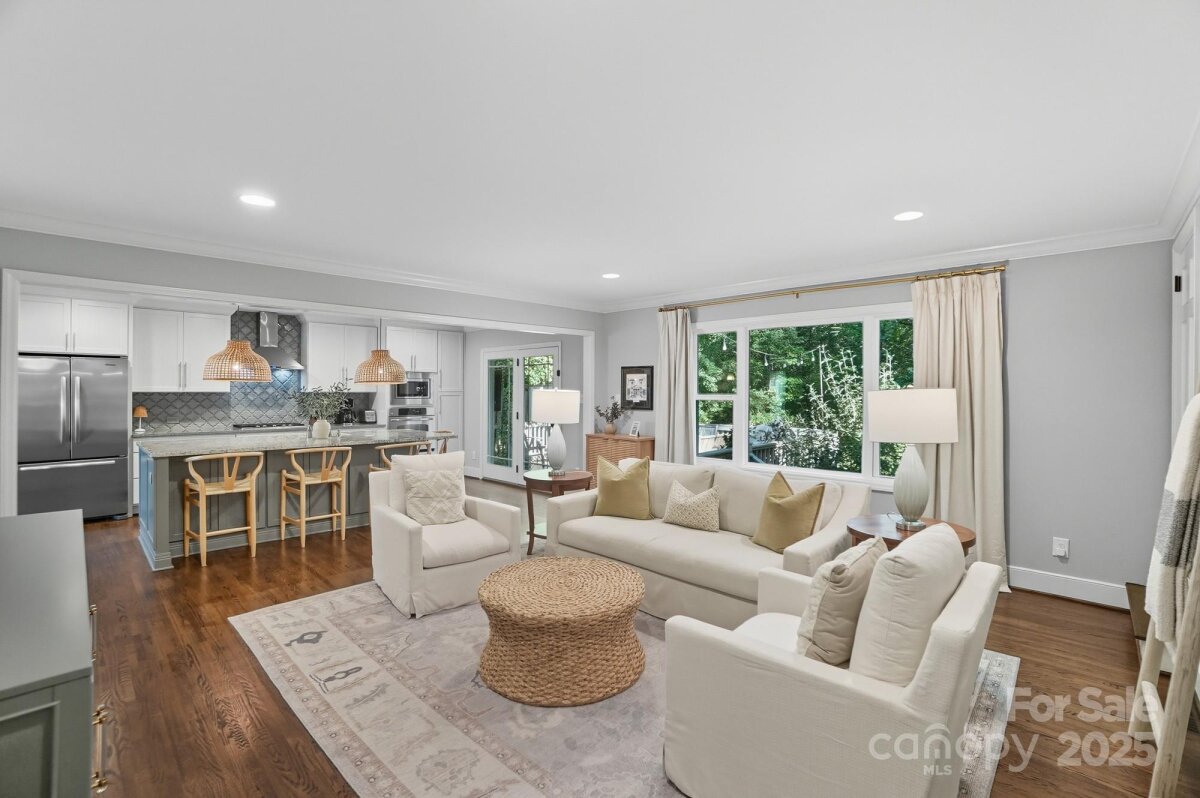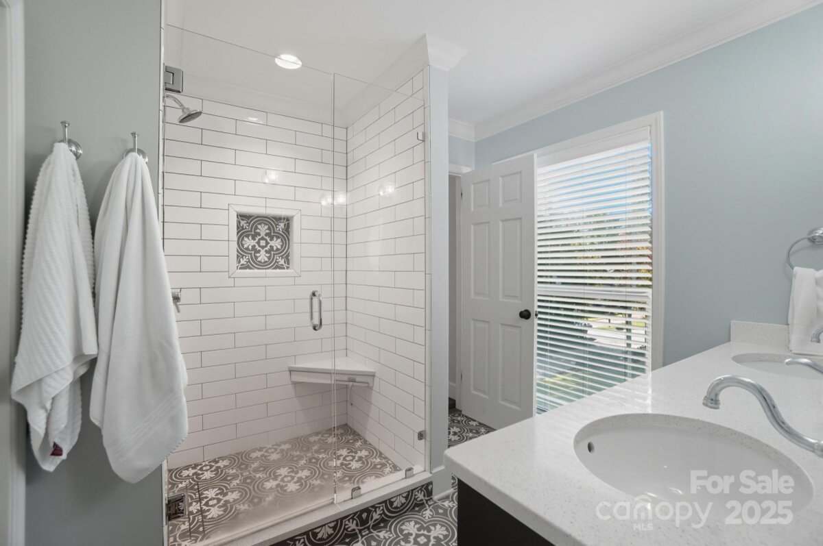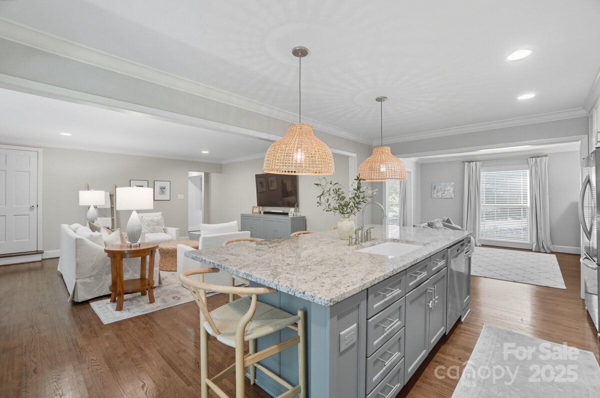 Beautifully renovated Stonehaven home with new roof, Sept,'25! This exquisite home offers 3,622 square feet of refined living space featuring 4 bedrooms 3.5 baths. Upgrades include opening the floor plan, adding hardwood flooring, newer windows, exterior doors. Designer kitchen features custom cabinets, large island, granite, stainless appliances, and blue arabesque tile backsplash. Primary suite offers a walk-in closet and updated bath with spacious frameless shower. Private upstairs guest suite with full bath and living or office area. Finished, walk-out basement with new carpet and fresh paint. Prime location near Sardis Swim & Racquet, McAlpine Greenway, Cotswold, SouthPark, and Uptown. A large laundry room is in the basement; there are also laundry hookups in a main-level bedroom closet. Some community features require a paid club membership.