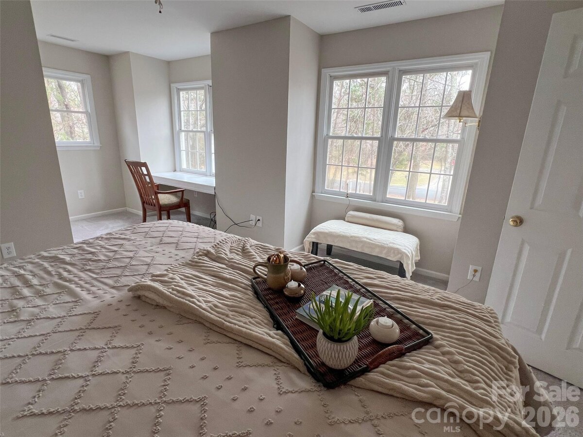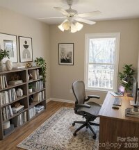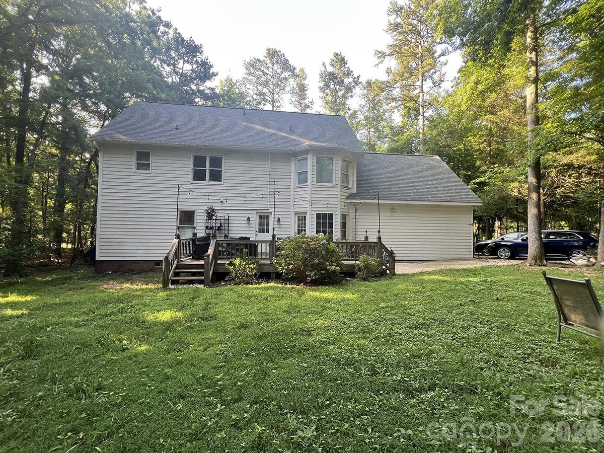 Charming owner-built modern Victorian-style home nestled on a quiet cul-de-sac just outside the city of Monroe, NC. Surrounded by mature trees, this residence offers privacy, character, and flexible living space with 4 bedrooms, a bonus room, office, and 3 full baths. The wide front porch opens to a bright, open-concept kitchen, dining, and living area with a large picture window and balcony. The main level features a private bedroom with adjoining sitting room—ideal for a mother-in-law suite, a second primary bedroom or home office. Upstairs, the primary bedroom includes a walk-in closet and en-suite bath. Recent updates include a new roof and hot water heater, carpet, and a freshly painted exterior. The full garage offers a sink, counter space, and refrigerator/freezer hookups. Conveniently located near schools, shopping, parks, and the hospital. This home combines timeless charm with modern functionality. **Some images have furniture/decor added by AI for inspiration.