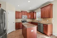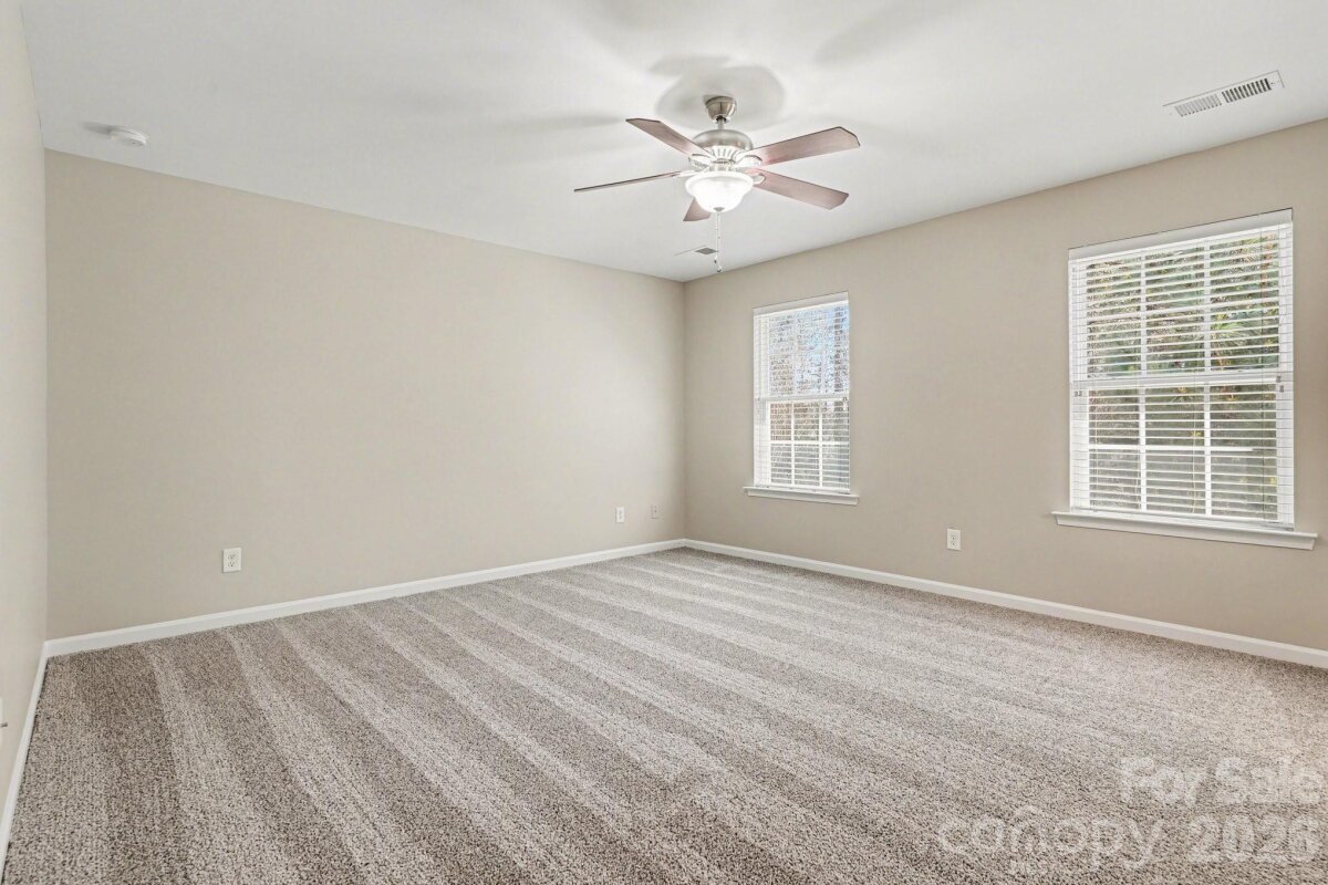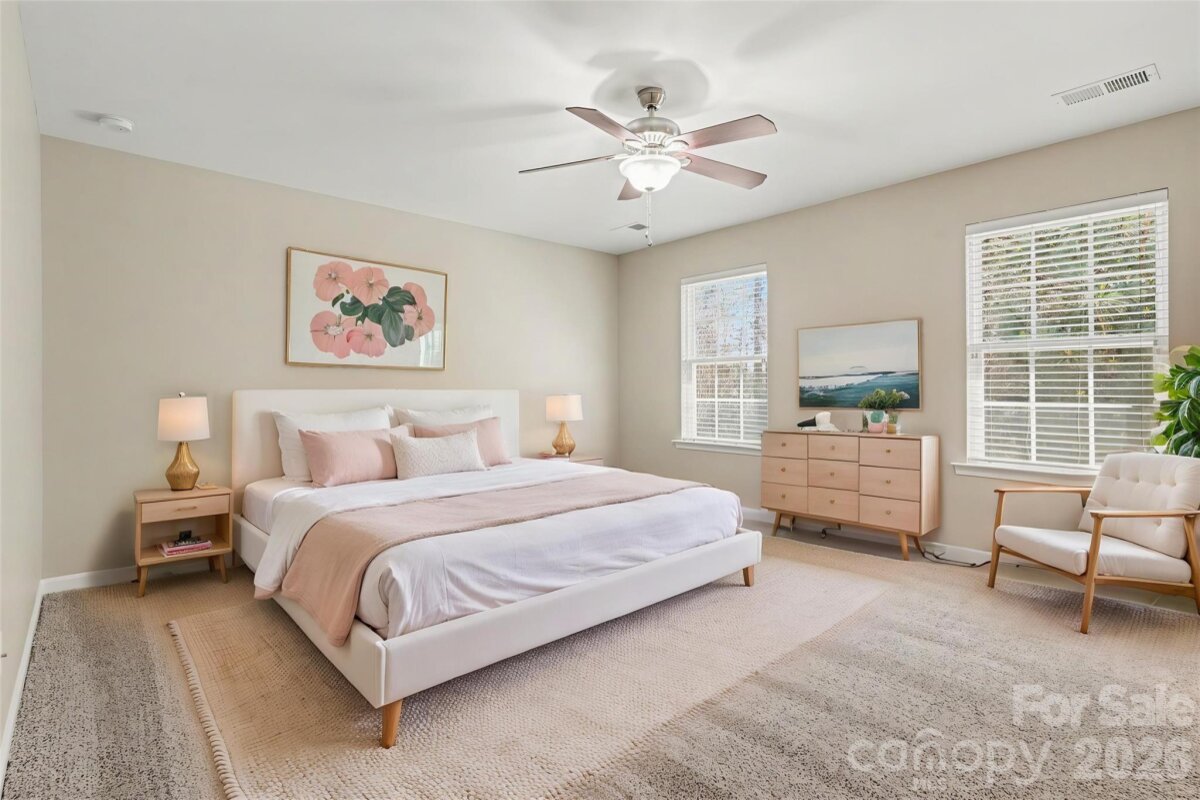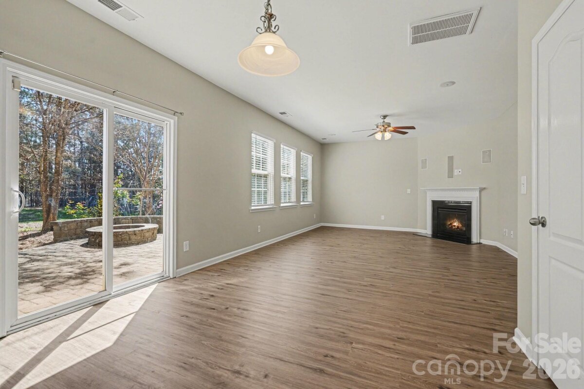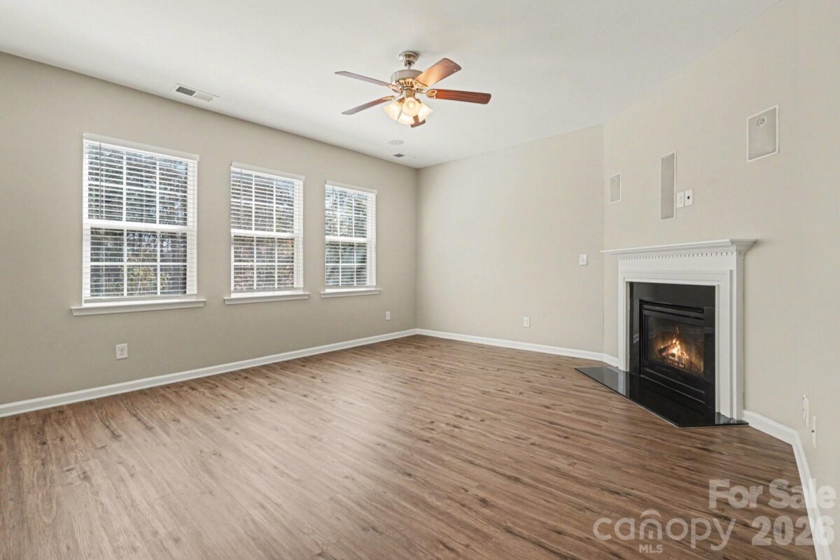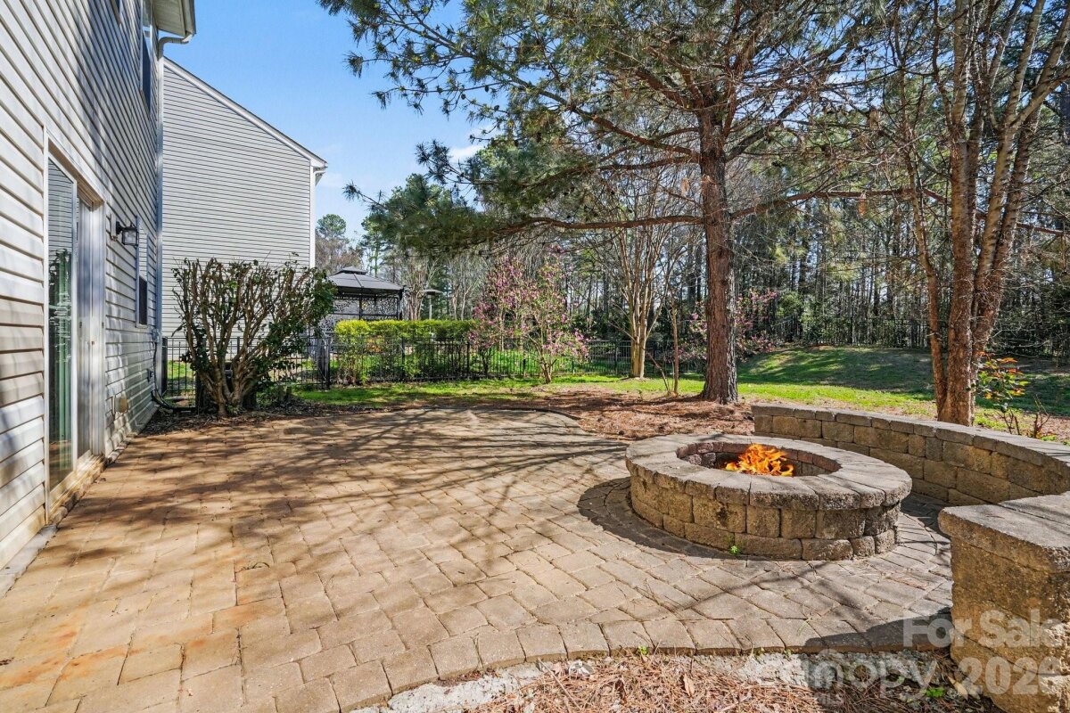 Welcome to this beautiful home in the highly desirable and conveniently located Berewick community! Situated on a huge lot, this spacious property offers four generously sized bedrooms plus an additional upstairs den—perfect for a home office, playroom, or flex space. From the moment you arrive, you’ll appreciate the great curb appeal highlighted by charming brick veneer and a welcoming covered front porch. The backyard is designed for enjoyment and entertaining, featuring a brick firepit, wrought iron fencing, and plenty of space to relax. Inside, the freshly painted interior showcases a thoughtful blend of luxury vinyl flooring in high-traffic and wet areas, along with plush carpeting in the bedrooms. The well-appointed kitchen includes upgraded maple cabinetry, granite countertops, stainless steel appliances, and comes fully equipped for move-in ease. Stylish upgraded lighting and hardware add a modern touch throughout. The cozy family room with fireplace creates the perfect gathering space, while ceiling fans in the bedrooms enhance comfort. The spacious primary suite features an oversized walk-in closet with a custom storage system, dual sinks, and a separate soaking tub and shower for a spa-like experience. A huge unfinished attic provides exceptional storage potential. With space, style, and a prime location, this home truly has it all!