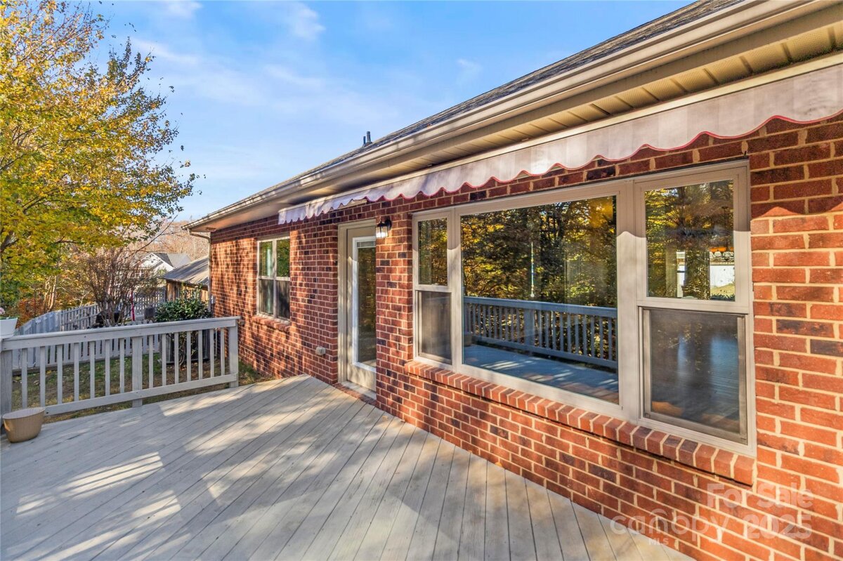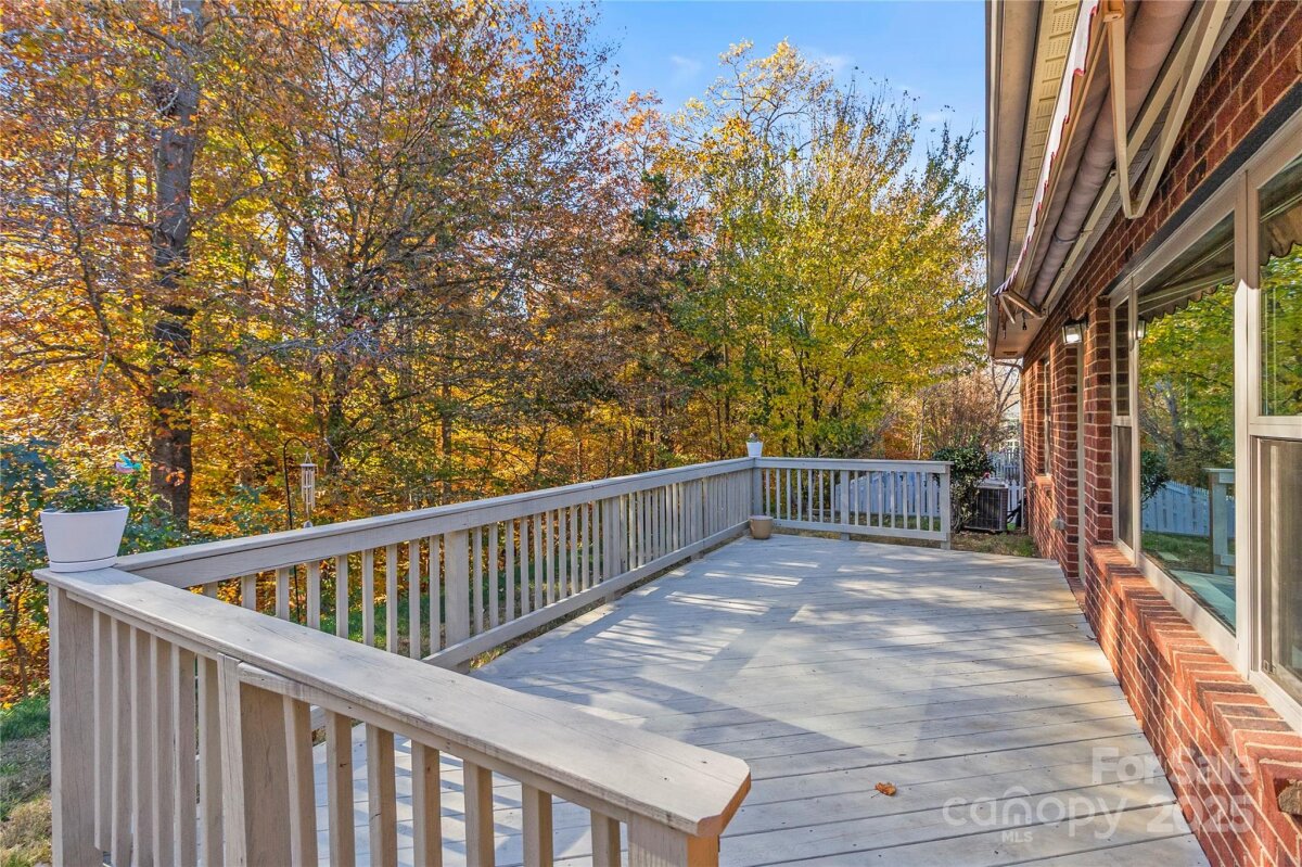 Welcome Home to a price improvement on this easy ONE LEVEL living, full-brick, split bedroom floorpan gem tucked into the Villages of Denver. Thoughtfully laid out, this home has everything you need and nothing you don't! The kitchen & dining area open and flow through to the living area's cathedral ceiling creating an expansive feeling. The main living space is complete with a cozy fireplace, gorgeous engineered hardwood floors, and an amazing view of your private wooded backyard through the large picture window. Speaking of, the large back deck provides an amazing retreat to enjoy your morning coffee or grill out with family & friends and enjoy the healthy natural tree buffer in your backyard, which is right-sized for a LOW-MAINTENANCE vibe. The large retractable awning over the deck provides even more opportunity to enjoy your outdoor slice of paradise! Inside, the Primary Suite features lovely trey ceilings, a great view out to the backyard, a sizable walk in closet, a soaking garden tub, and expanded step in tile shower with bench.