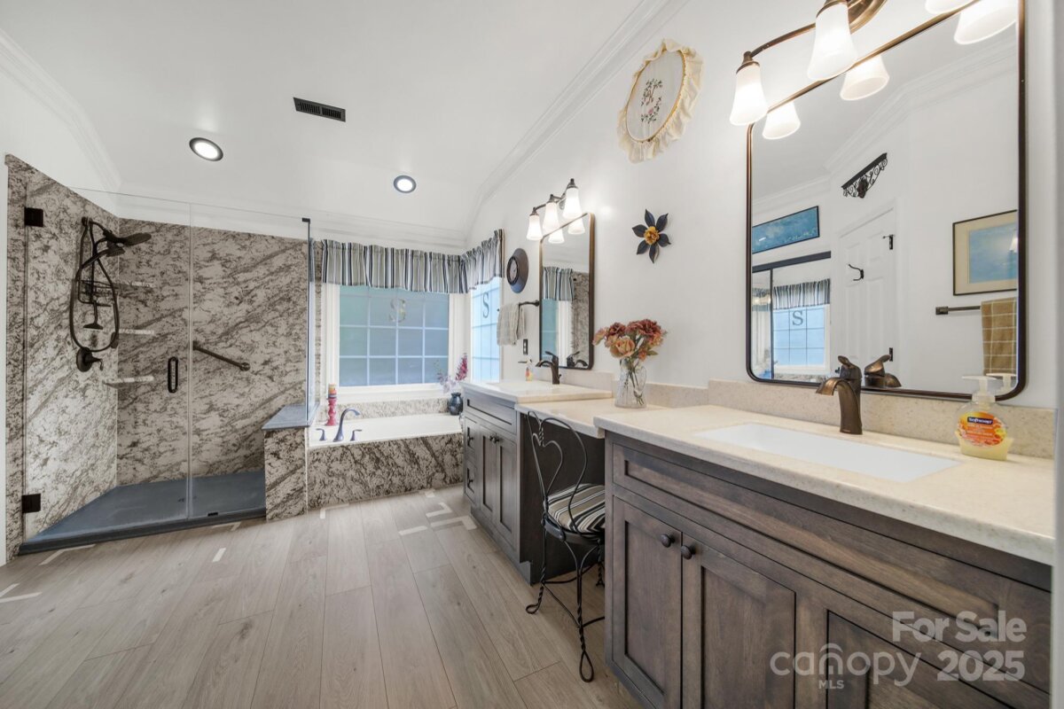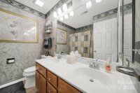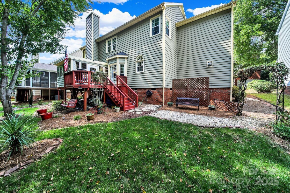 PRIME SOUTH CHARLOTTE LOCATION! Welcome to this elegant 2-story brick front home in the desirable Wilshire community! Surrounded by mature trees on a private cul-de-sac street. Step into the impressive 2-story foyer with gleaming wood flooring and wrought iron balusters headed upstairs. Entry flanked by a formal dining room with chandelier on one side and a formal den on the other. The back of the home opens up to a spacious great room filled with natural light and anchored by a gas-log fireplace and crown molding. The open-concept layout flows seamlessly into the breakfast nook with bay window and the well-appointed kitchen, complete with a center island, tile backsplash, and convenient built-in computer niche. A stylish butler’s pantry with mirrored back wall and glass shelving is perfect for a beverage bar, ideal for entertaining at any time of the day. Upstairs, the luxurious primary suite features a tray ceiling and updated spa-like bath with dual vanities, a soaking tub, and a walk-in glass-enclosed shower. Three additional bedrooms and a versatile bonus room provide plenty of space for family and guests. Bonus room also has windows and closets so can actually be used as a 5th bedroom. Enjoy outdoor living on the covered screened porch with ceiling fan, overlooking a private backdrop of shade trees. New tankless hot water heater - 2025, Main level a/c & furnace - 2023, Roof & gutters - 2021, newer windows and Termite Bond. All of this in a prime location, just minutes to the dining, shopping, and entertainment options of Ballantyne and SouthPark.