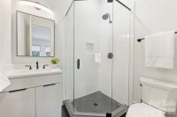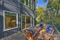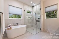 Modern sophistication and luxury abound in a lovely wooded setting in popular Stonehaven! Flooded with natural light, beautiful architectural features and high end finishes throughout, this home is designed to delight. The open floor plan is optimal for entertaining or simply relaxing at home. Wooded views of the half acre lot provide serenity whether you are inside or enjoying the Ipe wood wrap-around deck. The chef's kitchen has it all: built in Sub-Zero fridge, ZLINE gas range with hood, Bosch dishwasher, Sharp microwave drawer, and dual temperature controlled wine fridges! The dramatic center island with waterfall countertop provides a perfect spot to unwind. Two walls of sliding glass doors open to the deck. Thoughtful SMART home systems control heating and cooling, fireplaces, garage door, irrigation system, Sub-Zero fridge, electric vehicle charger, and high end security system! Follow the blonde white oak flooring upstairs to a luxurious primary suite boasting a huge bedroom overlooking the woods and 2 custom closets, spa-like bath with zero entry shower featuring rain shower head and hand shower, dual vanity with quartz countertop, and soaking tub. 3 additional bedrooms with custom closets and 2 full baths with beautiful tile and countertops complete this level. The upper level includes a cozy reading nook and spacious bonus room which may serve as the 5th bedroom with its own full bath. Don't miss evenings grilling out on the deck, enjoying the outdoor fireplace and scenic setting any time of year. Great location with unbeatable proximity to James Boyce Park, Sardis Swim and Racquet Club, and the McAlpine Creek Greenway. What a lifestyle! Close proximity to several private schools. Welcome home!