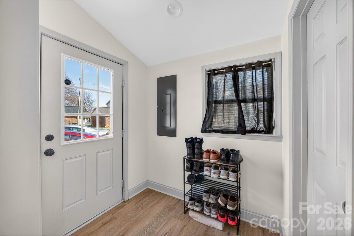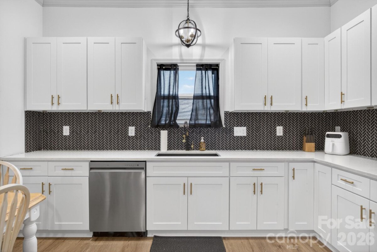 Beautifully renovated home only steps from downtown Kannapolis NC. 2 Bedrooms 2 full bathrooms with luxury vinyl plank flooring throughout. Large eat in kitchen has quartz counter tops, tile backsplash, & stainless appliances. Full covered front porch & flat clear yard extends living areas outside. Siding, wiring, plumbing, windows, central heating & air, water heater, fixtures, & appliances new in 2025. Property is zoned CC - Center City which promotes wide range of uses typical of a center city location from retail, service, office, & residential uses.