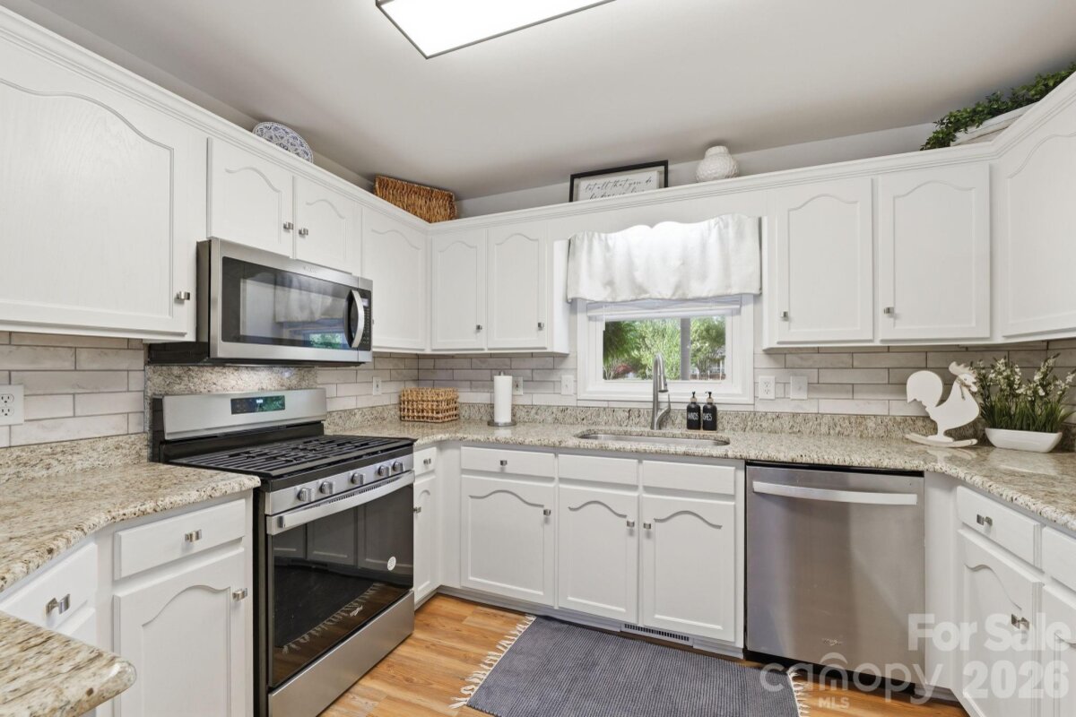 Beautifully updated home with major improvements already completed! Enjoy peace of mind with new windows, doors, and an insulated garage door, along with a 2022 HVAC system and a brand-new tankless hot water heater (2025). The bathrooms have been fully remodeled in 2025, and the home features granite countertops in both the kitchen and baths. The kitchen is equipped with a gas range, and the outdoor space is perfect for entertaining with gas hookups on the patio for a natural gas grill and a new concrete back patio. Additional upgrades include updated light fixtures and door hardware throughout. Step outside to a large fenced backyard complete with a spacious outbuilding that conveys, offering excellent storage or workspace options. Enjoy the added benefits of no city taxes and no HOA. Please note: Carport in the backyard does NOT convey.