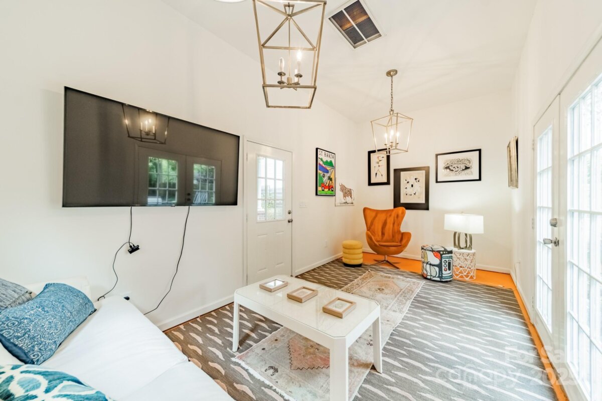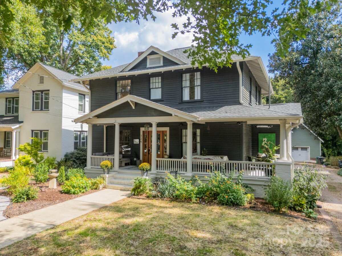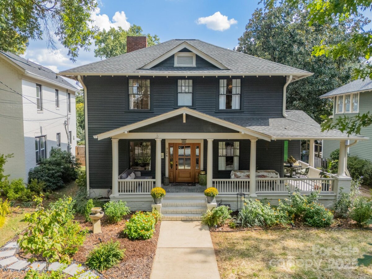 Welcome to this beautiful 1926 gem in the heart of Elizabeth, one of Charlotte’s oldest and beloved neighborhoods. Nestled just minutes from Plaza Midwood, the new Commonwealth development, and 7th Street’s vibrant restaurants and shops, this home combines timeless character with modern comfort. Step inside and be greeted by light-filled living spaces showcasing original charm and thoughtful updates. Elegant hardwood floors and stylish lighting fixtures create a warm, inviting atmosphere. The living areas flow seamlessly, featuring two distinct gathering rooms, anchored by a fireplace and surrounded by custom built-ins and designer finishes. The bedroom downstairs is currently being used as an intimate den. The chef’s kitchen boasts custom cabinetry painted in a rich navy, open shelving, a professional-grade range, and plenty of prep space. The adjacent dining and entertaining areas make this home perfect for both intimate evenings and lively gatherings. Upstairs, you’ll find three spacious bedrooms and two full baths, offering comfort and flexibility for family and guests alike. Outside, enjoy a generous, nicely landscaped lot with mature trees and manicured beds. The detached carport includes a conditioned office space, perfect for working from home, a studio, or a creative retreat. The backyard patio provides a private oasis with space for outdoor dining, lounging, and entertaining. This rare Elizabeth beauty is the perfect blend of classic architecture, curated design, and prime location—just waiting for its next chapter.
