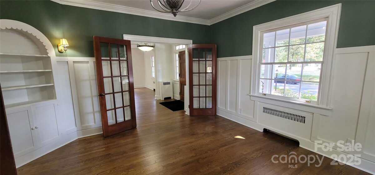 Experience the perfect blend of historic charm and modern elegance in this beautifully renovated two-story home, nestled in the heart of the picturesque town of Shelby. Just a short stroll from vibrant downtown shops, local restaurants, and the Farmers Market, this stately residence has been thoughtfully updated while preserving its original character and architectural details. Step into the spacious foyer and be transported back in time. To your right, a generous living room welcomes you with gleaming hardwood floors and a cozy gas-log fireplace. On the left, elegant French doors lead into the formal dining room, featuring built-in corner cabinets and charming sconce lighting. The kitchen is a true showstopper—adorned with rich wood cabinetry, quartz countertops, high-end appliances, and abundant pull-out drawers for easy organization. A functional island adds space for prep or casual dining. Just beyond, a versatile flex room is flanked by a walk-in pantry and a well-appointed laundry room—perfect as a breakfast nook or butler’s pantry. As you move through the main level, you’ll find a beautifully arched hallway leading to a full bath with original tile flooring, vintage fixtures, and a stand-up shower. A nearby door opens onto the back deck, ideal for enjoying your morning coffee. Upstairs, the wide, grand staircase leads to two secondary bedrooms with hardwood floors and a walk-in hall closet. The Primary Suite is a serene retreat, boasting an original fireplace, hardwood flooring, dual closets, and a private bath complete with a clawfoot tub and double vanity. Out back, you'll find a flexible outbuilding that can serve as a storage shed, she-shed, workshop, or pool house—the choice is yours! The large deck overlooks a deep, refreshing pool, perfect for summer days. The fully fenced backyard offers total privacy for relaxing or entertaining. Additional updates include a new HVAC system, partial plumbing upgrades, and updated electrical wiring. Don't miss your chance to own a piece of history—completely modernized for today’s lifestyle.