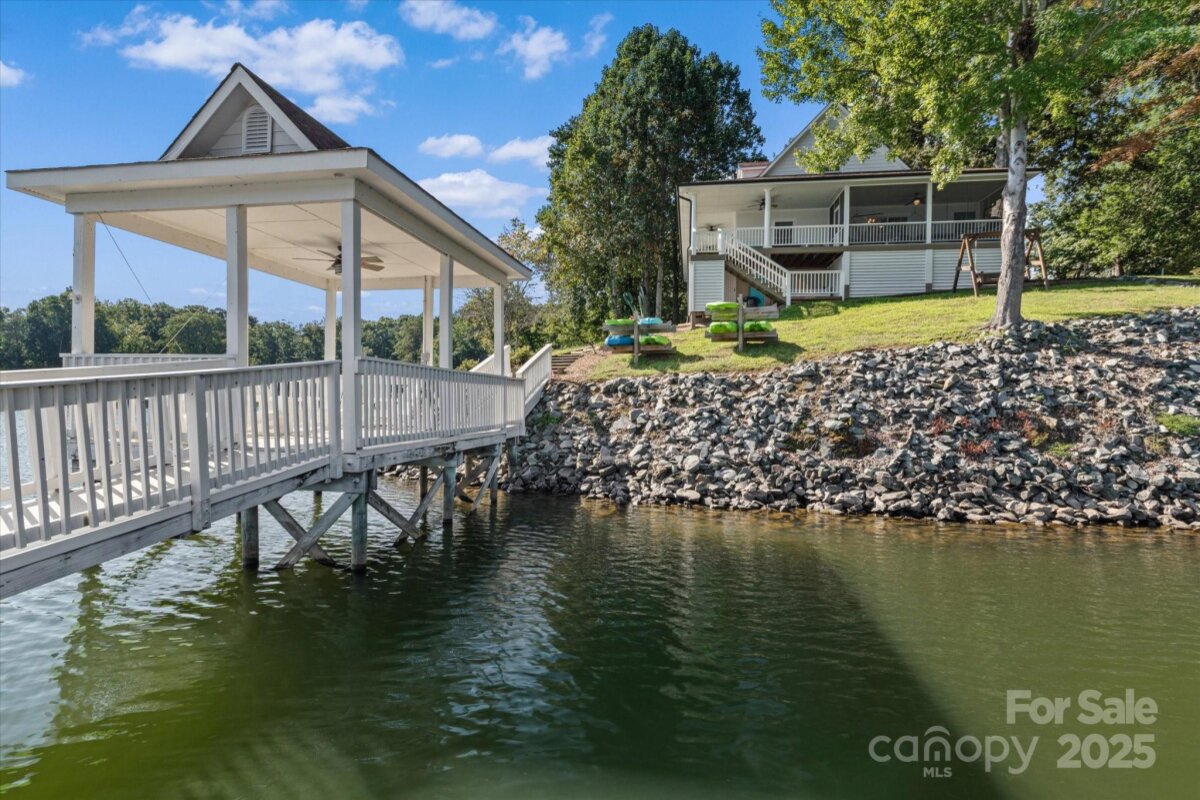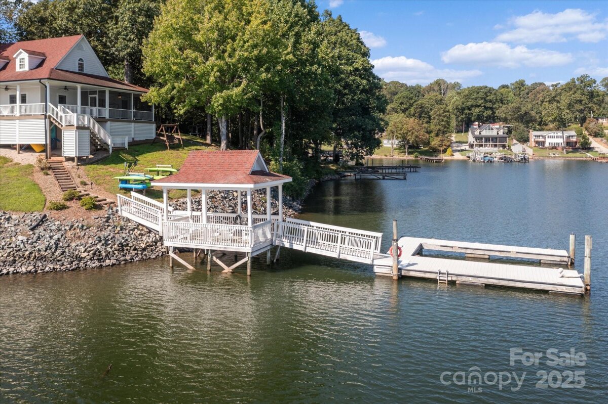 Exceptional waterfront property offering some of the best views on Lake Norman with over 380' of shoreline! This picturesque home is set on a private point allowing for magnificent water views from almost every room. Private DOCK and fully renovated beautiful home. Enjoy 3 bedrooms and 3 1/2 bathrooms plus an extra bonus room and office. Extra wide, rocking chair porches create outdoor living space that's perfect for relaxing and taking in the year round water views. The PRIMARY BEDROOM is on the MAIN LEVEL with sliding doors that access it's own screened porch. The ensuite bathroom has a spacious shower and double vanity. The kitchen is open to the dining area and Great room. A nice flex space on the main floor makes a great office or extra guest room. An additional full bathroom on the main floor is perfect for family and friends coming in off the lake. A floating staircase leads upstairs to two more bedrooms, a full bathroom and a recreation room. Keep your boat at your private dock and enjoy launching the kayaks and paddleboards that convey on day 1. There's also a covered sitting area on the pier. This beautiful property is currently an income producing luxury short term vacation rental but would also make a terrific primary residence or a great vacation home. No HOA. Close to wonderful new retail, and dining at the Villages at Sherrills Ford. Selling Fully Furnished. Move in ready!