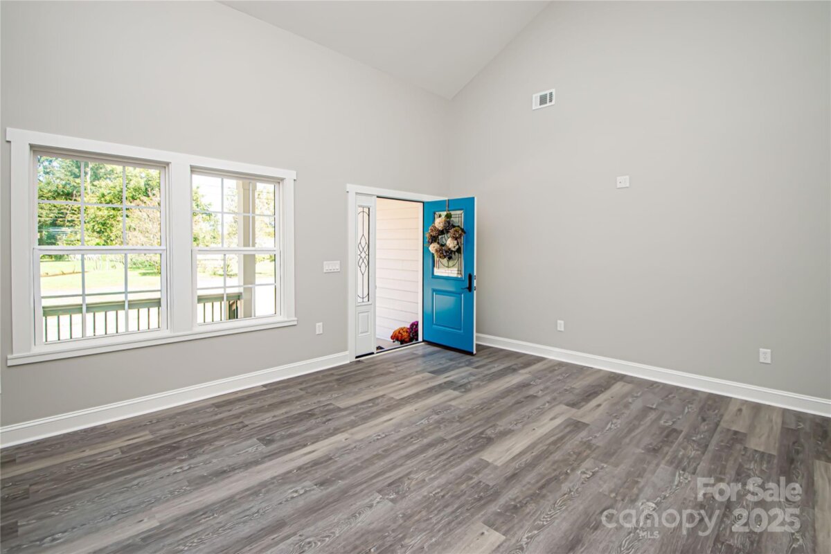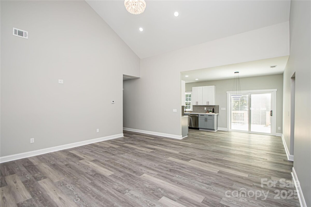 Beautiful new construction ranch home! Welcome to this stunning 3-bedroom, 2-bath ranch perfectly situated on a flat lot in a quiet and peaceful setting. Step inside to a spacious living room featuring vaulted ceilings and a breathtaking crystal chandelier. The open floor plan flows seamlessly into the kitchen and dining area, creating an inviting space for entertaining and everyday living. The home features LVP flooring throughout with tile in the bathrooms. The gorgeous kitchen is elegantly designed with white shaker cabinets, black and gold hardware, granite countertops, a stylish tile backsplash, large farmhouse sink, and all stainless steel appliances. A sliding glass door with built-in blinds opens to a deck overlooking the expansive backyard. The large primary bedroom includes a HUGE walk-in closet and a beautifully designed primary bath with brushed gold accents. Each of the three bedrooms has a ceiling fan/light fixture for added comfort. Additional highlights include a spacious two-car garage with ample storage, and a private, flat backyard with a deck—perfect for entertaining or relaxing outdoors. Best of all, NO HOA! Don’t miss the opportunity to own this move-in-ready home that combines style, comfort, and functionality in a serene location.