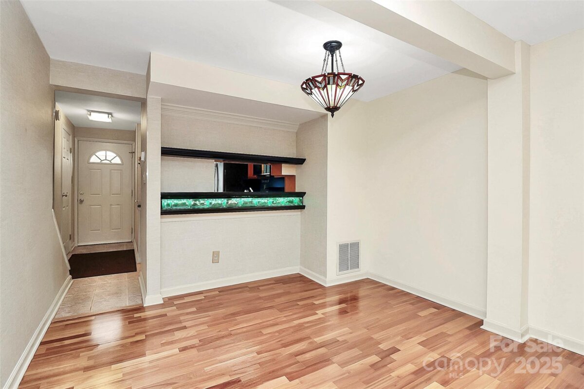 This 3-bedroom, 2.5-bathroom townhouse has been lovingly cared for by the same owner for over 30 years, and offers recent updates. With energy-efficient Champion windows and a newer HVAC system with an air scrubber installed in 2023, this home ensures year-round comfort and superior air quality. The main level features the kitchen, dining, and living rooms, along with a convenient half bath. The kitchen is equipped with sleek, stainless steel appliances, including a French door refrigerator, microwave, dishwasher and smooth-top electric range. The beautiful maple cabinetry is designed with upgraded features such as a plate rack, an appliance garage and lazy susans, maximizing storage and organization. Upstairs, the primary bath has been renovated with a large walk-in shower w/seat, new vanity, and a newer toilet. The primary bedroom offers ample space, while the second bedroom includes a large closet with custom shelving for easy organization. The walk-out basement is a true highlight, offering the versatility of a third bedroom or bonus/rec room—ideal for use as a home office, media room, or play area. A full bath with a tub/shower combination and the laundry/utility room are also located downstairs. The newer LG washer and dryer remain for your convenience. Step outside to enjoy the fenced-in deck off the basement, perfect for entertaining or relaxing in privacy. The property is ideally located just minutes from major thoroughfares, with easy access to McAlpine Creek Greenway, shopping, and dining. This move-in-ready townhouse is an exceptional opportunity you won’t want to miss! NOTE: The laundry room is heated & cooled by a vent, however, it is not counted in the HLA because the room is considered partially finished due to an area of exposed ceiling. The seller has a 10-yr maintenance pre-paid HVAC maintenance contract with Travis Crawford Heating & Air - it started in 2023, but has several years left and is transferable to the buyer. Appliances included: Refrigerator, Microwave, Electric Range, Dishwasher, Washer & Dryer.