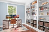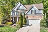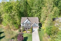 Tucked away in a quiet cul-de-sac, this charming home sits on nearly half an acre of beautifully wooded land, offering the perfect blend of privacy and outdoor enjoyment. Great rocking chair front porch greets you and overlooks a large lawn. The inside is just as nice! Formal office with built-in bookcases, formal dining room with coffered ceilings and cozy vibe. Second primary suite on main level with private, en-suite bath. Open floorplan with large, comfortable great room, fireplace, dining area and stylish kitchen. Complete with an island, pantry with wood shelves, quartz counters with timeless tile backsplash, gas range and double wall oven- this kitchen has it all! Primary bedroom on second level with tray ceilings, tiled shower with glass frame, soaking tub, quartz counters and walk-in closet. Three additional bedrooms (all sizeable) and large bonus room on second level, two additional baths all with quartz counters (one jack-n-jill with double vanity). The spacious, fenced backyard is ideal for pets, play or entertaining while the cozy fire pit creates a welcoming space to gather. Surrounded by mature trees and natural beauty, this property feels like a peaceful retreat while still being conveniently located. Through the gate and stone stairs you will find a shed with covered outdoor storage and trail to a nearby walking path. Whether you’re relaxing on the property or hosting guests, you’ll love the serene atmosphere and generous space this home provides.