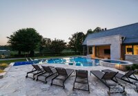 Set along the championship fairways of Quail Hollow Club, host to the city's most prestigious PGA tournaments, 7318 Baltusrol Lane is one of the most exquisite custom homes ever offered in Charlotte. Encompassing 17,843 square feet of heated and cooled living space, this 6 bedroom, 6 full bath, and 6 half bath estate was built in collaboration with architect Harry Schrader, Arcadia Homes, and J Layton Interiors. Clad in 4" hand-cut limestone and framed by lush landscaping and lighting, the estate's exterior commands immediate reverence. A grand porte-cochère anchors the gated motor court, opening to two garages with custom cedar doors. The main level opens through a 10' custom entry door into a dazzling foyer dressed in Pierre Frey fabric wall upholstery with dual hidden doors concealing a powder room and a walk-in coat closet. A dedicated library off the foyer features architecturally designed shelving and sweeping views of the backyard. Just beyond the foyer, the great room rises to 21-foot ceilings with custom wood detailing and skylights, anchored by a limestone-surround gas fireplace and a hand-blown glass chandelier over a Hellman Chang dining table set. Flowing between the great room and kitchen, the bar area is appointed with marble countertops and seating for five, a built-in Wolf coffee system and display shelving. The chef's kitchen features full-height marble countertops and backsplash, a Wolf and Sub-Zero appliance suite, and Wood Mode full-inset cabinetry, supported by a fully equipped scullery with a commercial-grade walk-in refrigeration and dishwasher. The primary suite occupies its own private wing, offering a true sanctuary where 17-foot wood accent ceilings, a rock crystal fixture, and rift-cut oak pivot doors set a tone of quiet grandeur. Expansive windows frame picturesque views over the Quail Hollow course, flooding the bedroom with natural light, while automated shades offer effortless privacy. A hidden door connects privately to the upper-level office and owners' lounge below. The ensuite bath offers heated flooring, a marble shower, two private water closets, dual walk-in closets, and a seamless connection to the laundry room. Accessible from the primary suite and through nano-sliding doors off the kitchen, the screened porch extends the living experience outdoors year-round with ceiling-mounted heaters. The lower level delivers a spa-grade fitness suite with gym, sauna, steam shower, laundry, and private massage room; a Cinematech-designed soundproof home theater with tiered seating, projector, and a fully appointed bar; and a temperature-controlled wine cellar designed to host intimate tastings. The main wing's upper level features a Golfzon simulator room with a custom designed bar area. The adjoining executive office opens to a porch overlooking the fairways, accompanied by a secondary office with private staircase access connecting to the primary suite and lounge below. The guest wing spans two levels, offering five beautifully appointed bedrooms, each with ensuite baths, a dedicated laundry room, and a main-level lounge with backyard access. Outside, the estate unfolds across tiered, fairway-view grounds, featuring the resort-style pool and spa, and swim-up bar, surrounded by multiple patio dining areas, limestone surrounded fireplaces, and a full outdoor kitchen. The pool house features its own entertaining space, patio with a fireplace, powder room, and laundry, while the attached golf cart garage stands ready for direct access to the Quail Hollow fairways via a private gate. Ideally positioned minutes from SouthPark's premier dining, retail, top public schools, private schools, and major roadways, this estate offers the rare combination of a secluded, resort-style retreat within a private, security-patrolled community. Every room, material, and detail reflects a singular, unwavering commitment to craft, permanence, and the pinnacle of luxury living in Charlotte.