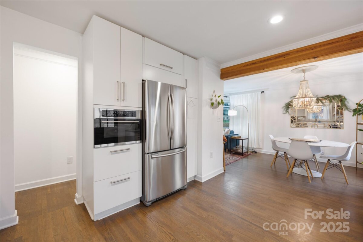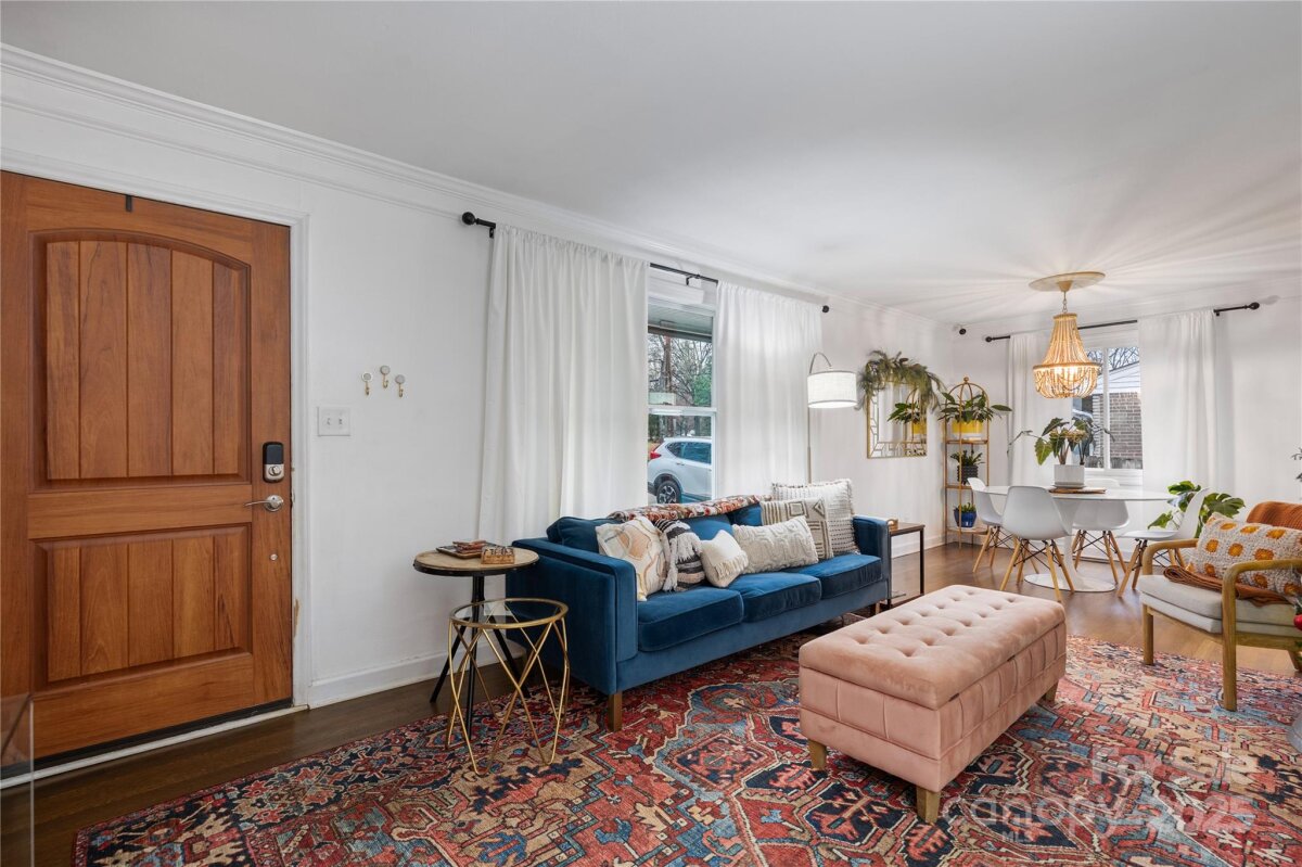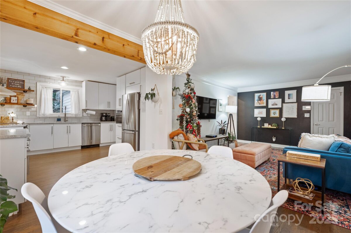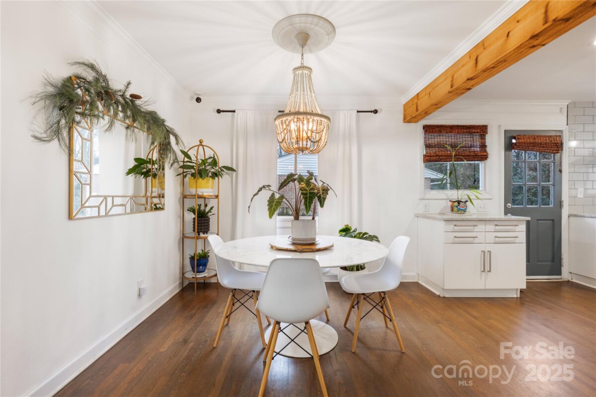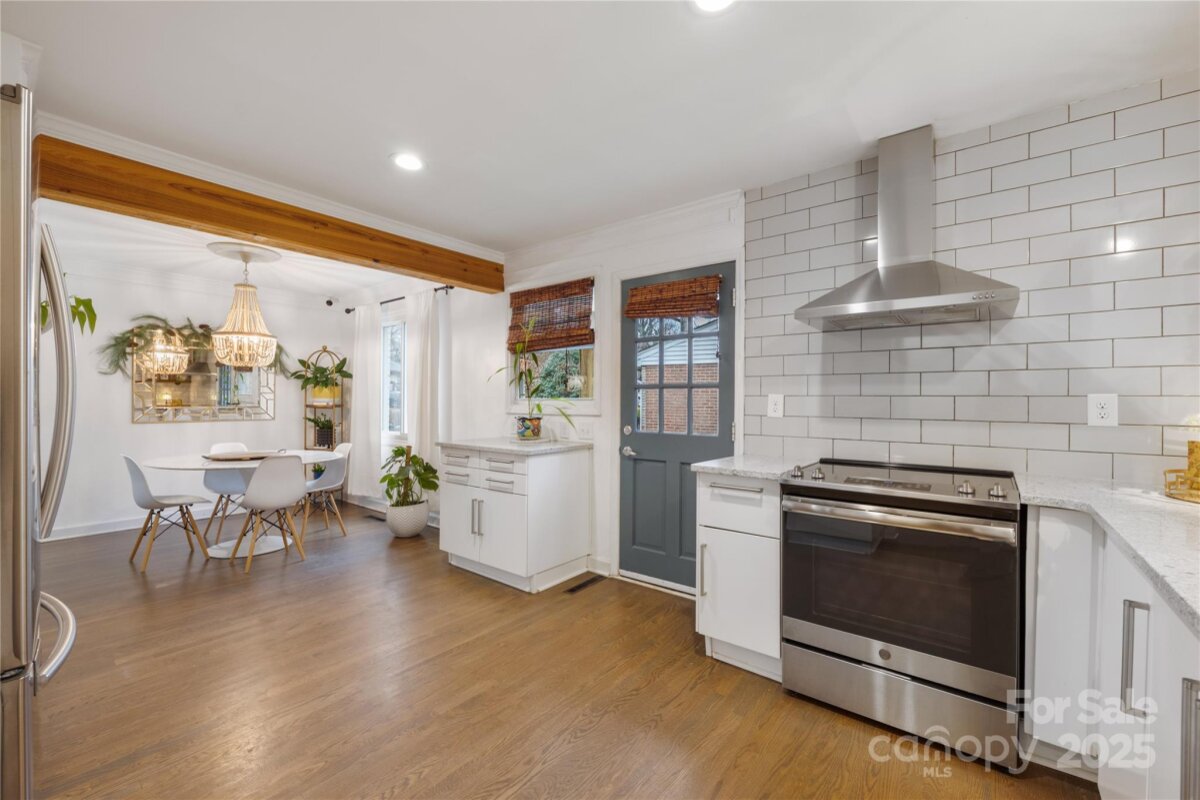 Charming home with beautifully refinished original hardwood floors, an abundance of natural light, and thoughtful touches like the striking exposed wood beam that separates the open-concept living and dining areas. The bright, updated kitchen has crisp white cabinetry, sleek granite countertops, timeless subway tile backsplash, stainless steel appliances, and warm open wood shelving that adds character and functionality. The spacious primary suite offers a tranquil retreat complete with an en-suite bath featuring dual vanities and an oversized walk-in shower. Venture outside to your own entertainer’s paradise, a generous deck perfect for grilling and relaxing, flowing into a stunning paver patio with a fire put, all fully enclosed by a privacy fence on this lush lot. Ideally situated just minutes from Scaleybark Light Rail, the vibrant restaurants and breweries of South End, Park Road Shopping Center, and a quick commute to Uptown Charlotte. This move-in-ready gem is calling you home!