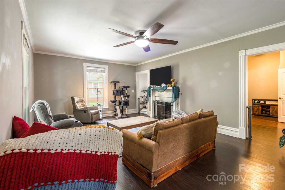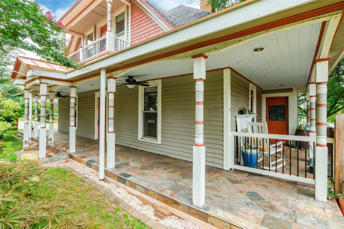 Charming Victorian located within walking distance to downtown Statesville restaurants, the Farmers Market and Mitchell Community College. Large wrap around slate tile porch that beckons you to sit and relax with friends and a sweet tea. The generously sized living room is framed by thick crown molding and beautiful floors that continue in an amazing inlay pattern to the dining room featuring built-ins and a corner fireplace. The updated kitchen boasts lots of cabinets, granite countertops and a gas stove in a center island where family can gather. There are 4 large bedrooms with the primary having a side door to a wonderful courtyard surprise. Both bathrooms are roomy and updated. The great flex space upstairs offers versatility while maintaining historic charm. The fully fenced in backyard provides plenty of room to roam or to just sit by the fire pit under the fabulous pergola. Come see this sweet Southern Belle today!