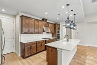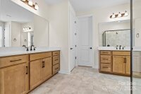 Welcome to this stunning LAUREL model with Bonus/Loft, one of the most popular floorplans in Cresswind Charlotte. Barely lived in, this home features open-concept living with EVP flooring throughout the main living areas, a gourmet Kitchen with upgraded cabinetry, quartz countertops, wall oven, GAS cooktop, and designer backsplash, plus a bright Great Room and a private Study with French doors. The Owner’s Suite includes a luxury bath with quartz counters, double vanities, upgraded tile, glass walk-in shower, and oil-rubbed bronze fixtures. Upstairs, the spacious Loft with closet and Full Bath (walk-in shower) makes the perfect Guest Suite or Flex space. Additional highlights include tile flooring in all baths and laundry, an expanded Garage (4' extension) with storage and workshop space, upgraded lighting throughout, faux wood blinds, and pre-wiring for security camera. Enjoy outdoor living on the screened lanai or gather on the extended custom paver patio overlooking the backyard. A standout feature of this home is the RADIANT BARRIER Tech Shield roof decking—engineered to block the sun’s heat from entering the attic, helping keep the home cooler in the summer and enhancing energy efficiency by reducing the load on the HVAC system. Located in this sought-after 55+ community, residents enjoy resort-style amenities including indoor and outdoor pools, clubhouse, fitness center, pickleball, walking trails, and a full calendar of social events. Move-in ready and thoughtfully upgraded, this home offers the perfect blend of comfort, efficiency, and style.