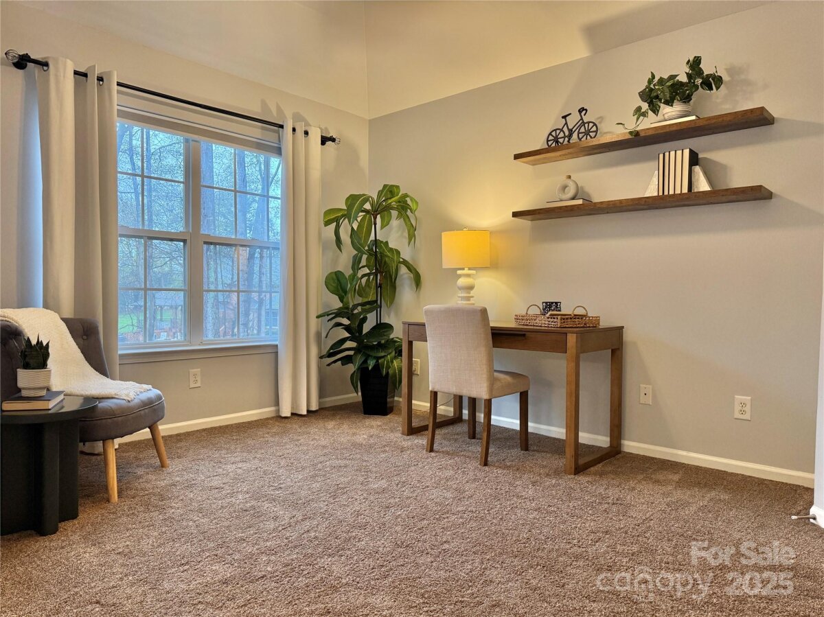 This Huntersville gem is move-in ready—with refreshed landscaping, touch-up interior paint, deep cleaning, power-washing, and more. In 2025, the sellers added new kitchen counters, backsplash, hardware, and sink. Also in 2025, they upgraded to NEW lighting fixtures in secondary baths. 2024 NEW Furnace with dual zones. Upon the seller's 2022 move-in, they added LVP flooring and removed the popcorn ceiling! In 2023, a primary bathroom remodel and a new chimney cap for the gorgeous wood-burning fireplace. This is a sweet neighborhood, a close community with a pool, playground, a cabana, and walking trails. You will love the open living, large kitchen, the private, fenced, flat backyard, the oversized primary suite with office, and the two good-sized secondary bedrooms. It is 3B/2.5B, office space, formal dining, and an excellent living room for sitting by the fire, watching TV, or entertaining.