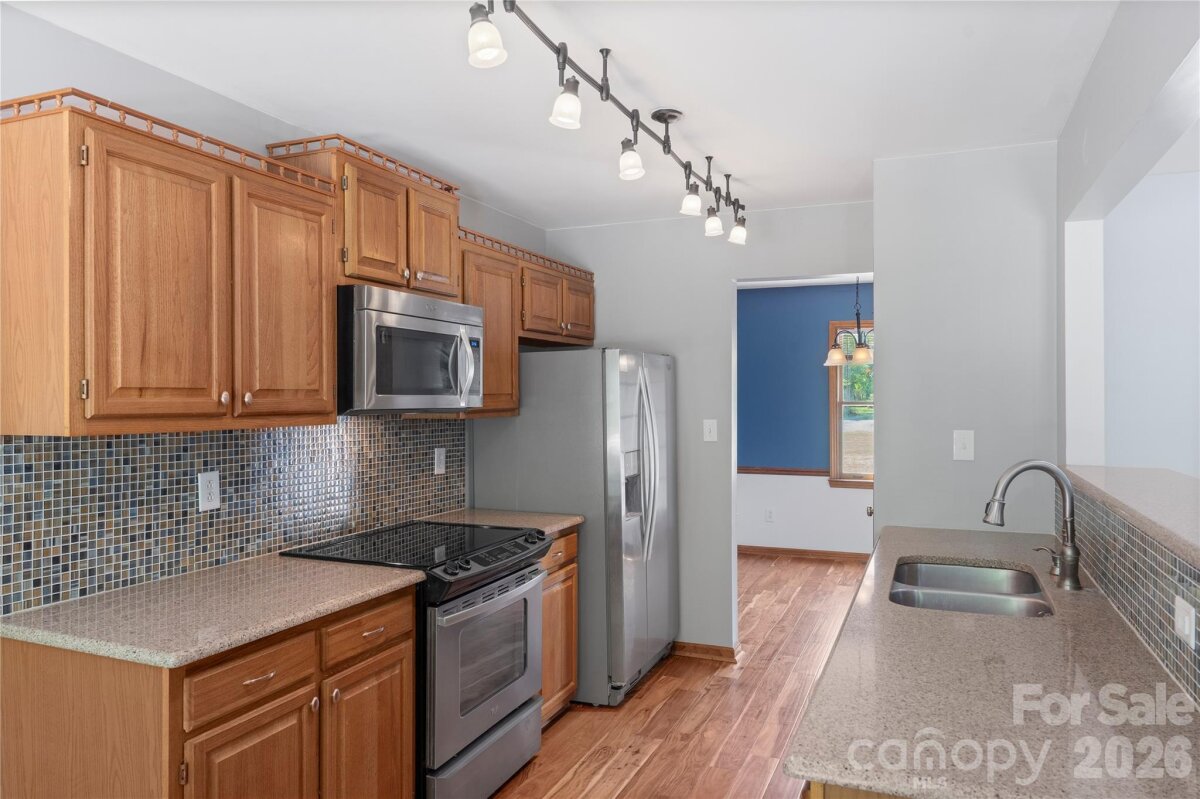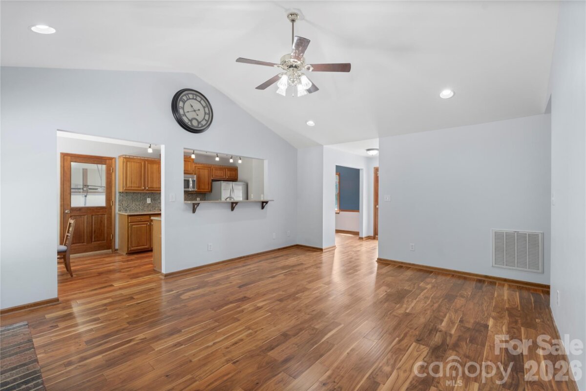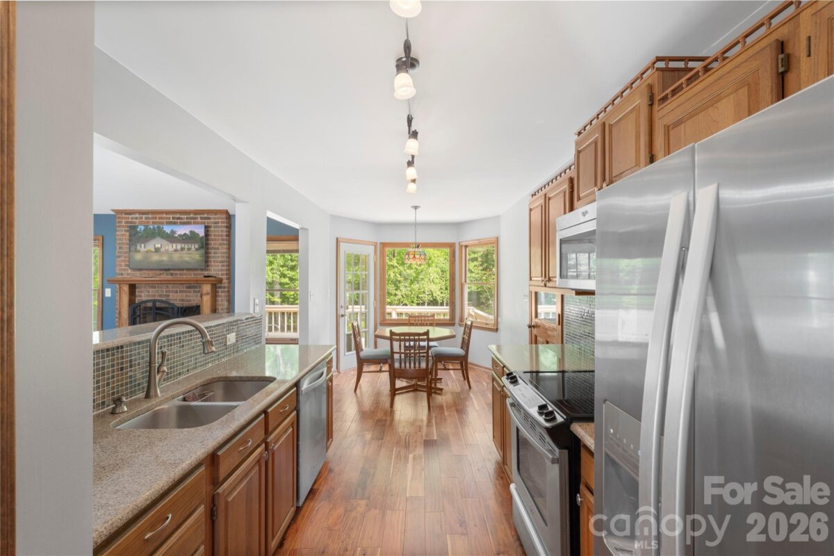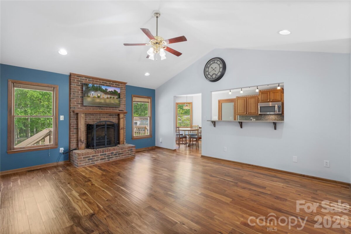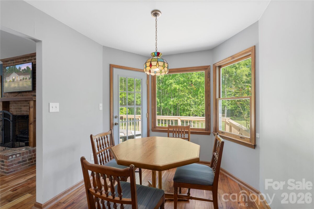 Charming ranch home sitting on a 1 acre lot with no HOA! Offering 3 bedrooms and 2 bathrooms with stunning wood floors and fresh paint throughout, in addition you will love the functional and inviting layout. The spacious living room features vaulted ceilings and a cozy wood-burning fireplace, creating a warm and welcoming atmosphere. With easy access from the living room, the kitchen includes a pantry, ample cabinetry, tile backsplash and matching Stainless Steel appliances. Flowing into a dedicated dining and breakfast area the kitchen provides a dedicated space to make a quick meal, or to pull out all the stops for a large gathering. The primary suite offers usable built-in cabinets; a walk-in closet with custom shelving and a private ensuite bath, while two additional bedrooms provide flexibility for additional living space or a home office/flex space if needed. Enjoy year-round relaxation in the attached sunroom overlooking a wooded lot with mature trees. Outdoor features include a deck, fire pit, shed/workshop with electricity and fenced section of backyard. Additional highlights include a 2-car attached garage, large gravel driveway. Just minutes from Downtown Waxhaw and the ever growing Indian Land area, this home has something to offer for everyone