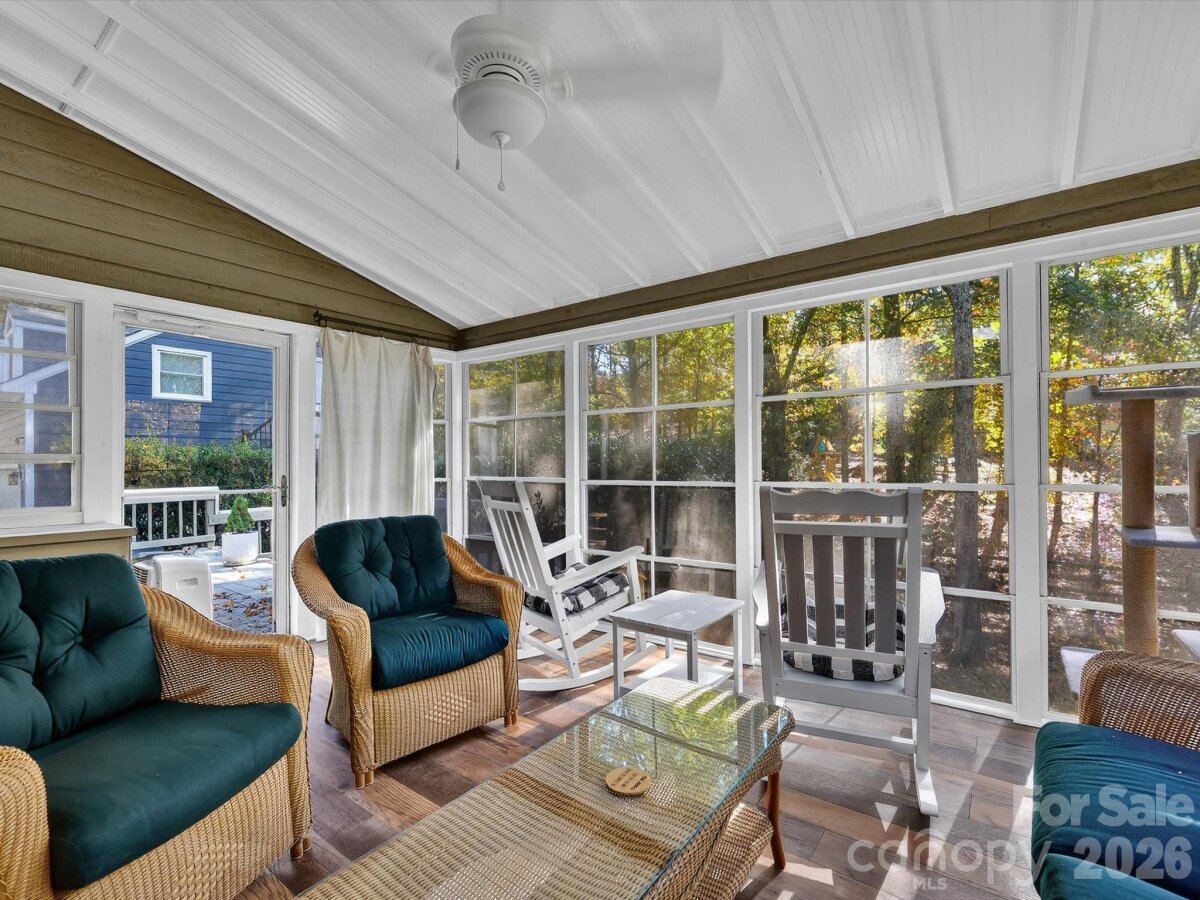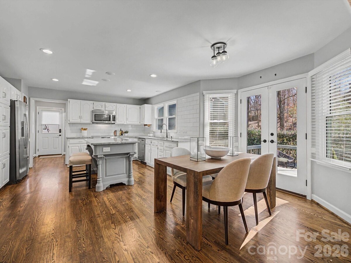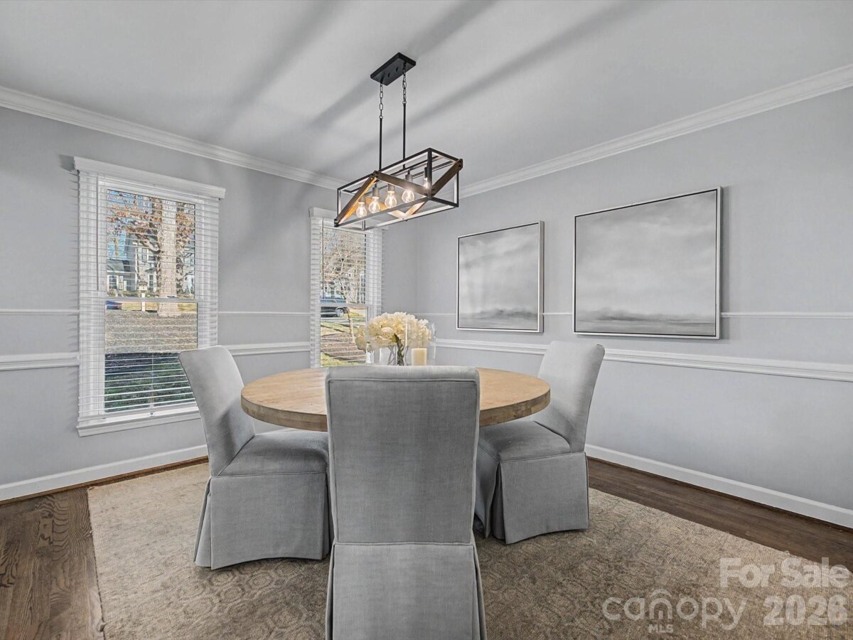 Beautifully designed 3-bedroom, 2.5-bathroom home nestled in the desirable community of Alexander Woods. This residence features an inviting floor plan, a versatile flex space above the detached garage, and a delightful enclosed back porch for additional living space.Homeowners have added new (composite cladding) siding, new windows, new exterior doors, new hardwood flooring, painting throughout, new water heater, 2 new HVAC units (2022 and 2024) new kitchen countertops, and sealed crawl space. As you enter through the cheerful red front door, you are greeted by a bright foyer flanked by a formal dining room and a spacious office. The office boasts a wall of built-ins and abundant natural light from the front window, creating an ideal workspace. The dining room features two large windows, elegant chair rail molding, and hardwood floors, seamlessly connecting to the kitchen through charming split wooden doors.The heart of the home, the kitchen, is a culinary delight with its ample storage, large eat-in island, stainless steel appliances, granite countertops, an undermount sink, and a generous electric cooktop. The breakfast room, located adjacent to the kitchen, offers cozy views through glass doors that lead to the enchanting back porch.The family room exudes warmth with an exposed brick fireplace, built-in shelving, and striking exposed beams that enhance its cozy ambiance.Upstairs, the primary bedroom is a serene retreat featuring a spacious closet and an en suite bath equipped with a linen closet, double vanity, and walk-in shower. Two additional bedrooms share a well-appointed hall bath, complete with a tub/shower combo.Convenience is key with a laundry area situated near the back door, providing a practical drop zone next to the half bath.Completing this wonderful home is a private backyard and a detached garage with a bim=nus room above, making it perfect for both relaxation and entertaining.