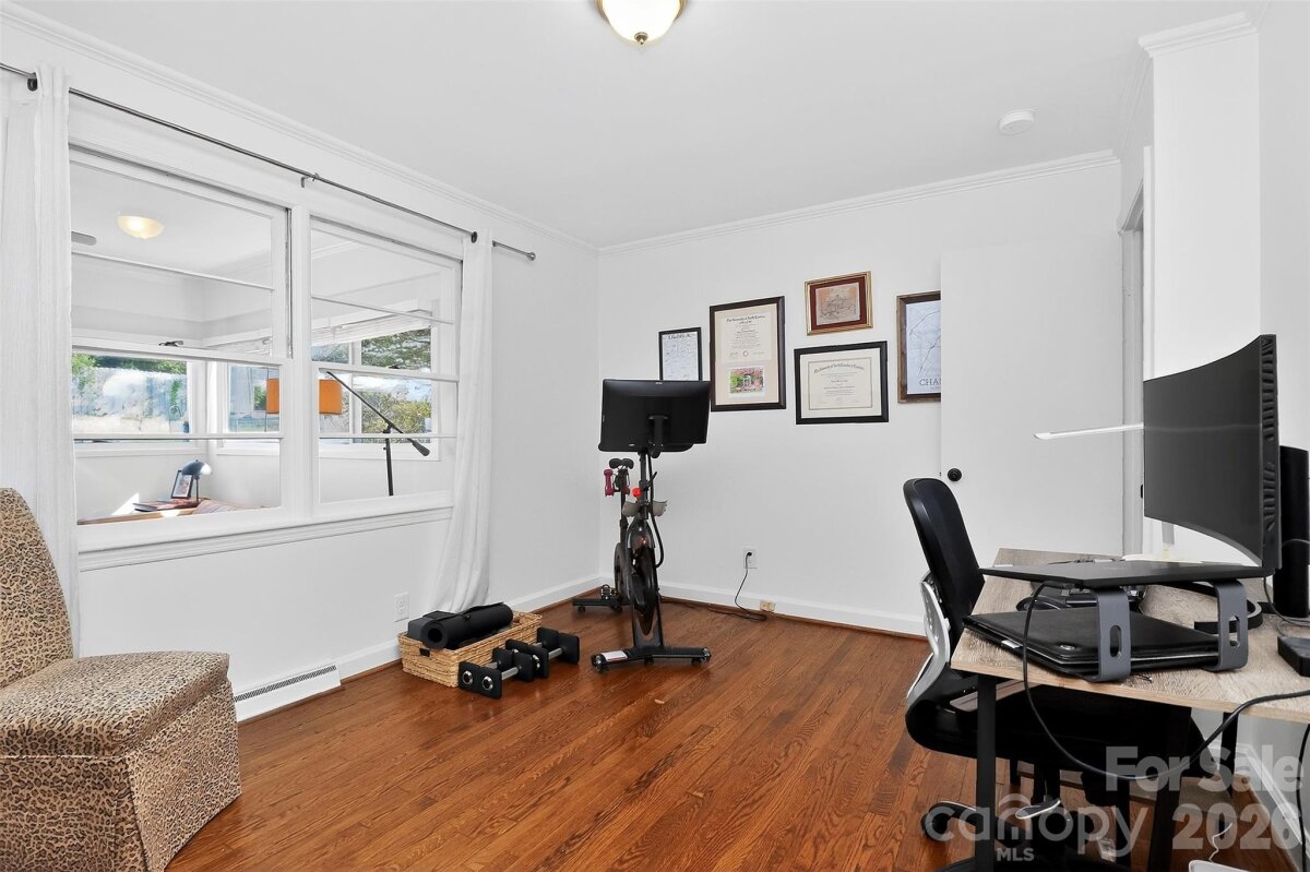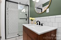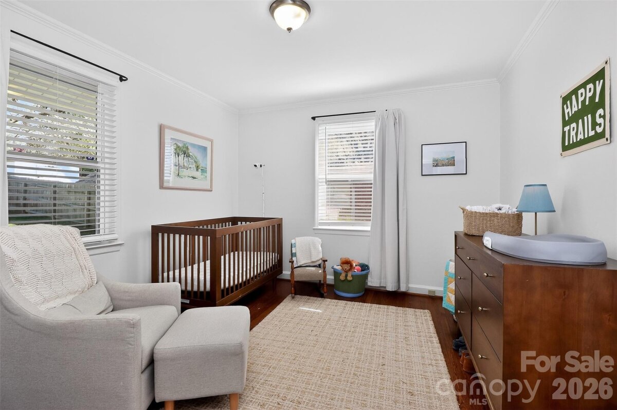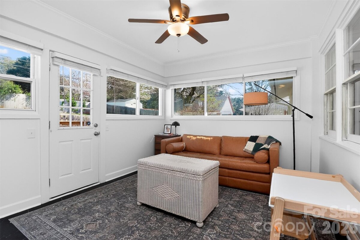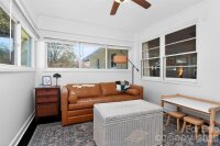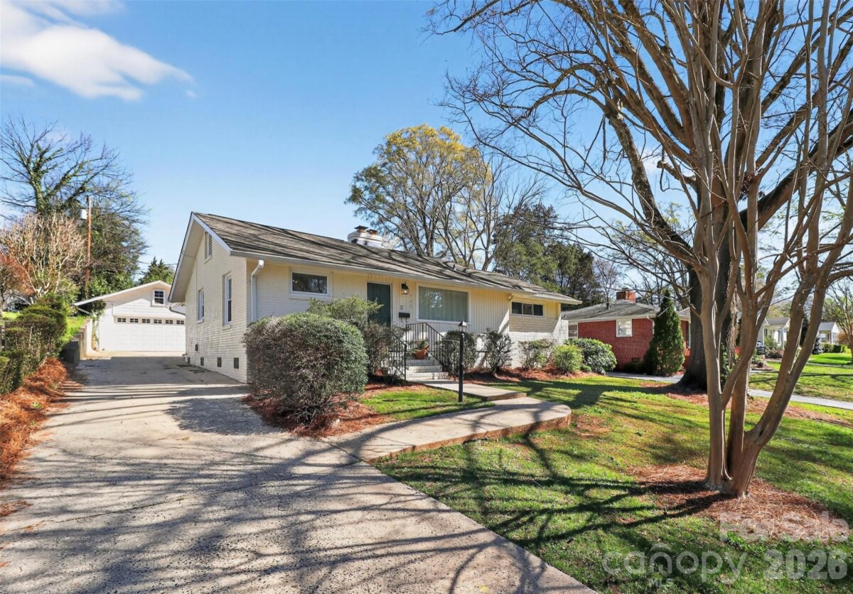 Welcome to this mid-century painted brick ranch in the highly sought-after Madison Park neighborhood! This charming 3-bedroom, 2-bath home blends classic character with some modern updates. Step inside to find hardwood floors throughout most of the home, along with fresh interior paint (except the utility room). The inviting living room features a fireplace (chimney and gas logs sold as-is). The updated kitchen showcases freshly painted white shaker cabinets, quartz countertop, stainless steel appliances, and a pantry cabinet for added storage. Appliances include glass-top range, microwave, dishwasher & refrigerator. Separate dining room/area. The primary suite offers an updated bathroom with an oversized shower, newer vanity, and tile flooring. Two secondary bedrooms share a hall bath featuring original decorative tile, a tub with tile surround, single vanity, and a large linen closet. The sunroom has durable LVP flooring and provides flexible living space; it opens onto a deck overlooking the fenced backyard, ideal for relaxing or entertaining. Additional features include an unheated utility room and a detached 2-car garage with a large 20' x 9' storage/workshop area, perfect for hobbies or additional storage. The fenced rear yard offers both privacy and functionality. Enjoy the unbeatable location—walkable to restaurants, shopping, and entertainment, and just minutes from Uptown, South End, SouthPark, CLT Airport, and major thoroughfares. Convenience truly meets comfort in this Madison Park gem! Washer/dryer remain, Tankless Gas Water Heater 2026, HVAC 2018 per previous owners, Roof 2020. Crawlspace sealed and dehumidifier was installed, work performed within the past 6 months. House windows (with exception of front picture window and BR3 windows) have been replaced.