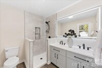Stunning, move-in-ready home just a short walk from the dining and entertainment in the heart of downtown Matthews, with quick access to I-485. Ideally located near the Mecklenburg County Sportsplex at Matthews and directly across the street from the entrance to the Four Mile Creek Greenway. This impressive home offers a flowing open-concept layout and the rare advantage of two full bathrooms. Major upgrades include a new roof, custom windows, HVAC system, electrical panel, appliances, and a fully renovated interior. Permits were pulled throughout the renovation, providing peace of mind that the work was completed properly and professionally. Please see the attached documents for additional information regarding the E. John Street road widening project and short-term rental requirements. Visit www.matthewsnc.gov for additional details.