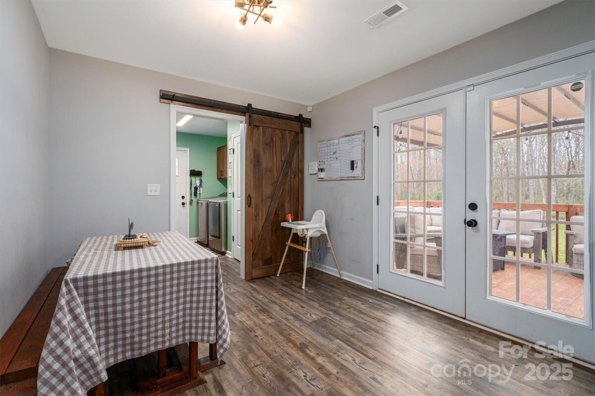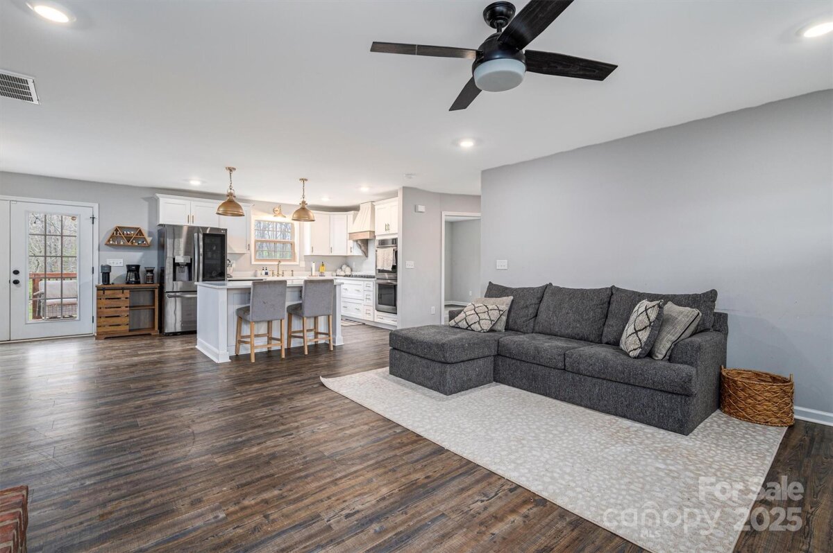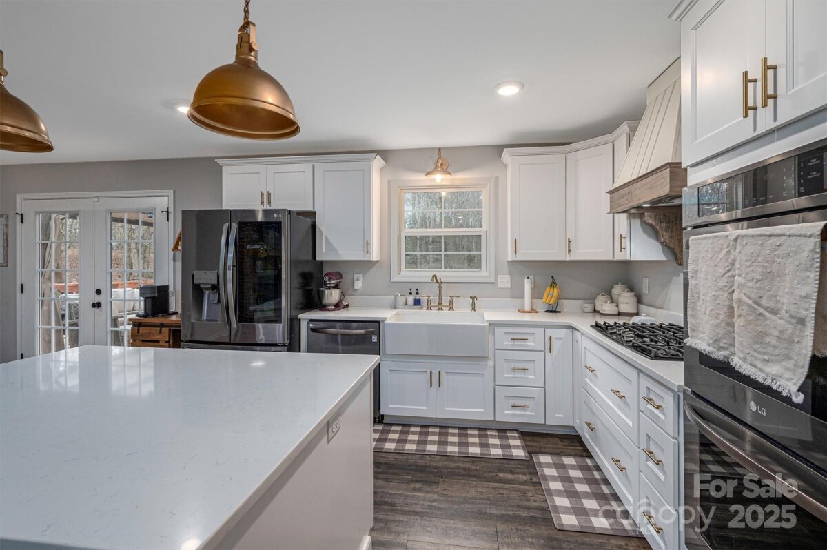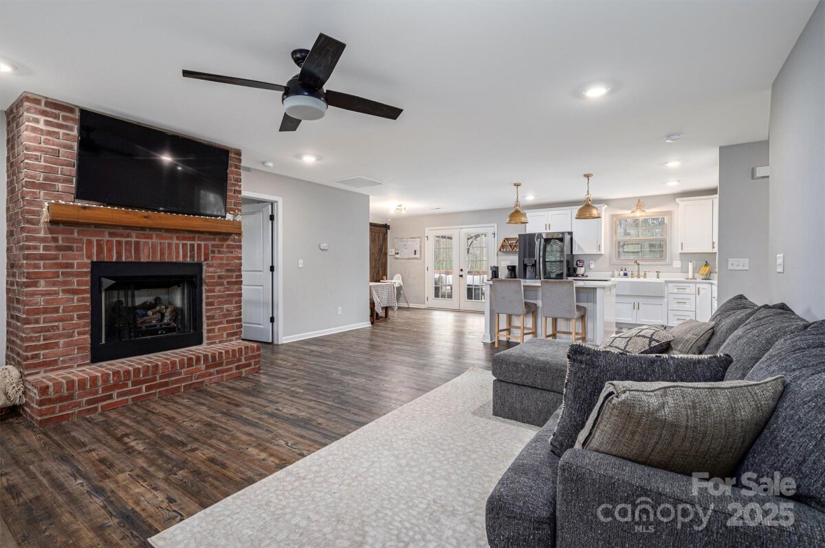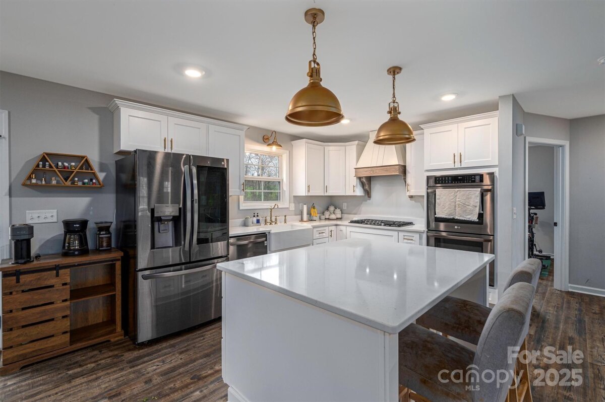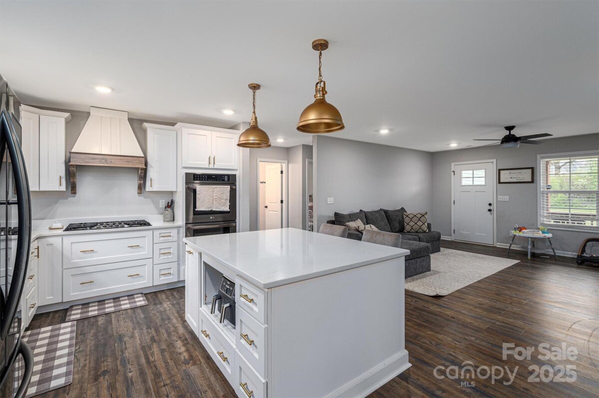 Welcome to this charming ranch-style home nestled on a picturesque 3.77-acre lot, blending timeless elegance with modern comforts. The inviting front porch is the perfect spot for morning coffee or unwinding in the evenings, while the back deck offers additional space for entertaining and enjoying serene views of the surrounding landscape. Inside, luxury vinyl plank flooring flows seamlessly throughout. The open-concept design connects the spacious living room, dining area, and kitchen—an ideal layout for gatherings and everyday living. The kitchen is a chef’s delight, highlighted by a stunning island with barstool seating, white quartz countertops, and stainless steel appliances including a fridge, dishwasher, gas range, and double oven. The owner’s suite is a true retreat with a large bedroom, walk-in closet, and a spa-inspired bathroom complete with double vanity sinks, a freestanding soaking tub, and a spacious standing shower. Perfectly situated, this property offers the peace of country living while remaining convenient—just 20 minutes to Lincolnton, under 30 minutes to Hickory, and about an hour to Charlotte Douglas International Airport.
