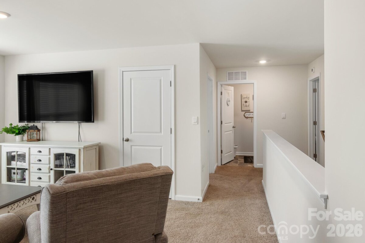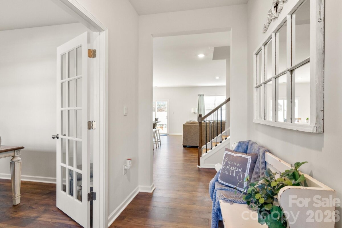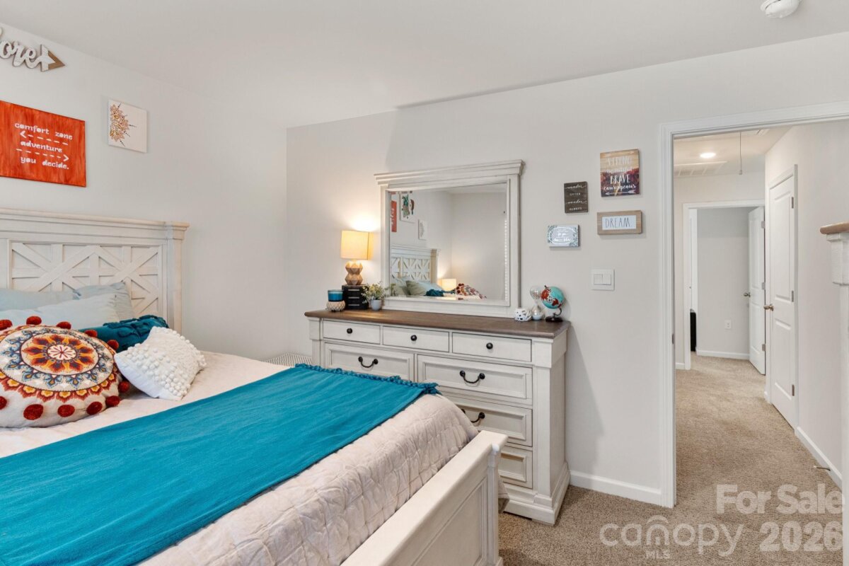 Set at the end of a quiet cul-de-sac in Crossroads, this is the kind of home that just feels easy to live in from the moment you walk through the front door. The foyer opens up and naturally pulls you toward the heart of the home—where the kitchen and great room come together in a way that makes everyday life flow. Mornings start at the breakfast bar, evenings turn into dinners with friends, and the walk-in pantry keeps everything tucked neatly out of sight. The finishes are clean and thoughtful, from the stainless appliances to the soft-close cabinetry. Just off the main living space, there’s a front room with French doors that works beautifully as a home office. A main-level guest bedroom and full bath give you flexibility—whether it’s visitors staying over or a space that adapts as life changes. Upstairs is where the home really stretches out. The primary suite feels like its own corner of the house, with room to unwind, an expansive bathroom, and two walk-in closets that make sharing space a little easier. Down the hall, three additional bedrooms, a full bath, and a bright loft create a second living area—perfect for movie nights. The laundry room is right where you need it, too. Out back, the fenced yard is easy to enjoy, with a wooded tree line creating a natural backdrop. And when you’re ready to get out, the neighborhood amenities—pool, cabana, park, and trails—are all just a short walk away, making it easy to stay connected to the community.
