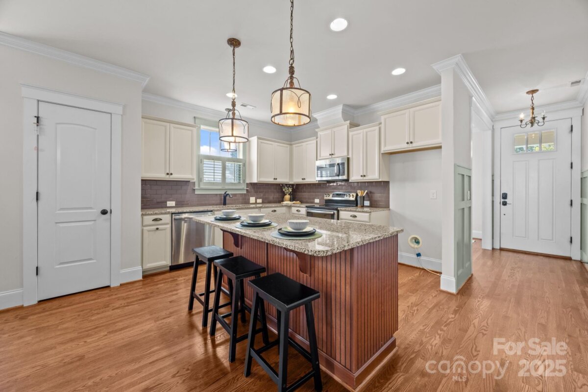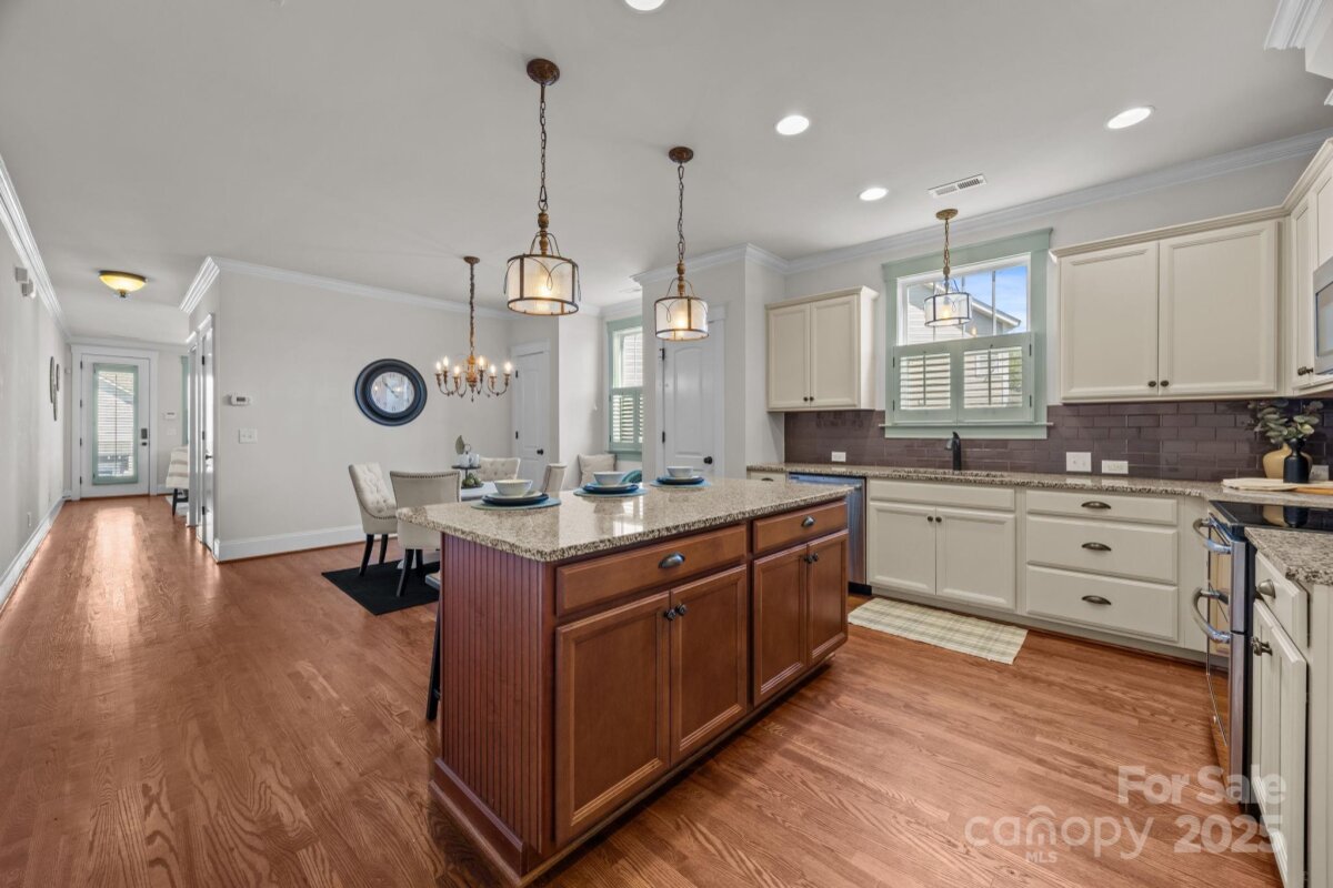 Live Where Lifestyle Meets Location – Welcome to Riverwalk in Rock Hill! Step into this stunning townhome in one of the most sought-after communities along the Catawba River. From the moment you arrive, the curb appeal shines with a rocking-chair front porch perfect for morning coffee or evening relaxation. Inside, you’ll be greeted by gorgeous hardwood flooring throughout the main level and upstairs hallway and flowing into the primary suite, setting the tone for elegance and warmth. The details here matter—plantation shutters, custom built-in cabinetry, and timeless designer colors create a move-in-ready home that feels both stylish and inviting. The spacious primary suite retreat is tucked upstairs, offering privacy and comfort. Out back, enjoy a spacious deck overlooking peaceful surroundings plus the convenience of a dedicated storage room and a tall crawl space with a vapor barrier—rare extras that make life easier. But the real magic? The location. Living in Riverwalk means direct access to miles of scenic walking and biking trails along the river, top-notch community amenities, restaurants, shopping, and a quick hop onto I-77 for an easy commute into Charlotte or downtown Rock Hill. With exterior and lawn maintenance included in the HOA, you’ll have more time to enjoy it all. This townhome is staged to impress and ready for its next owners—don’t miss your chance to experience the Riverwalk lifestyle. Schedule your showing today!