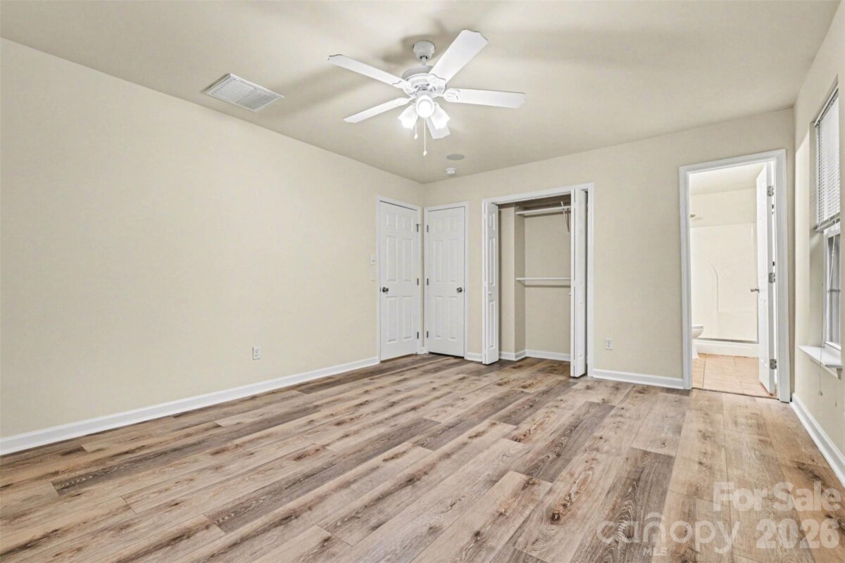 Feshly painted 3 bedroms 3 baths 2 story home with plank flooring throughout the home. NO HOA!!! For your convenience the half bath has been upgraded to a full bath with a shower. The main floor features a good size living room, kitchen, breakfast area separate dining room with double doors opening to the kitchen, living room, and a den with a fireplace and doors to the sunroom. Upstairs you will find the Primary bedroom, and primary bath along with 2 other good size bedrooms. Home qualifies for $10K to be used whichever way is best for the buyer. Call your agent and have them show it to you! Near transportation, I 77, i 485 as well as shopping.