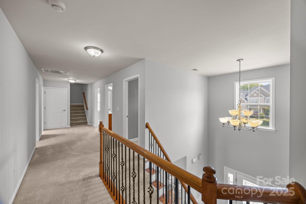 Nestled in one of the most desirable school districts, you will find this fabulous 4 bedroom, 2.5 bath, 3-story home. The main level of this home boasts a magnificent open foyer, formal dining room with tray ceilings, den/office, oversized additional pantry or storage and a coat closet. Not only does this home feature an open floor plan, it has a glorious family room prewired for surround sound with a cozy fireplace, but also includes an elegant kitchen equipped with a wall oven & microwave, dishwasher and refrigerator, new gas cooktop, granite countertops, island and a breakfast area. Don't miss out on entertaining family and friends on the lovely patio that this home offers. On the second, you will find 3 generous sized guest rooms and full guest bath, a spacious laundry room with cabinets, washer and dryer included and the primary bedroom that includes a relaxing en suite with seperate sinks, calming garden tub and separate shower. The third floor offers a bonus room/ bedroom perfectly situated for sleep or play and ample closet with 2 separate areas for attic storage. Come and see all that the Bridge Pointe neighborhood has to offer. Grab a refreshing beverage and relax in your tranquil fenced in backyard with an irrigation system and spacious patio. Double car garage with a tankless water heater. Enjoy the community amenities, updated sports courts less than a year old features basketball, 2 pickleball courts and a tennis court, plus a clubhouse, in-ground community pools, wading pool and playground. Hickory Ridge Middle School is directly across from Bridge Pointe and easily walkable if desired.